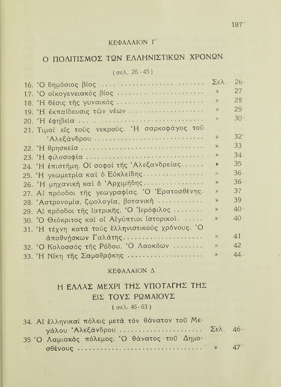 Βαθμίδα εκπαίδευσης: Δευτεροβάθμια Τάξη: Γ' Γυμνασίου Μάθημα: Ιστορία Γλώσσα: Καθαρεύουσα Παρουσίαση περιεχομένου: Σχολικό εγχειρίδιο Ιστορίας Γ΄ Γυμνασίου που καλύπτει την περίοδο από τους ελληνιστικούς χρόνους ως τη παρακμή του δυτικού ρωμαϊκού κράτους. |