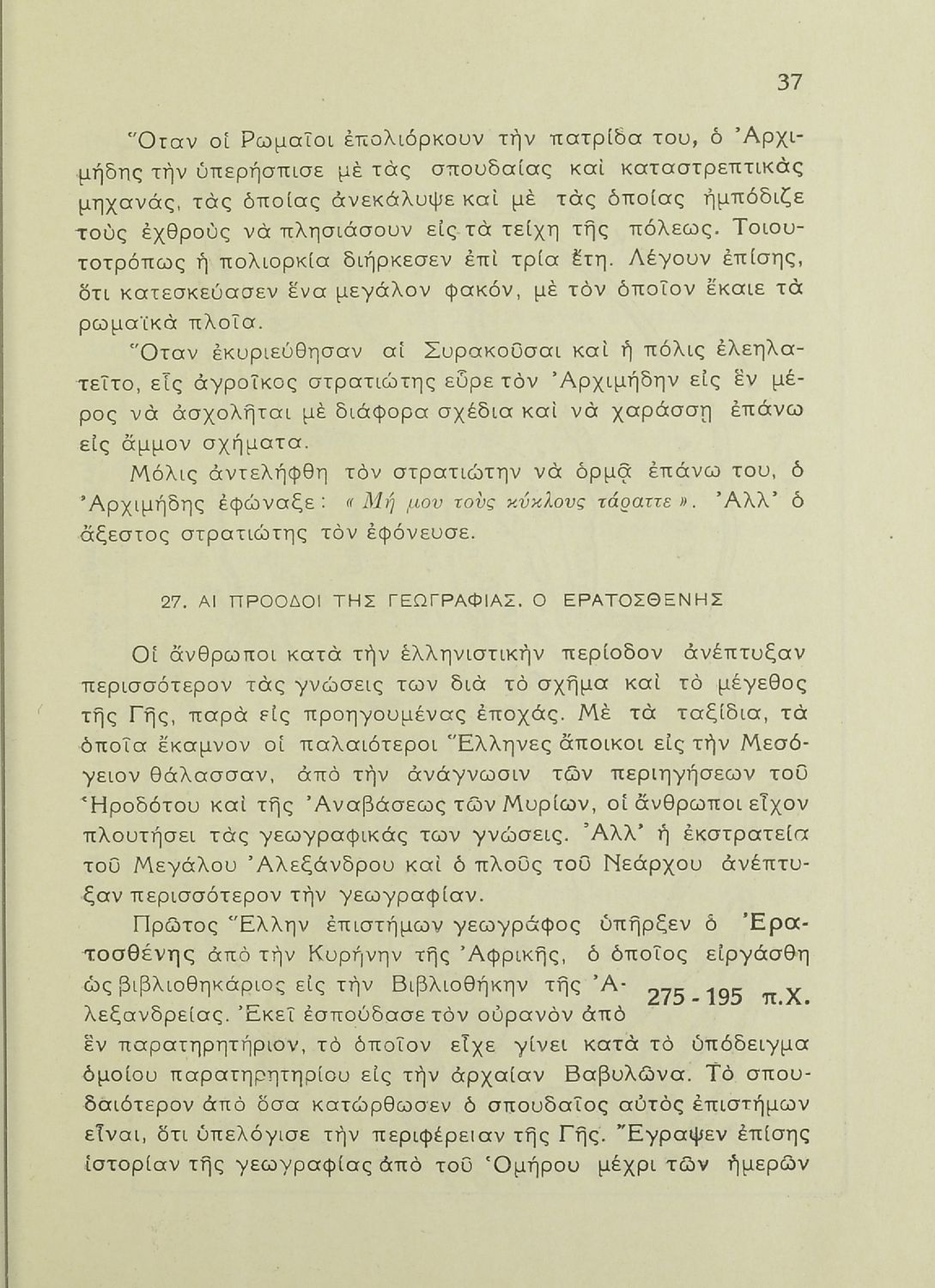 Βαθμίδα εκπαίδευσης: Δευτεροβάθμια Τάξη: Γ' Γυμνασίου Μάθημα: Ιστορία Γλώσσα: Καθαρεύουσα Παρουσίαση περιεχομένου: Σχολικό εγχειρίδιο Ιστορίας Γ΄ Γυμνασίου που καλύπτει την περίοδο από τους ελληνιστικούς χρόνους ως τη παρακμή του δυτικού ρωμαϊκού κράτους. |