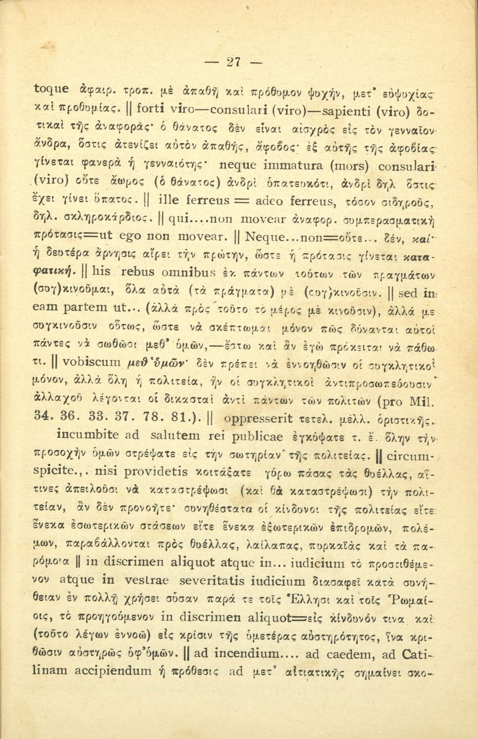 520 ## _aΣχολικό εγχειρίδιο Λατινικών για τη Γ΄ Γυμνασίου που περιλαμβάνει κείμενο, βιογραφικό σημείωμα του Κικέρωνα, εισαγωγικές παρατηρήσεις και ερμηνευτικές σημειώσεις.