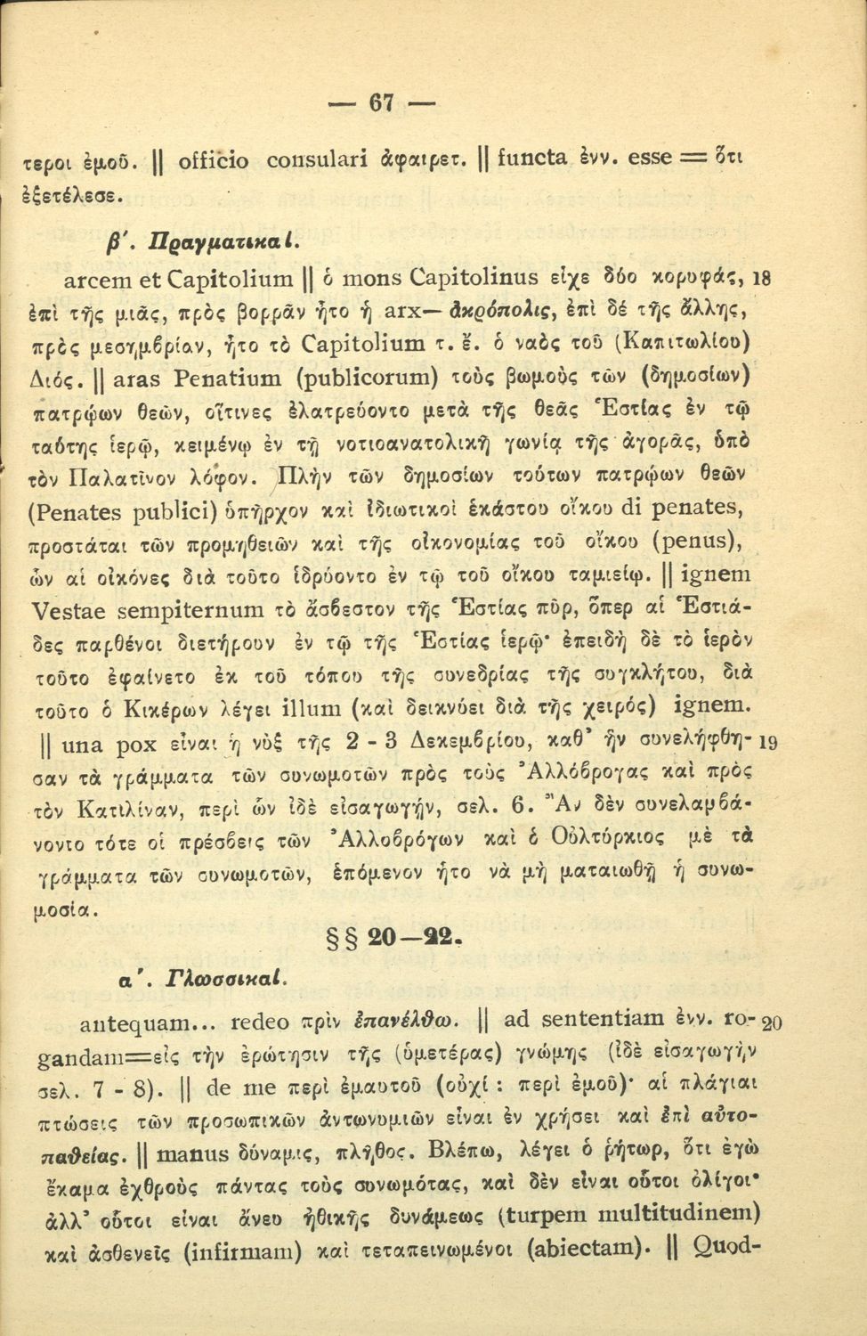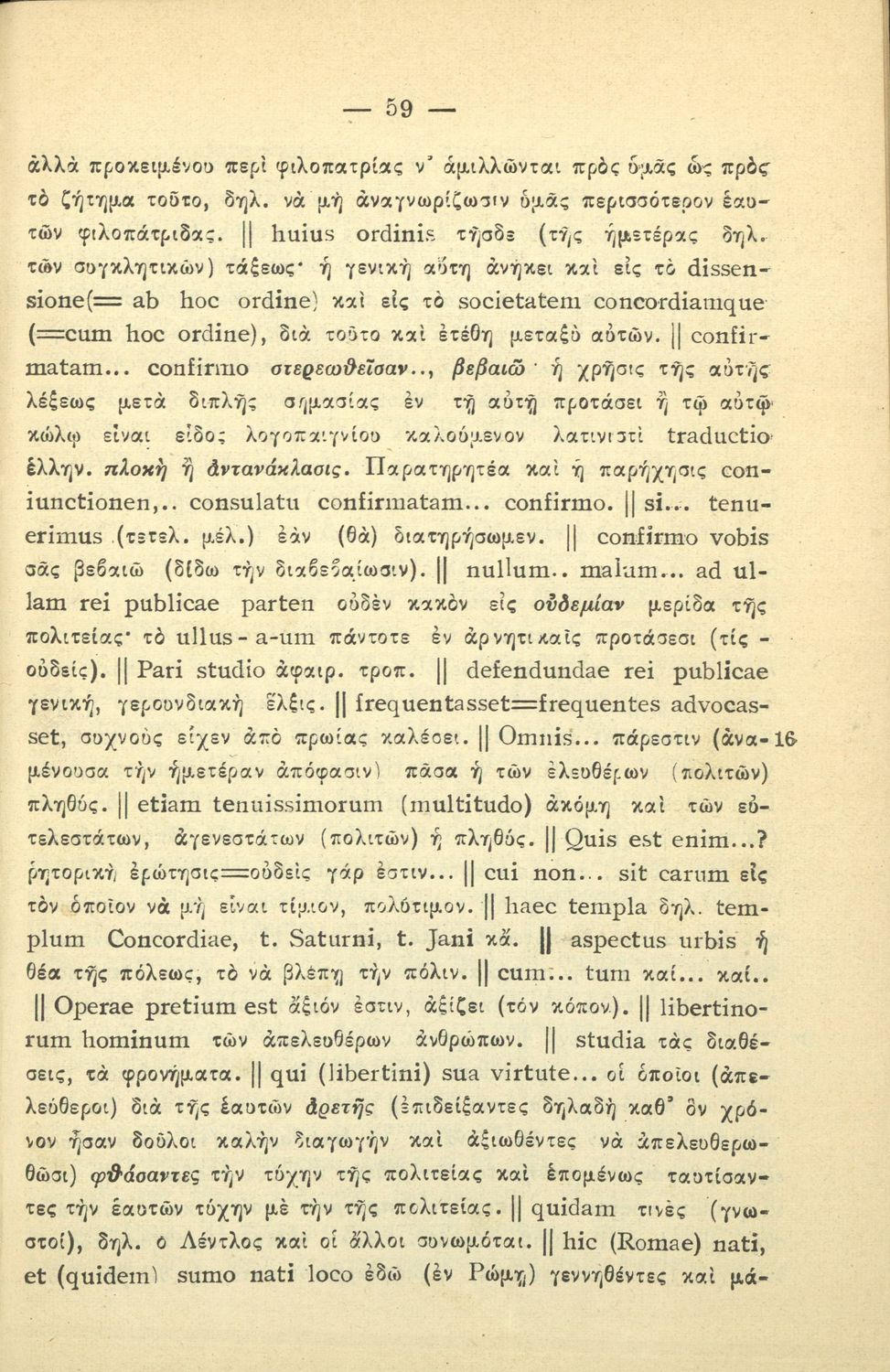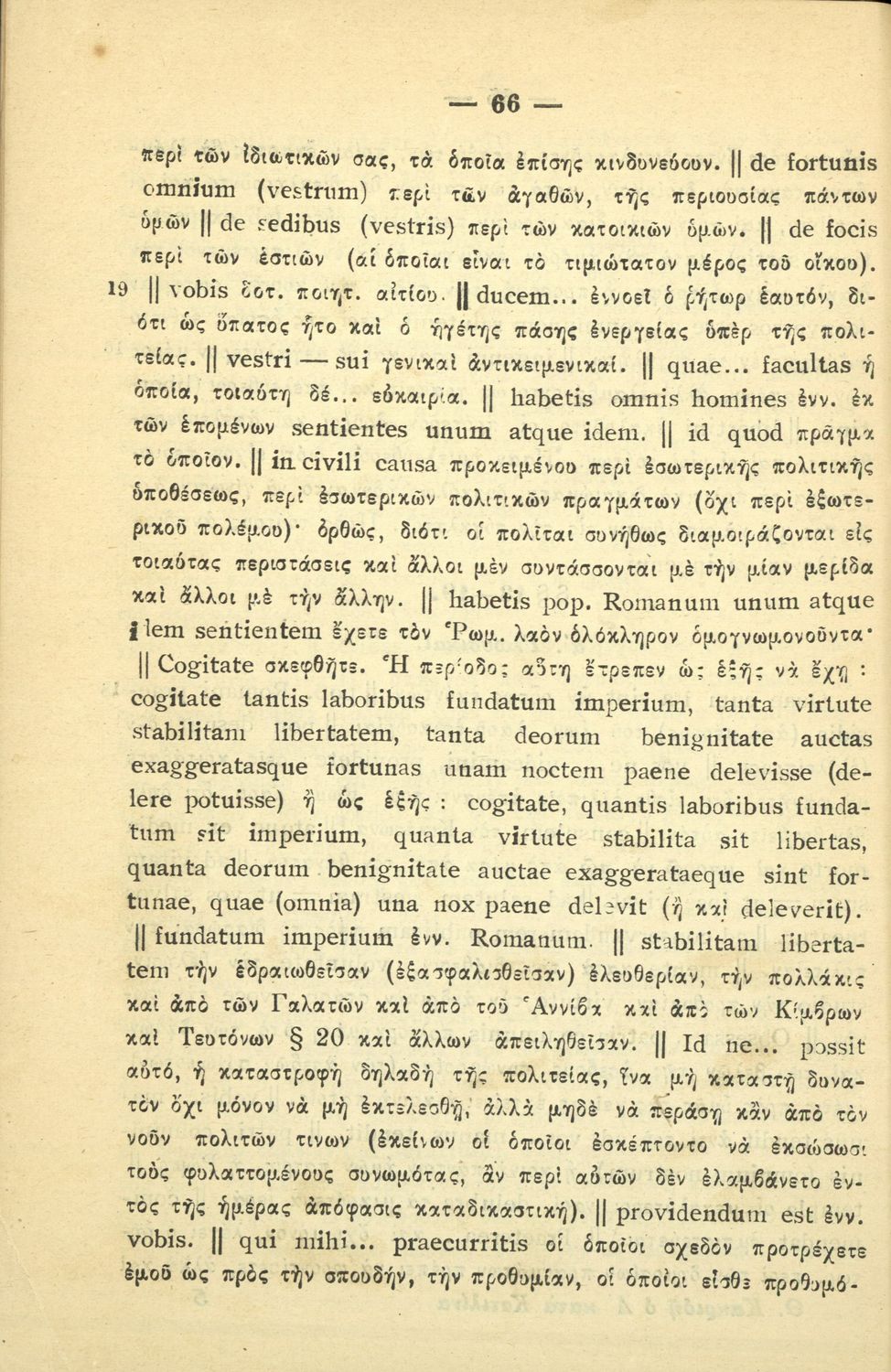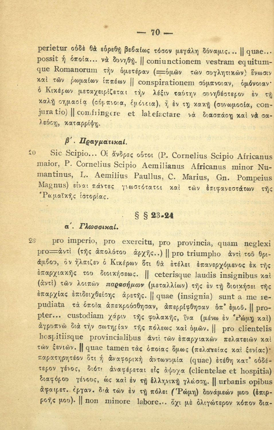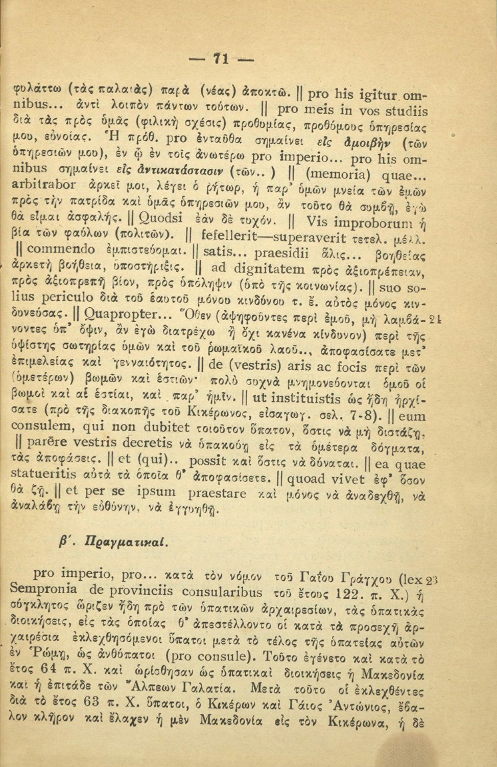 Σχολικό εγχειρίδιο Λατινικών για τη Γ΄ Γυμνασίου που περιλαμβάνει κείμενο, βιογραφικό σημείωμα του Κικέρωνα, εισαγωγικές παρατηρήσεις και ερμηνευτικές σημειώσεις.
