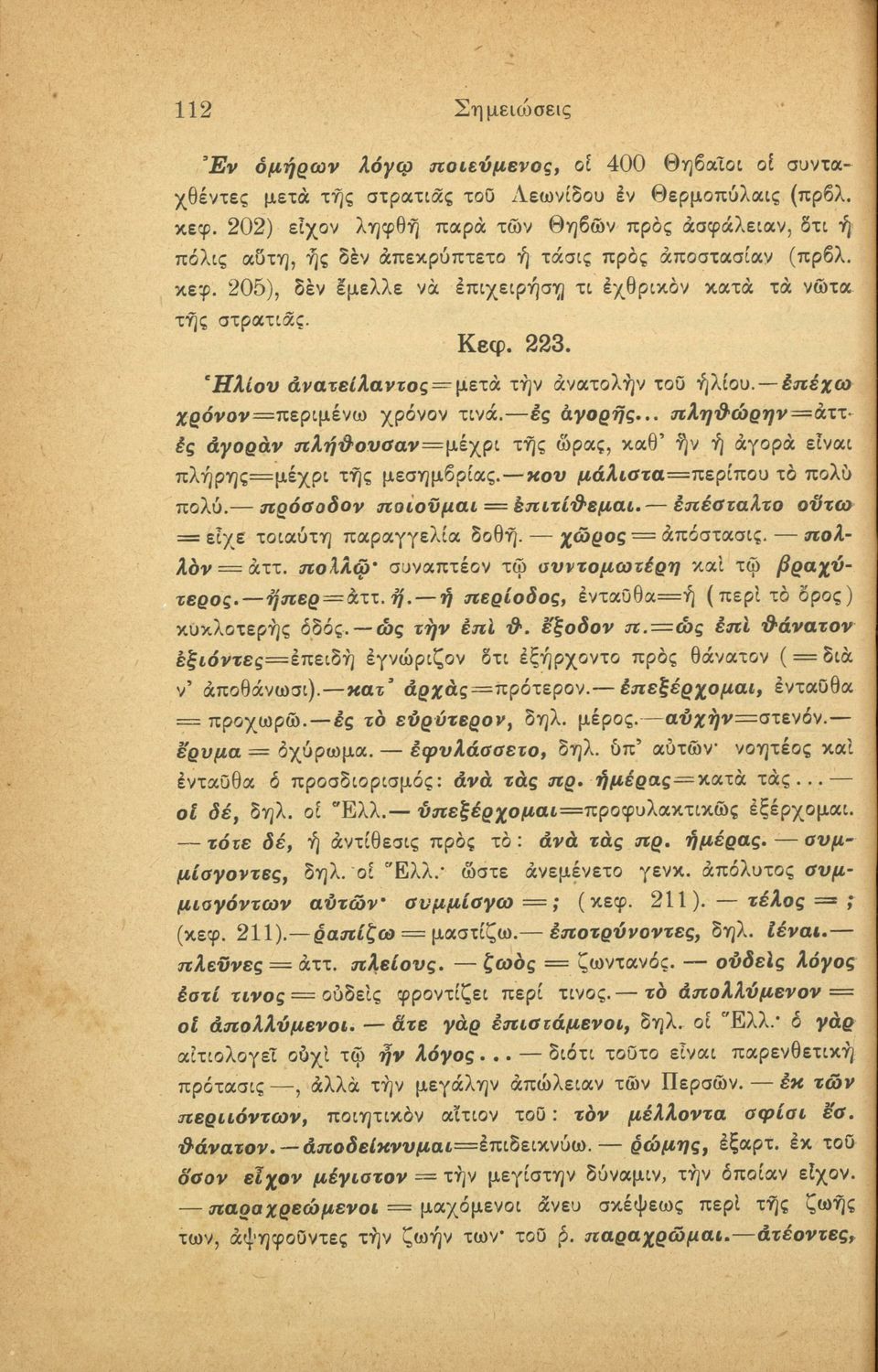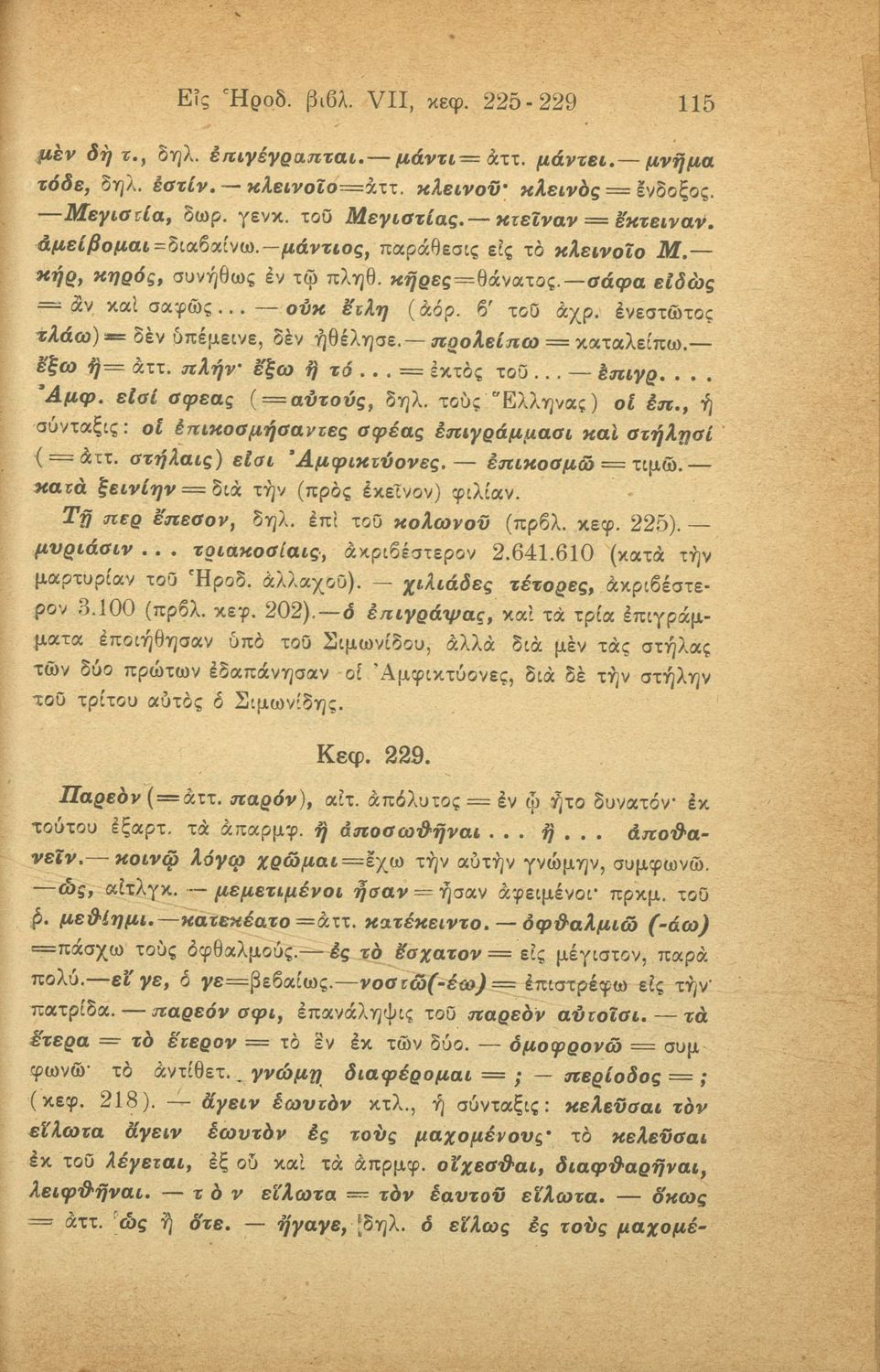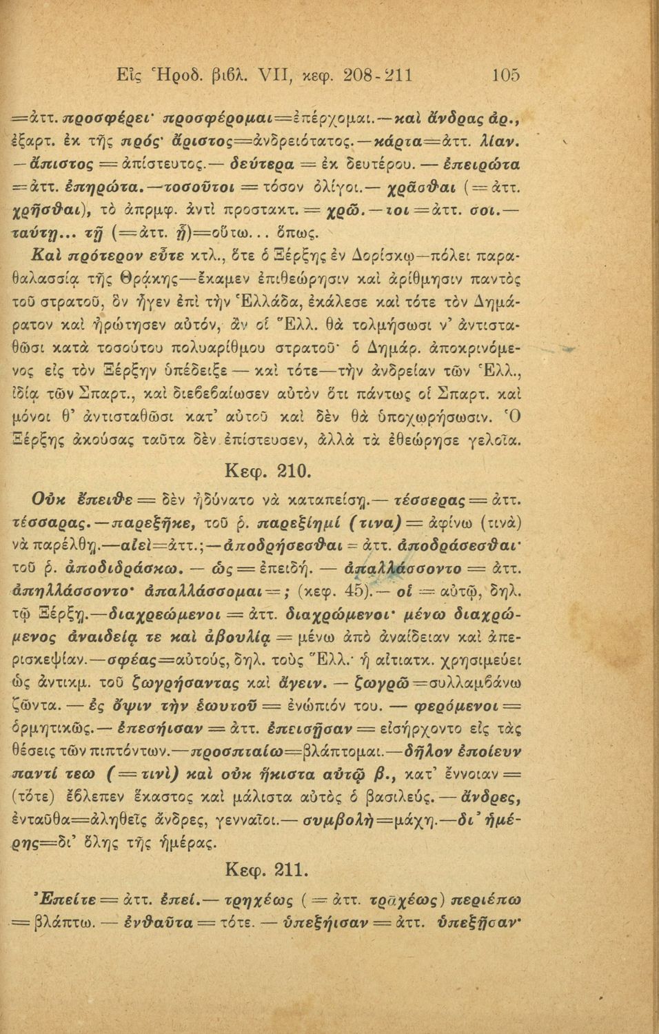 Σχολικό εγχειρίδιο Αρχαίων Ελληνικών Α΄ Γυμνασίου και Α' Διδασκαλείου που περιλαμβάνει αποσπάσματα από το έργο του Ηρόδοτου, ερμηνευτικές σημειώσεις, πραγματολογικά, λεξικολογικά και γραμματικά σχόλια.