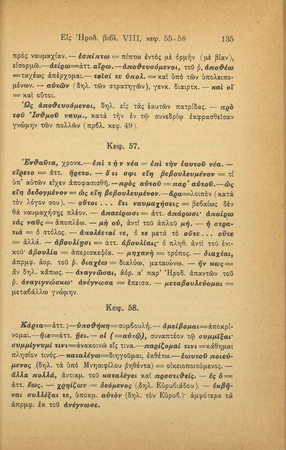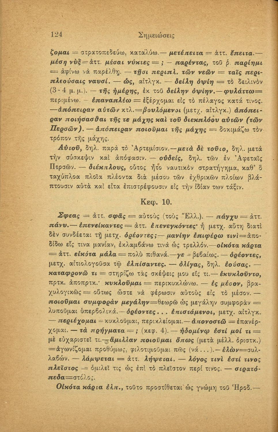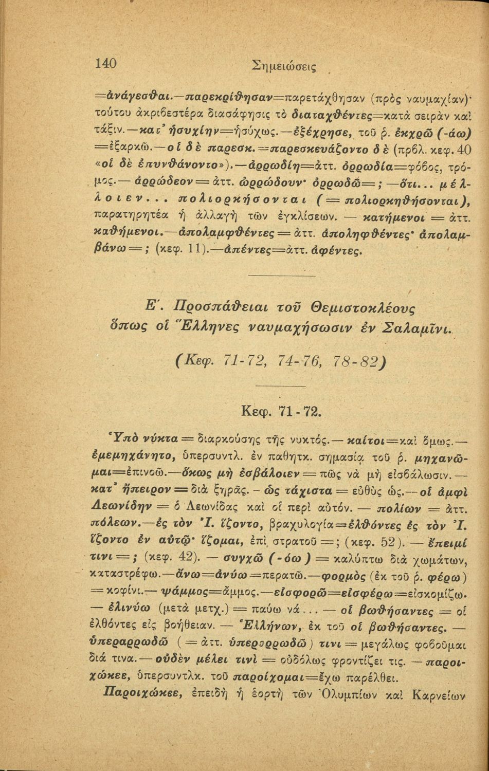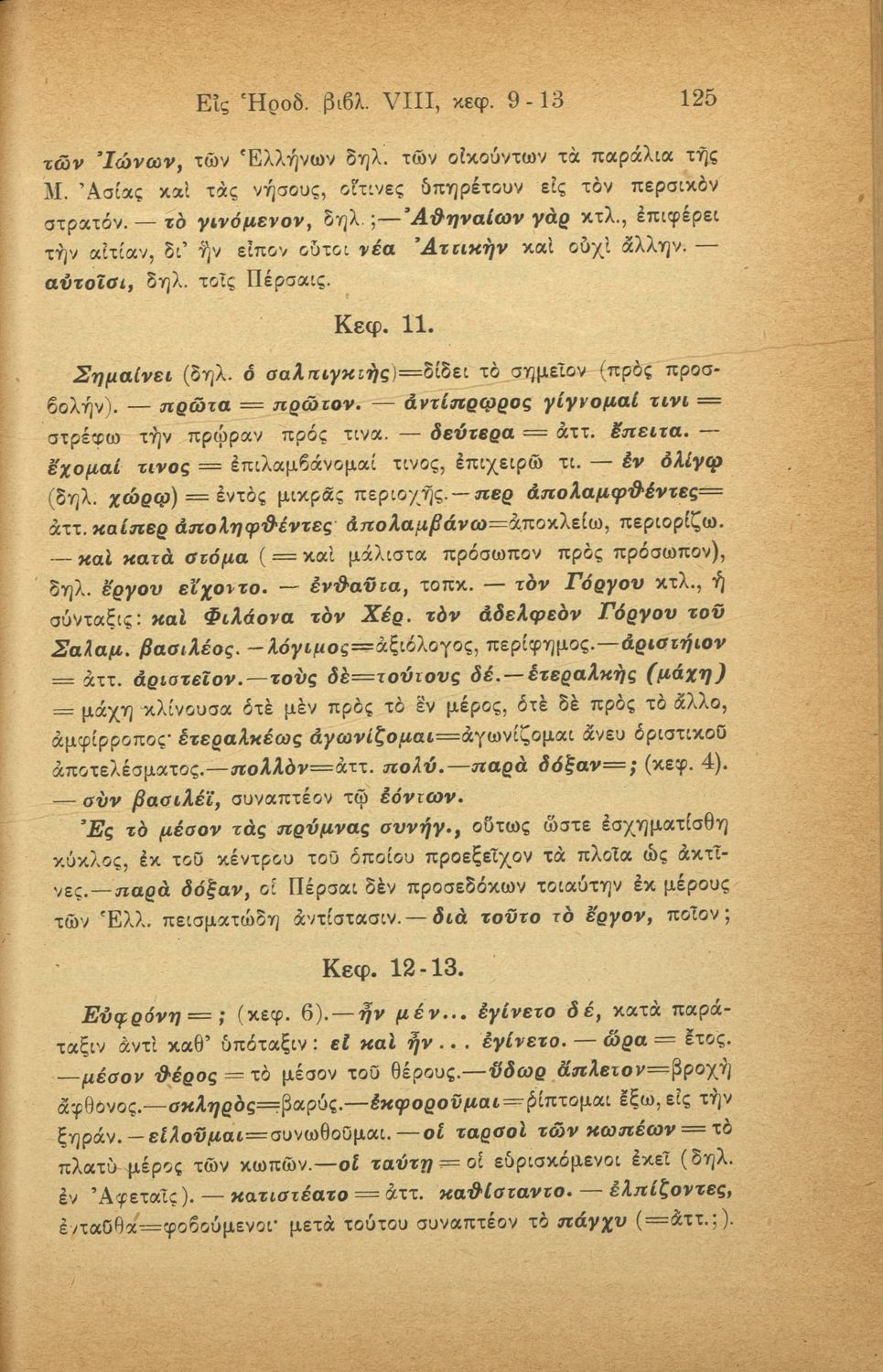 Σχολικό εγχειρίδιο Αρχαίων Ελληνικών Α΄ Γυμνασίου και Α' Διδασκαλείου που περιλαμβάνει αποσπάσματα από το έργο του Ηρόδοτου, ερμηνευτικές σημειώσεις, πραγματολογικά, λεξικολογικά και γραμματικά σχόλια.