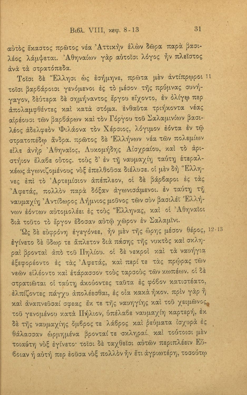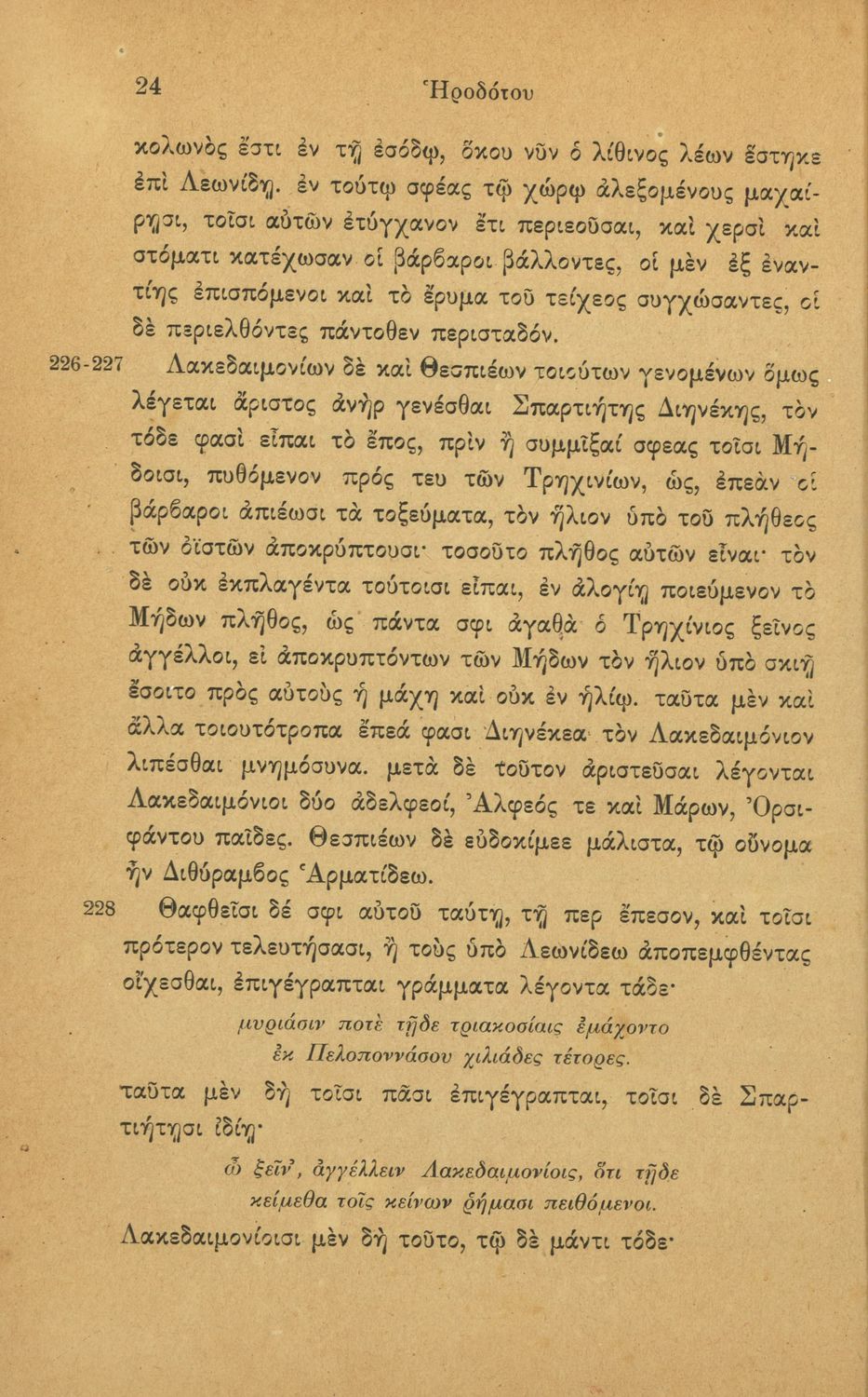 Σχολικό εγχειρίδιο Αρχαίων Ελληνικών Α΄ Γυμνασίου και Α' Διδασκαλείου που περιλαμβάνει αποσπάσματα από το έργο του Ηρόδοτου, ερμηνευτικές σημειώσεις, πραγματολογικά, λεξικολογικά και γραμματικά σχόλια.