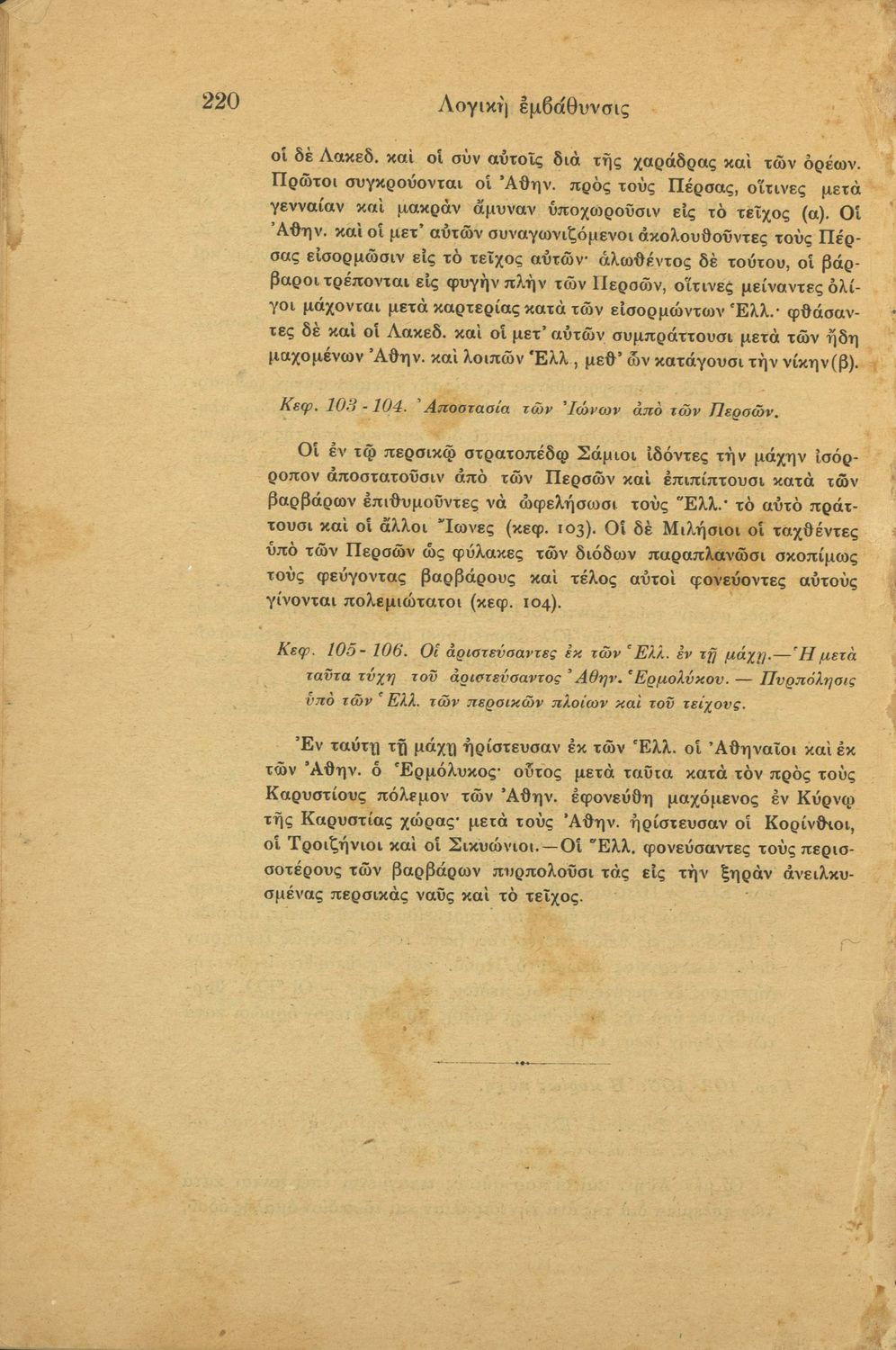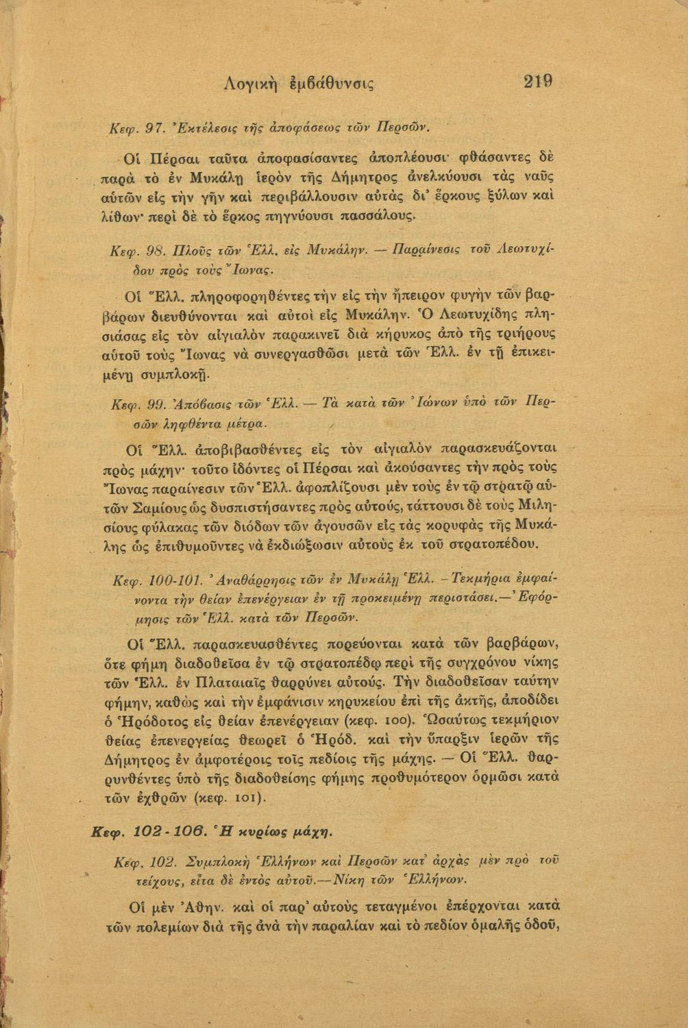 Σχολικό εγχειρίδιο Αρχαίων Ελληνικών Α΄ Γυμνασίου και Α' Διδασκαλείου που περιλαμβάνει αποσπάσματα από το έργο του Ηρόδοτου, ερμηνευτικές σημειώσεις, πραγματολογικά, λεξικολογικά και γραμματικά σχόλια.