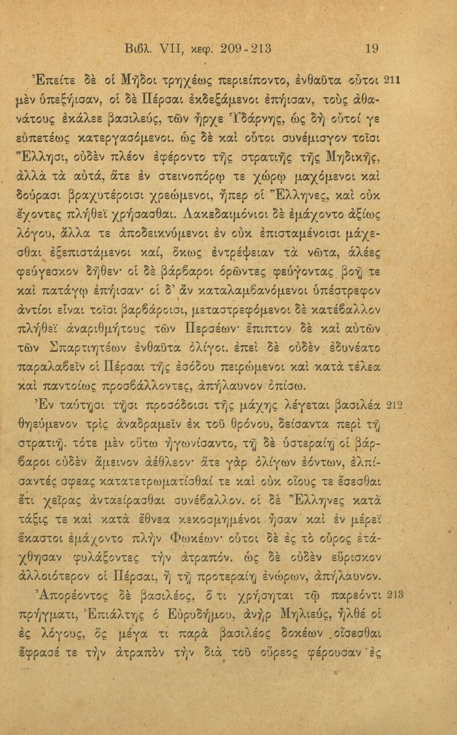 Σχολικό εγχειρίδιο Αρχαίων Ελληνικών Α΄ Γυμνασίου και Α' Διδασκαλείου που περιλαμβάνει αποσπάσματα από το έργο του Ηρόδοτου, ερμηνευτικές σημειώσεις, πραγματολογικά, λεξικολογικά και γραμματικά σχόλια.