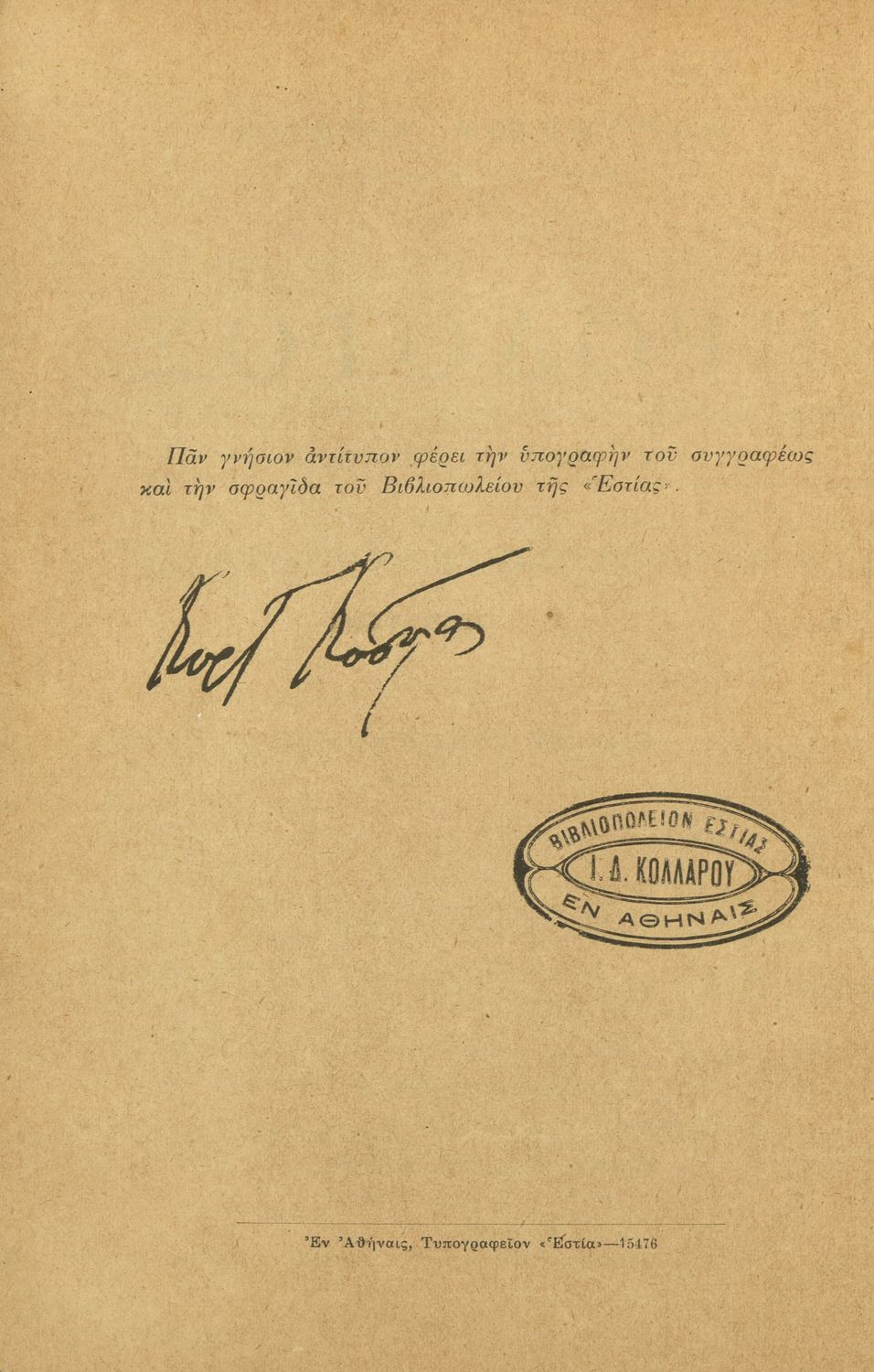 Εκδότης: Ιωάννης Δ. Κολλάρος, Βιβλιοπωλείο της "Εστίας"