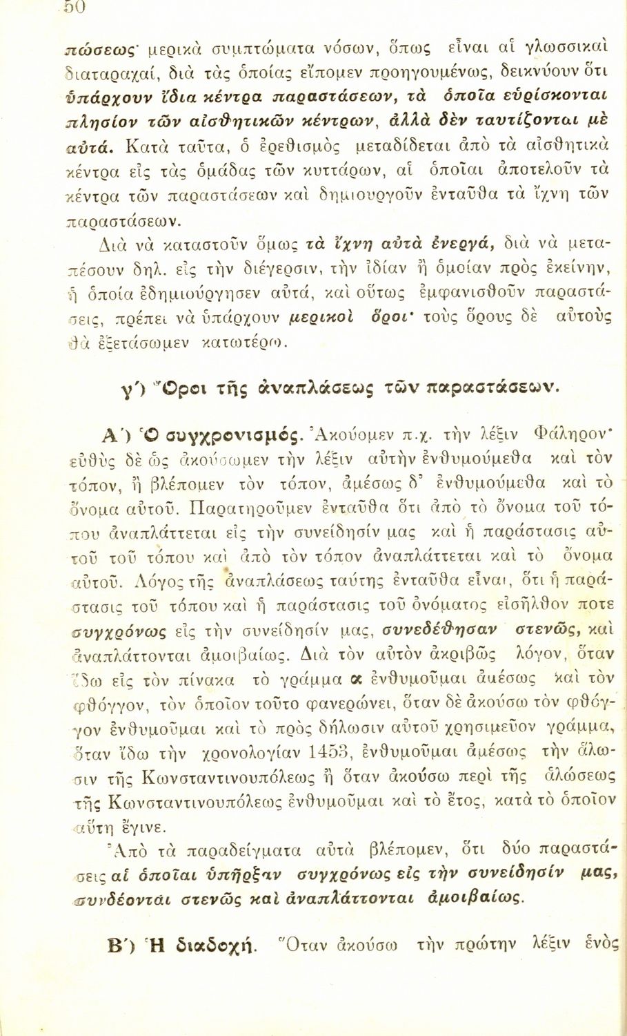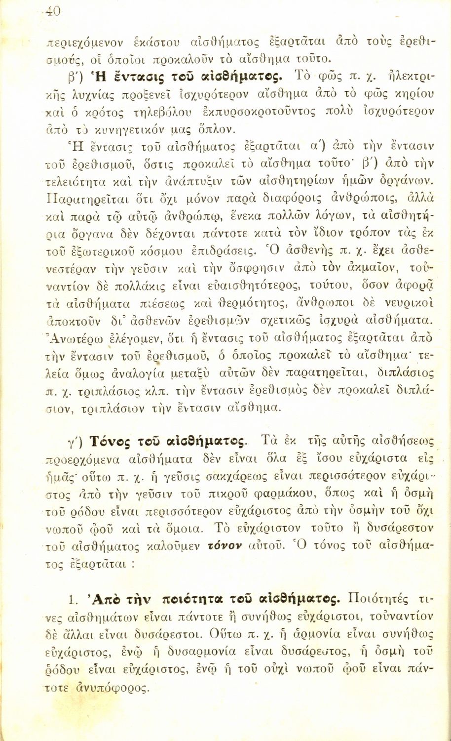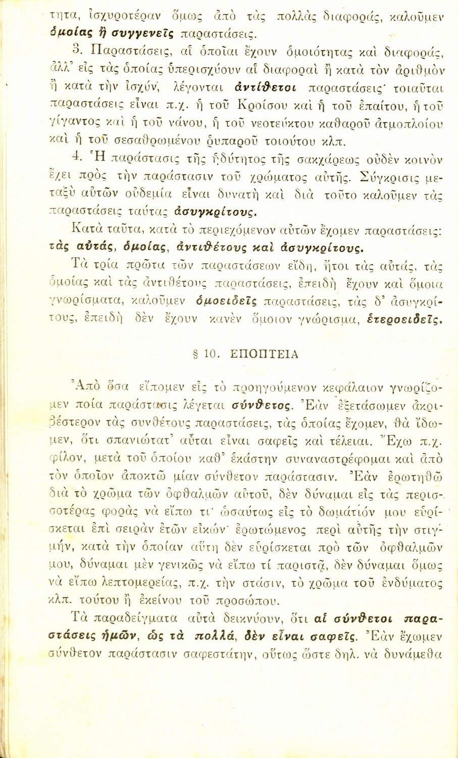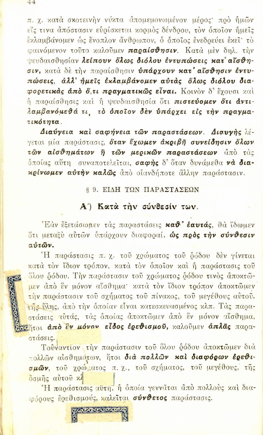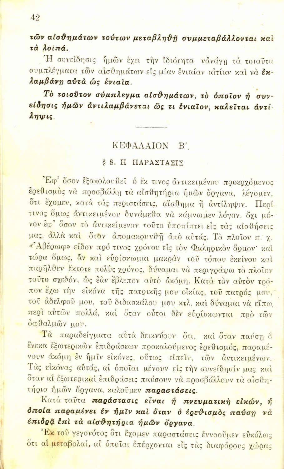Σχολικό εγχειρίδιο Πειραματικής Ψυχολογίας για τη Γ΄ Γυμνασίου χωρισμένο σε τρία τμήματα: το παριστάναι, το συναισθάνεσθαι, και το βούλεσθαι.
