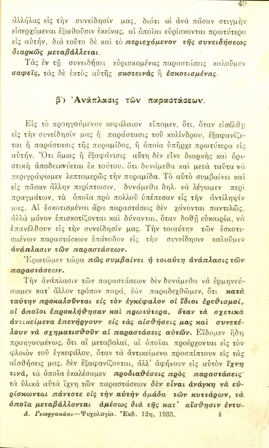 Σχολικό εγχειρίδιο Εμπειρικής Ψυχολογίας για τη Γ΄ Γυμνασίου χωρισμένο σε τρία τμήματα: το γνωστικό, το συναισθηματικό και το βουλητικό. Εξετάζει και τις ανωμαλίες της συνείδησης.