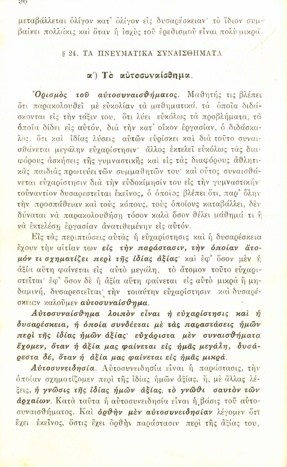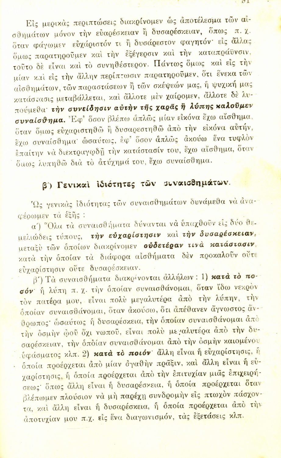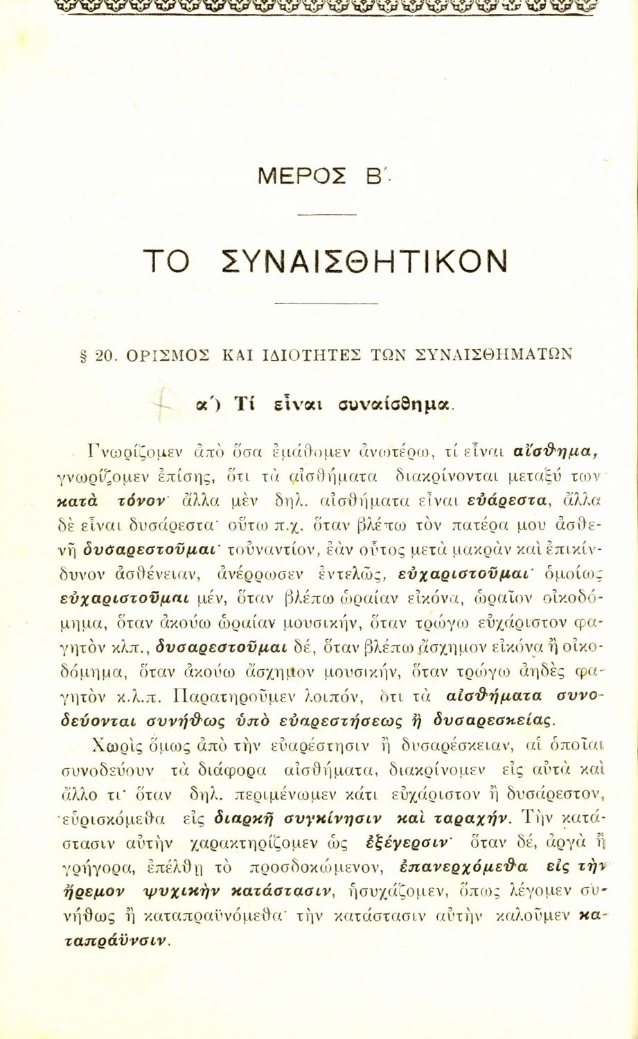 Σχολικό εγχειρίδιο Πειραματικής Ψυχολογίας για τη Γ΄ Γυμνασίου χωρισμένο σε τρία τμήματα: το παριστάναι, το συναισθάνεσθαι, και το βούλεσθαι.