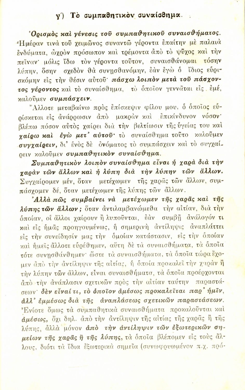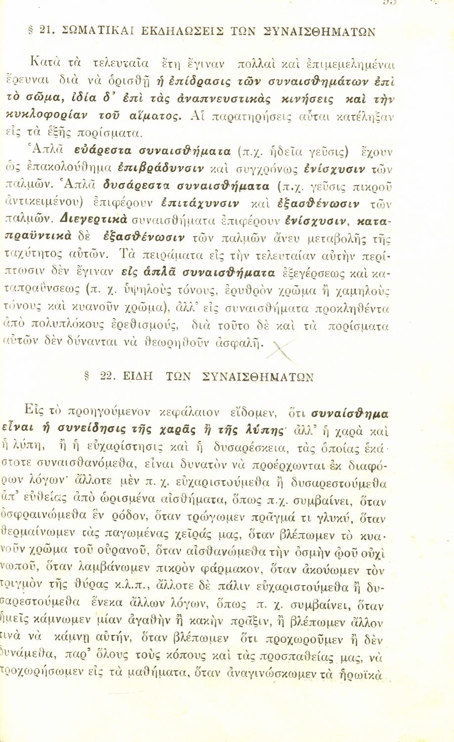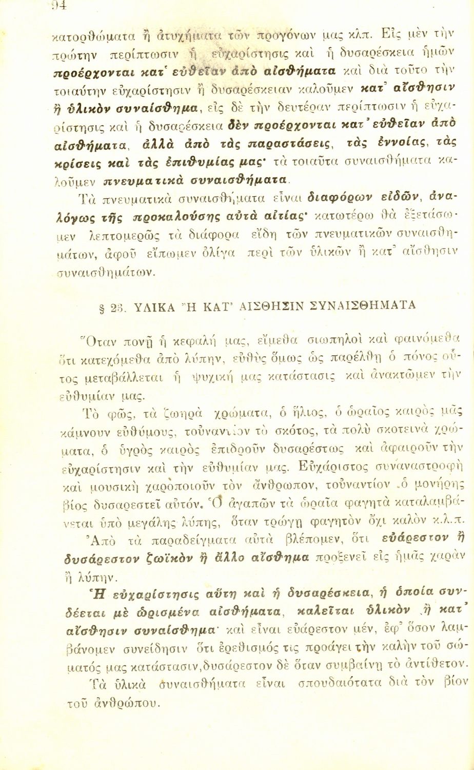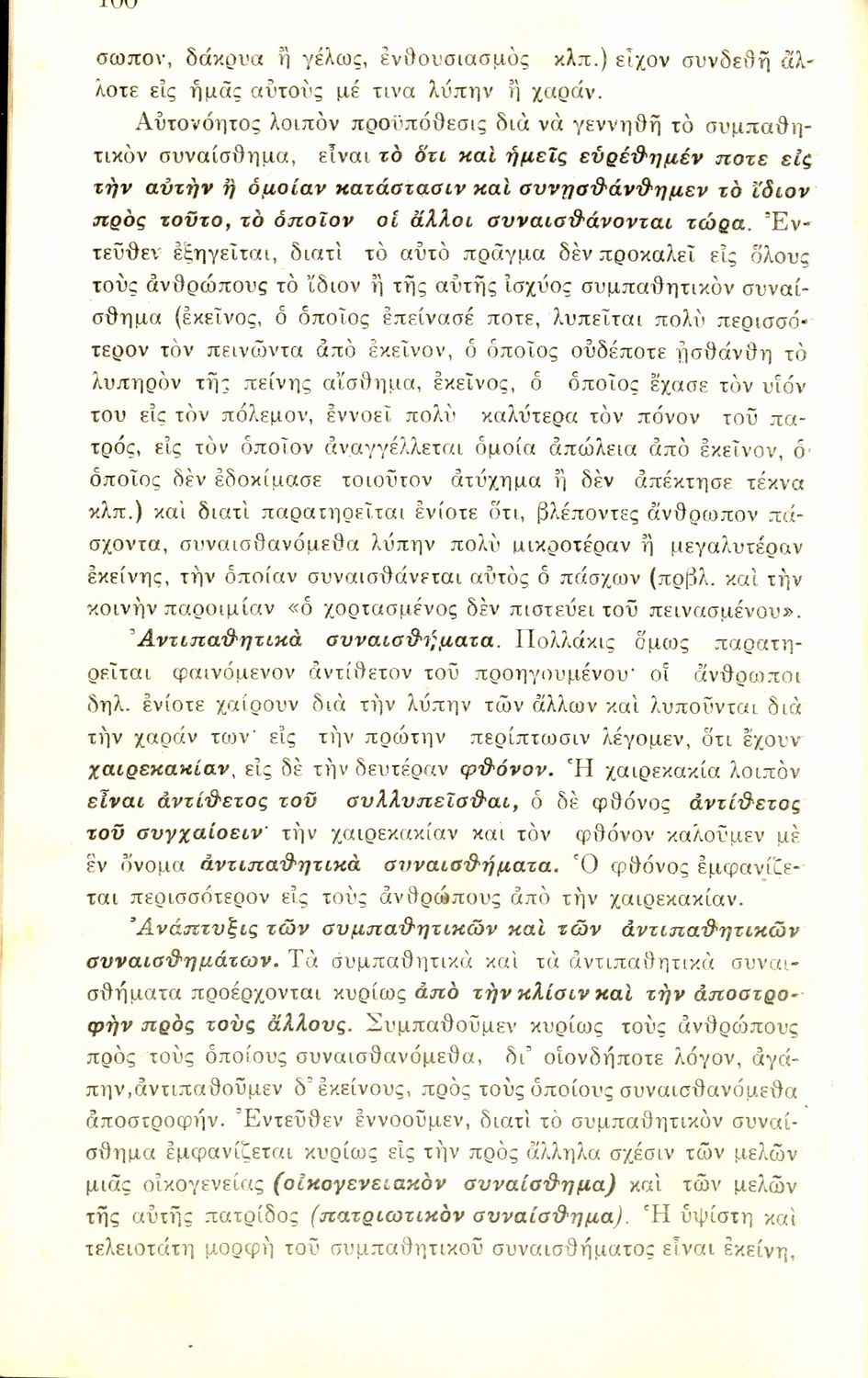 Σχολικό εγχειρίδιο Πειραματικής Ψυχολογίας για τη Γ΄ Γυμνασίου χωρισμένο σε τρία τμήματα: το παριστάναι, το συναισθάνεσθαι, και το βούλεσθαι.