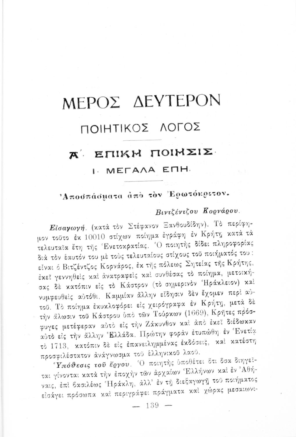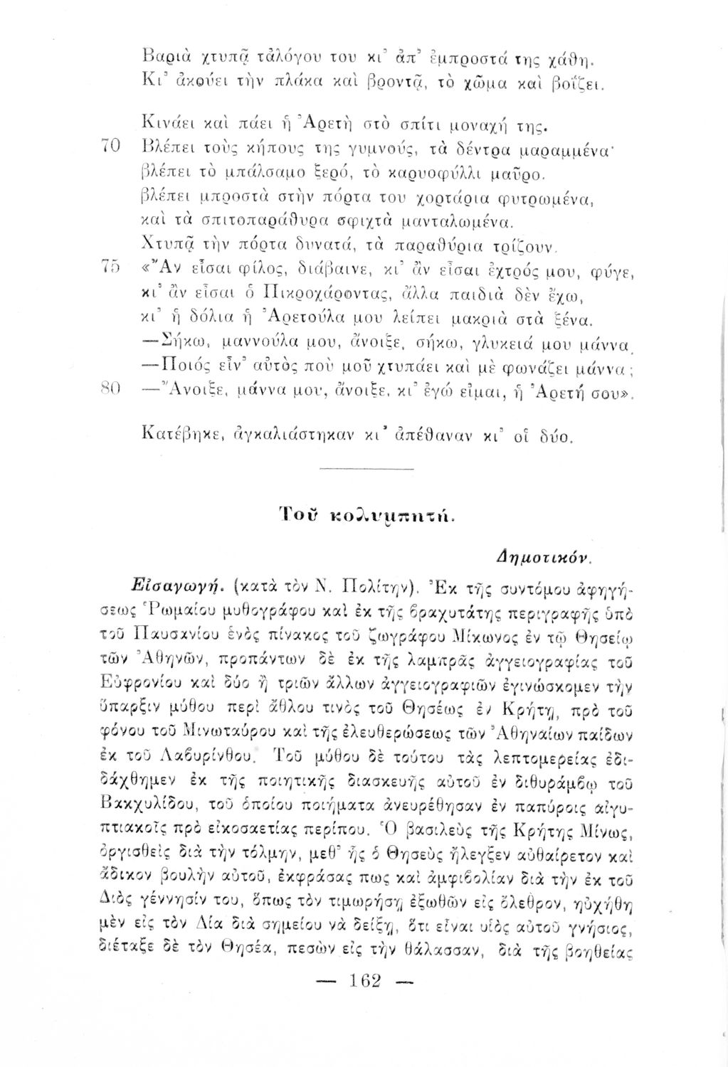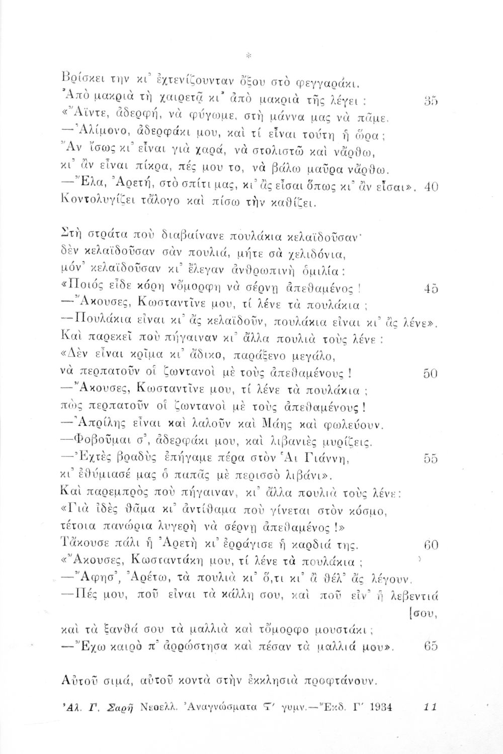 Σχολικό εγχειρίδιο για την Β΄ Γυμνασίου και την Γ΄ Αστικού Θηλέων για το μάθημα των Νέων Ελληνικών. Το εγχειρίδιο αποτελείται από κείμενα πεζού λόγου, επικολυρικά ποιήματα, ωδές, ηθογραφικά διηγήματα, ρητορικά