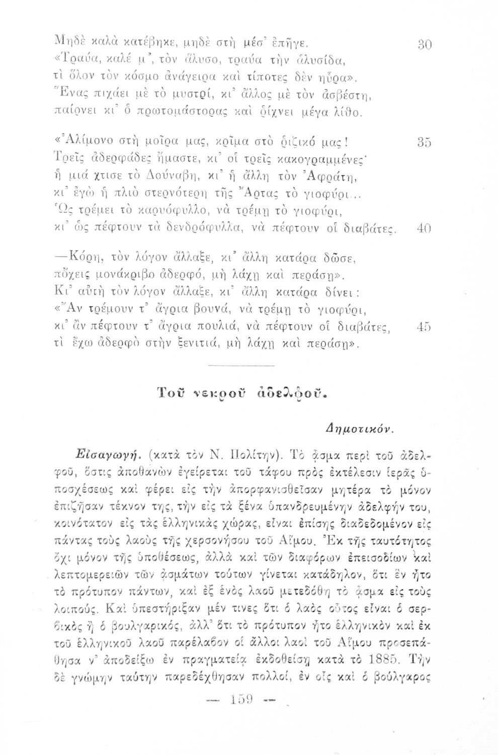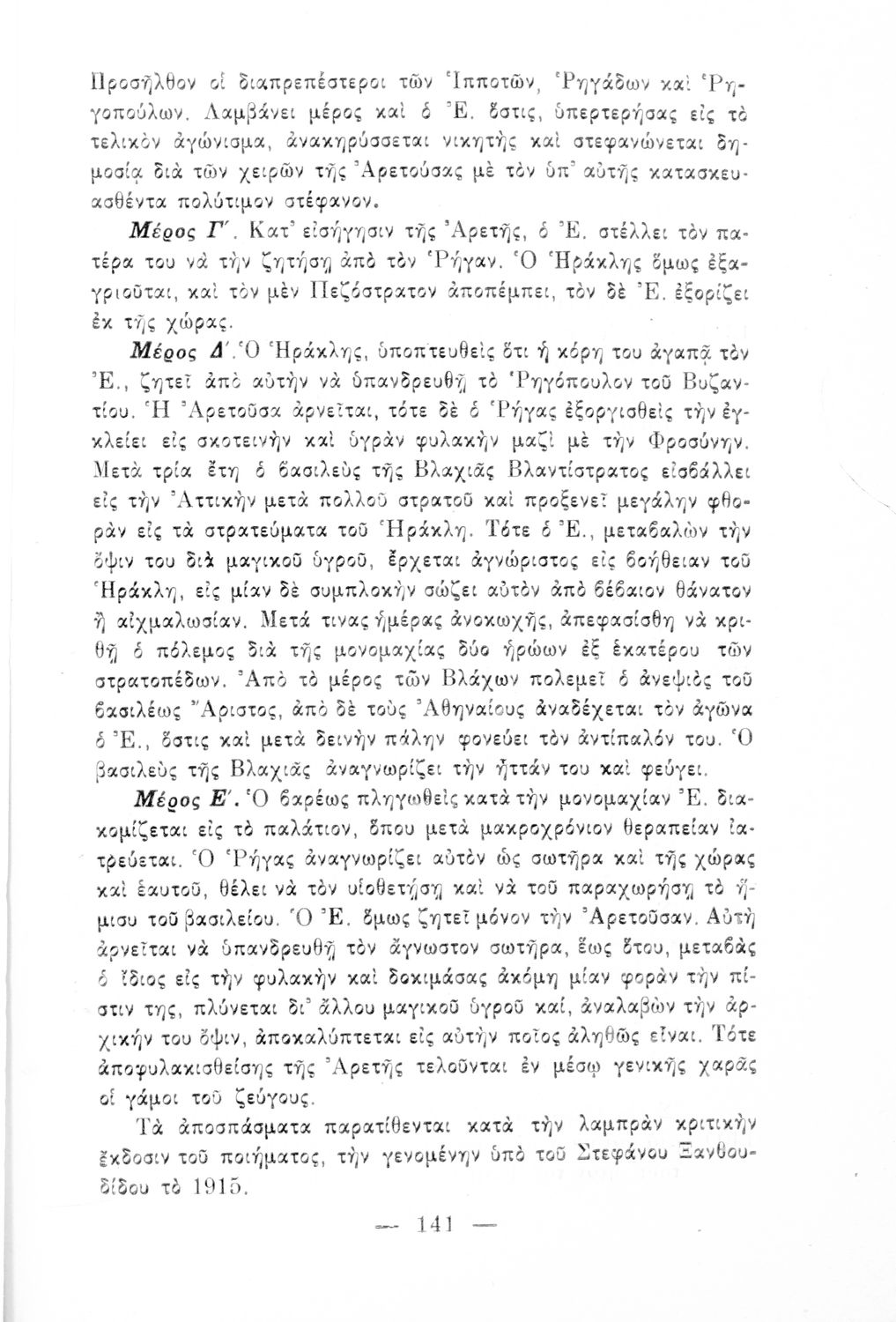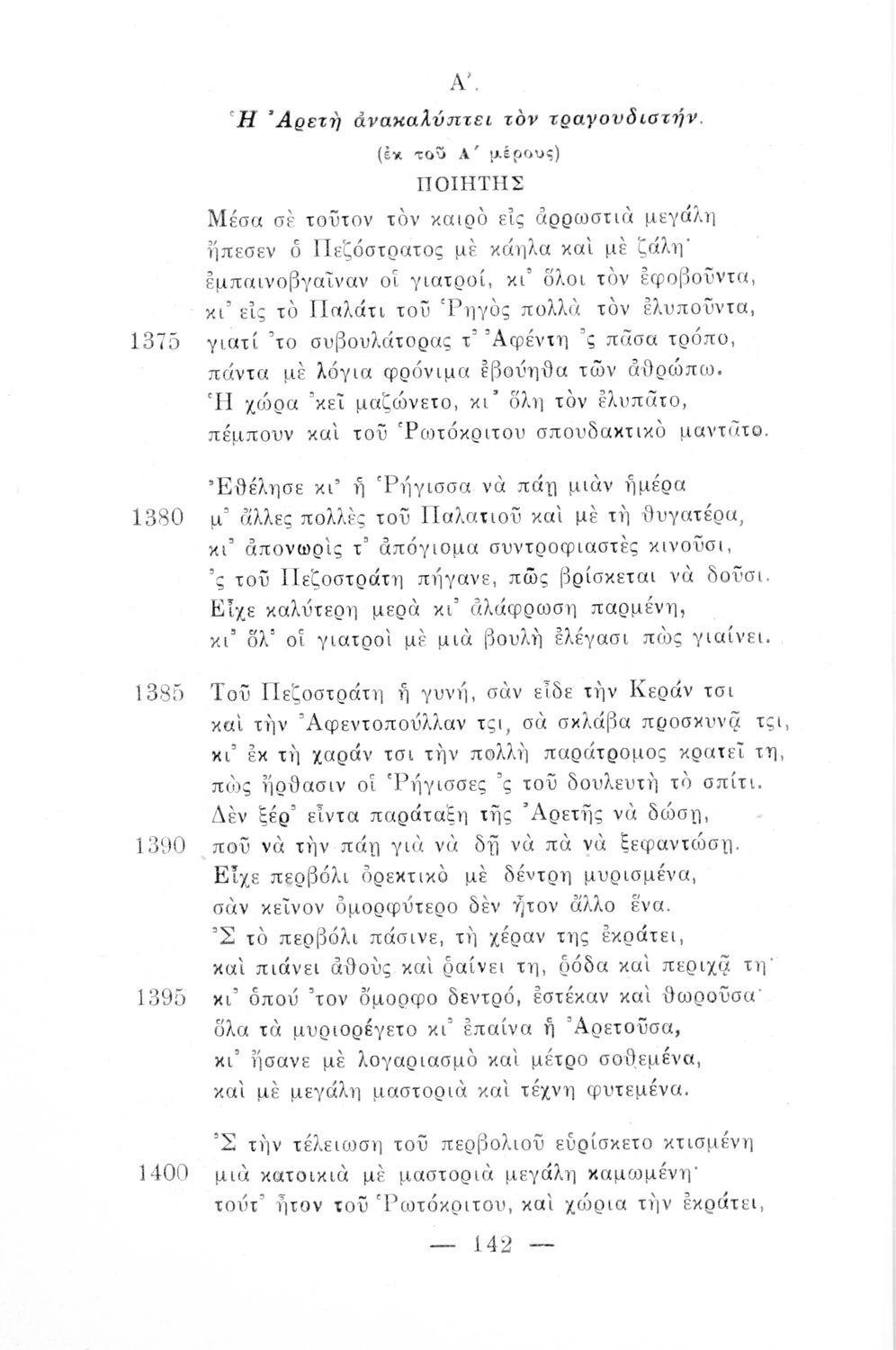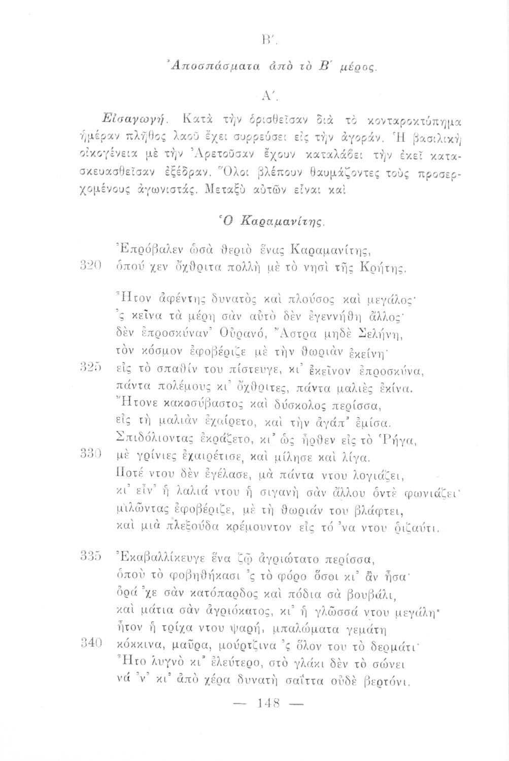 Σχολικό εγχειρίδιο για την Β΄ Γυμνασίου και την Γ΄ Αστικού Θηλέων για το μάθημα των Νέων Ελληνικών. Το εγχειρίδιο αποτελείται από κείμενα πεζού λόγου, επικολυρικά ποιήματα, ωδές, ηθογραφικά διηγήματα, ρητορικά