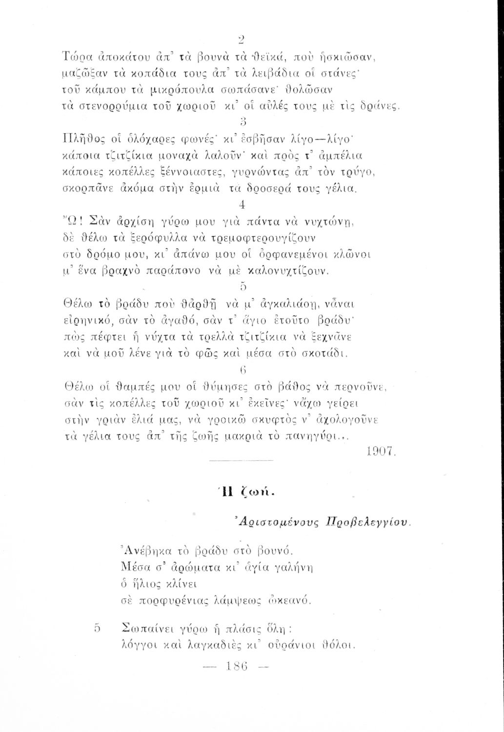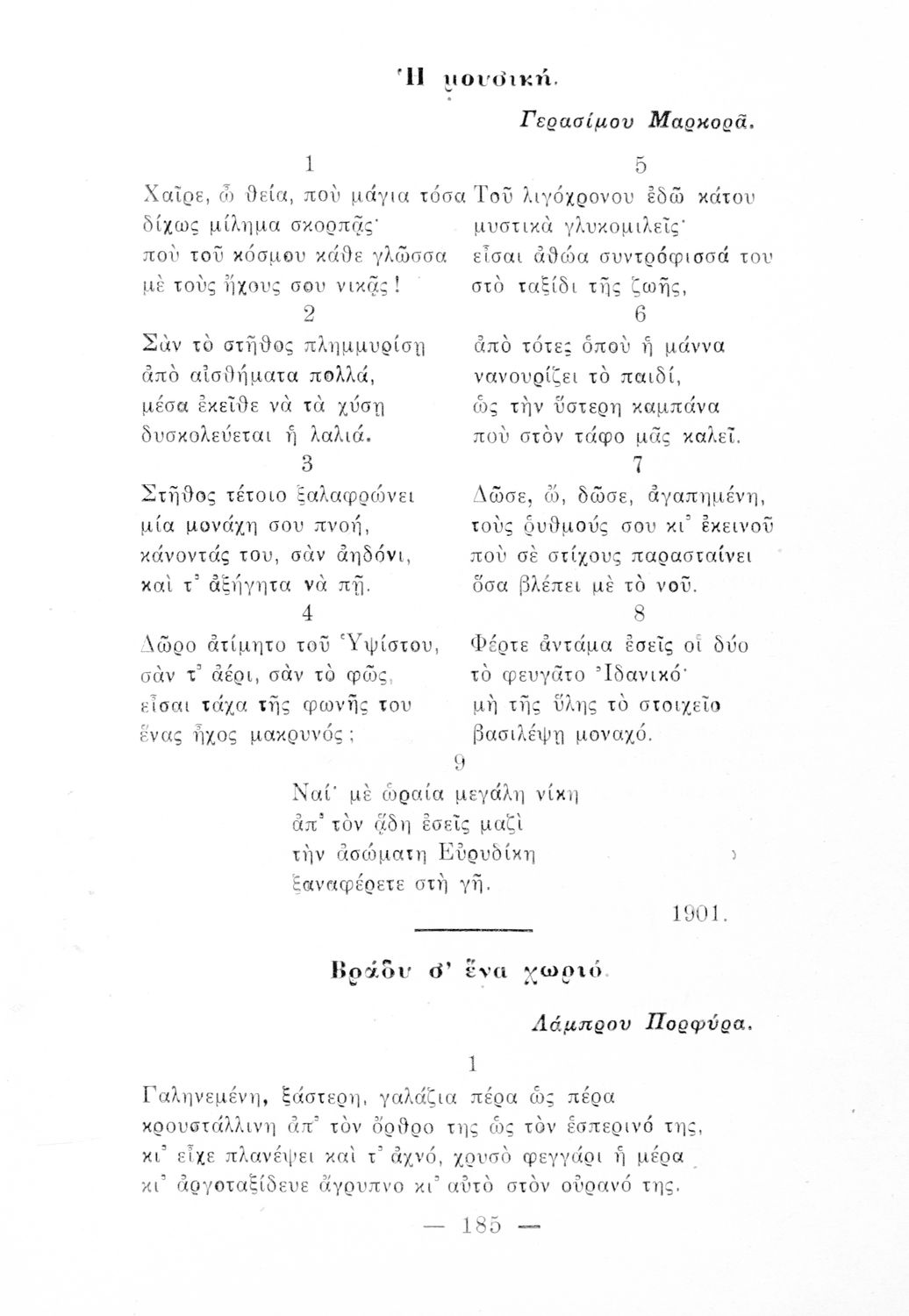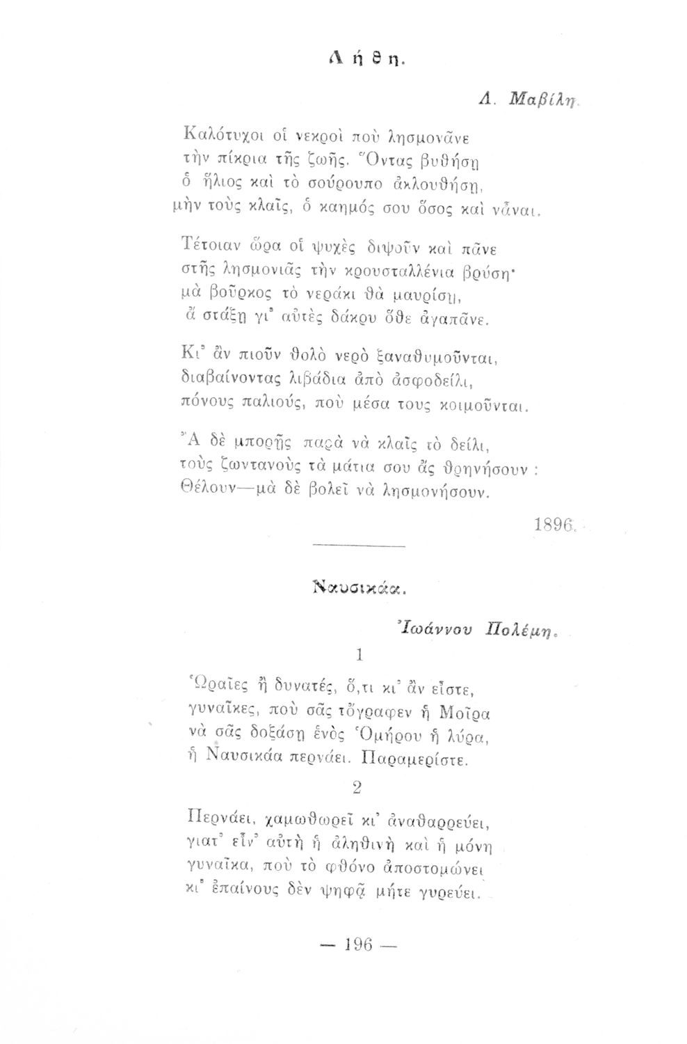 Σχολικό εγχειρίδιο για την Β΄ Γυμνασίου και την Γ΄ Αστικού Θηλέων για το μάθημα των Νέων Ελληνικών. Το εγχειρίδιο αποτελείται από κείμενα πεζού λόγου, επικολυρικά ποιήματα, ωδές, ηθογραφικά διηγήματα, ρητορικά