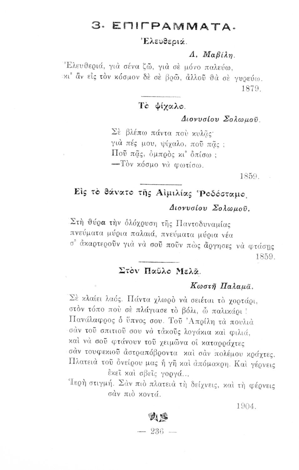 Σχετιζόμενοι όροι:  Κορνάρος, Κάλβος, Κοραής, Παλαμάς