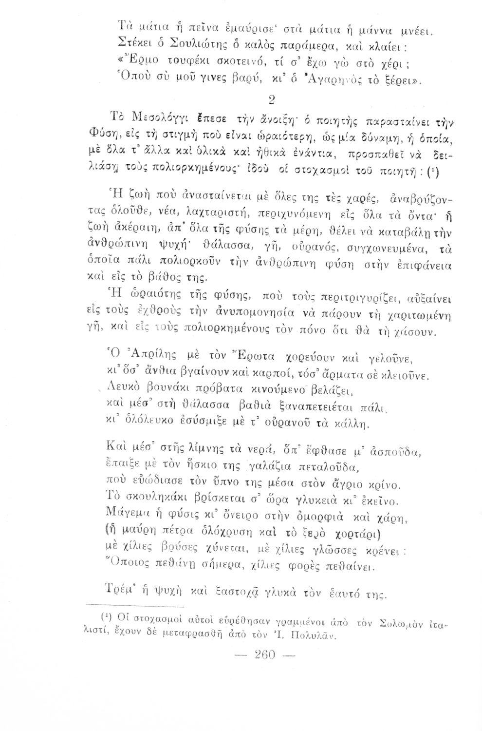 Σχολικό εγχειρίδιο Νέων Ελληνικών ΣΤ΄ Γυμνασίου που περιλαμβάνει ποιήματα και πεζά Ελλήνων συγγραφέων εμπνευσμένα από την σύγχρονη ελληνική ιστορία, τη θρησκευτική παράδοση, την οικογενειακή ζωή, και την ελληνική φύση. Περιέχει και παράρτημα με βιογραφίες και εργογραφίες των δημιουργών και με επεξηγήσεις ορισμών και λέξεων.