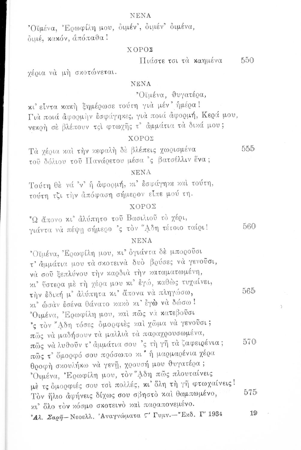 Σχολικό εγχειρίδιο για την Β΄ Γυμνασίου και την Γ΄ Αστικού Θηλέων για το μάθημα των Νέων Ελληνικών. Το εγχειρίδιο αποτελείται από κείμενα πεζού λόγου, επικολυρικά ποιήματα, ωδές, ηθογραφικά διηγήματα, ρητορικά