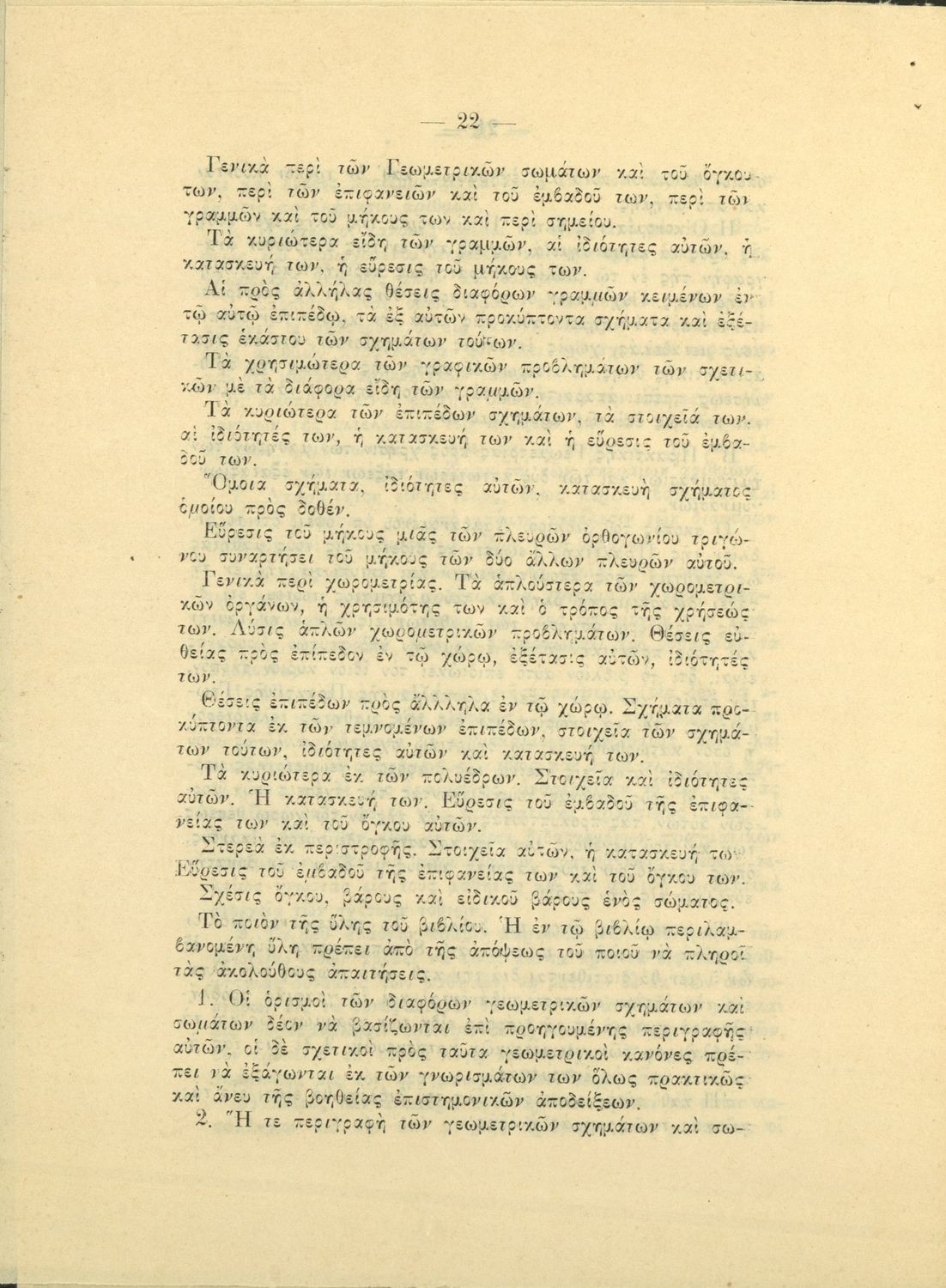 Σχολικό εγχειρίδιο Γεωμετρίας Γυμνασίου που περιλαμβάνει θεωρία και ασκήσεις και είναι χωρισμένο σε Επιπεδομετρία και Στερεομετρία.