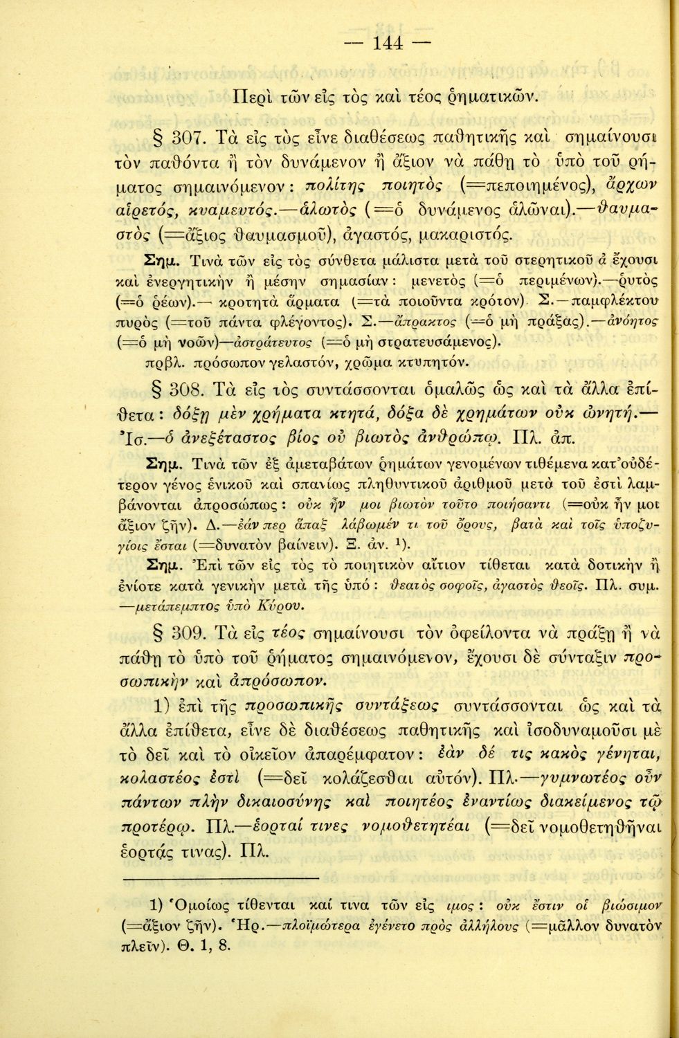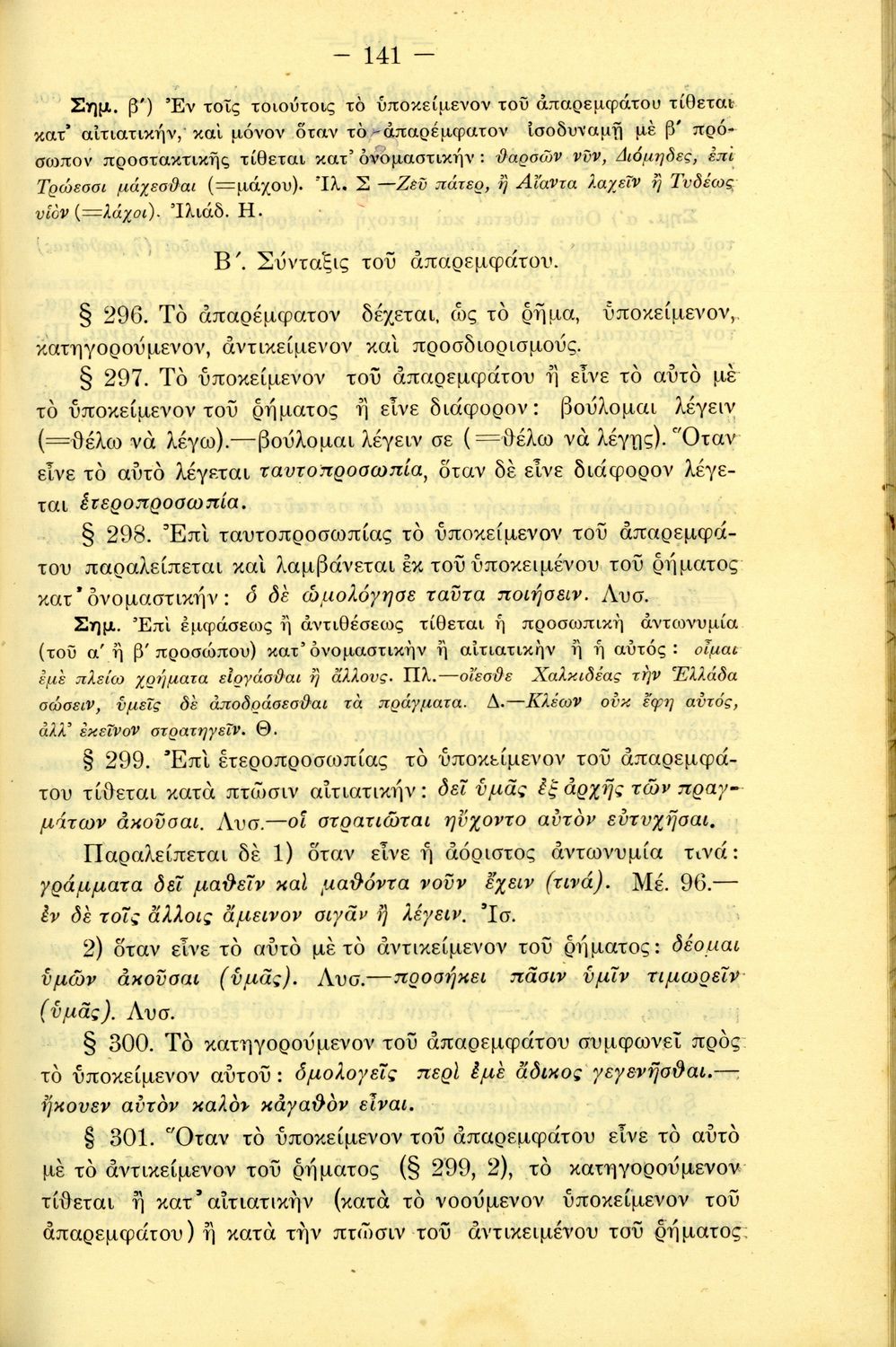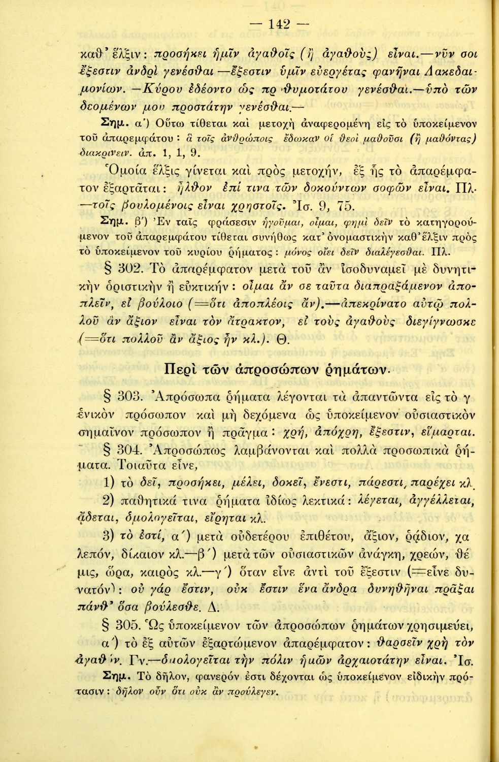 Σχολικό εγχειρίδιο Αρχαίων Ελληνικών για τα Ελληνικά Σχολεία, Παρθεναγωγεία και Γυμνάσια που περιέχει τους κανόνες γραμματικής και είναι χωρισμένο σε φθογγολογικό, τυπολογικό και ετυμολογικό μέρος.