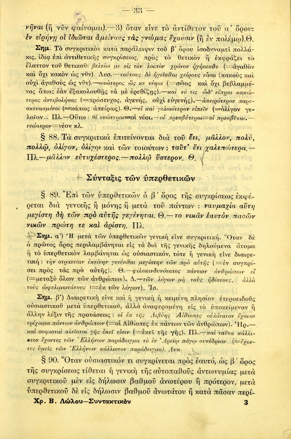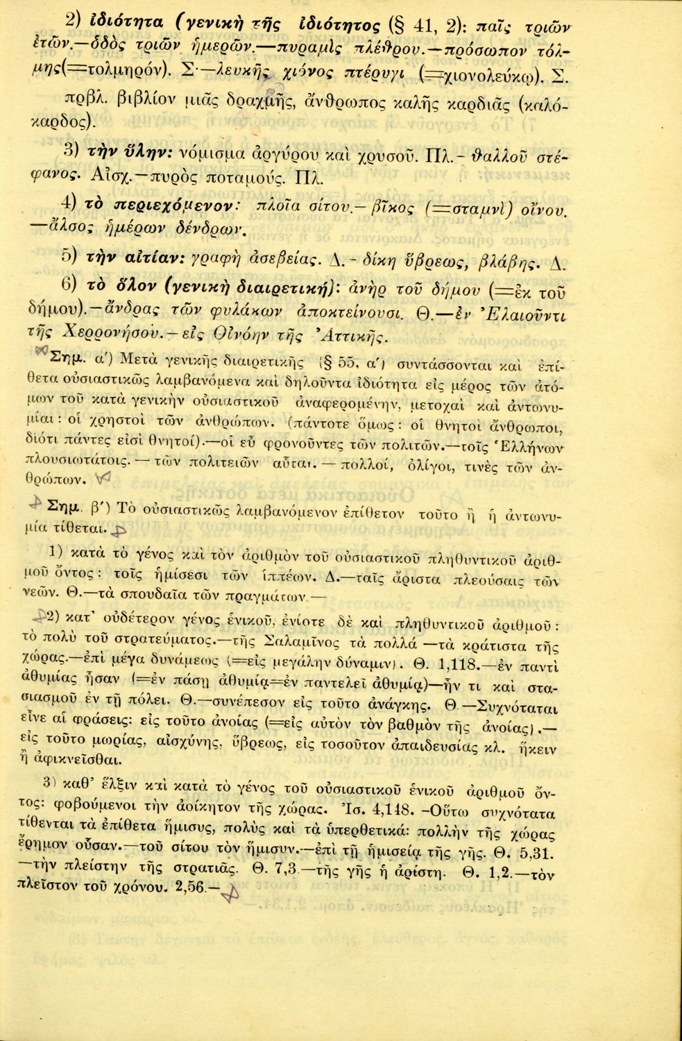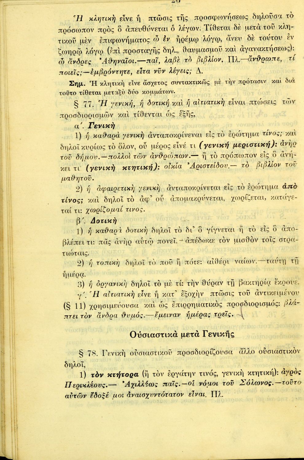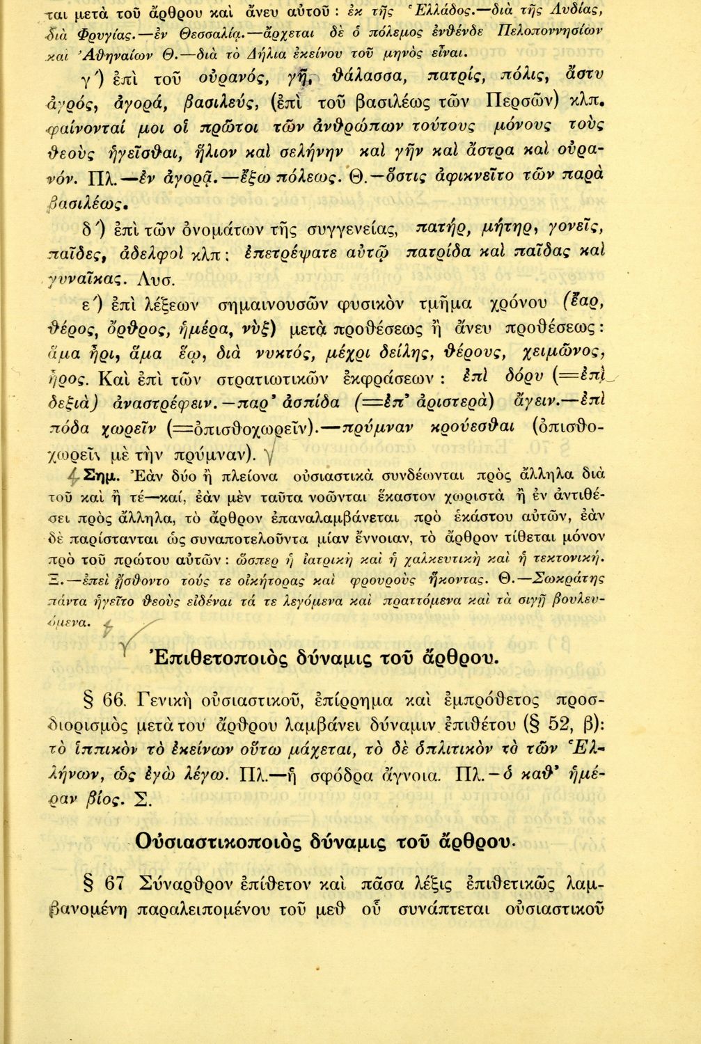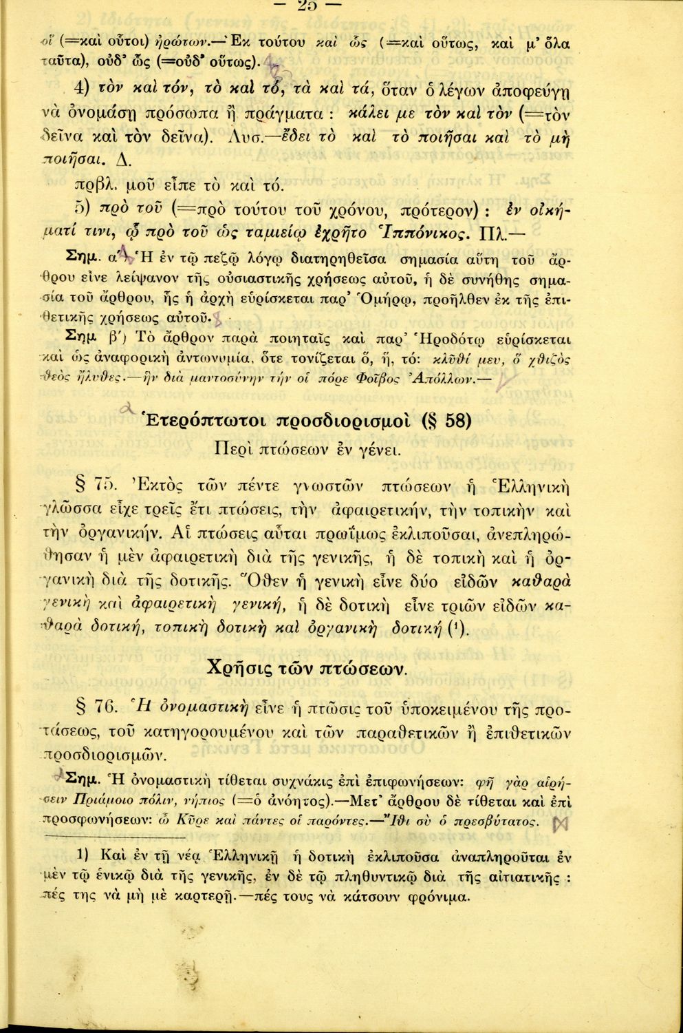 Σχολικό εγχειρίδιο Αρχαίων Ελληνικών για τα Ελληνικά Σχολεία, Παρθεναγωγεία και Γυμνάσια που περιέχει τους κανόνες γραμματικής και είναι χωρισμένο σε φθογγολογικό, τυπολογικό και ετυμολογικό μέρος.