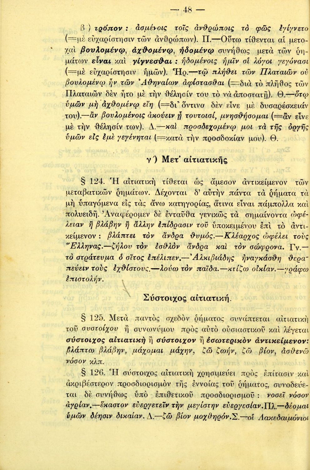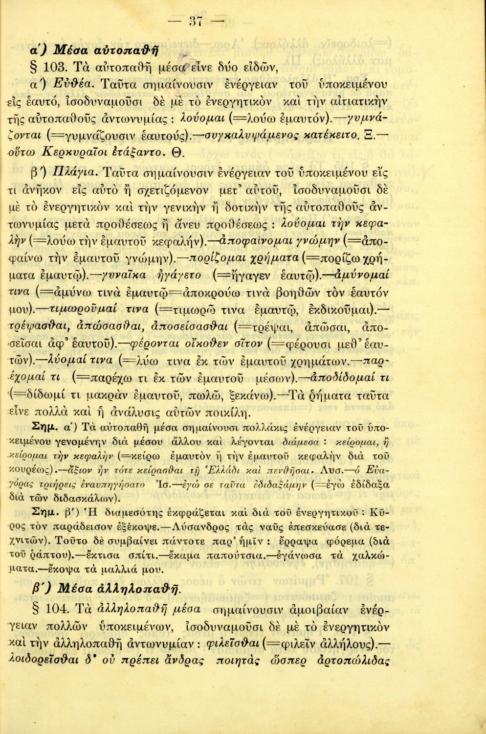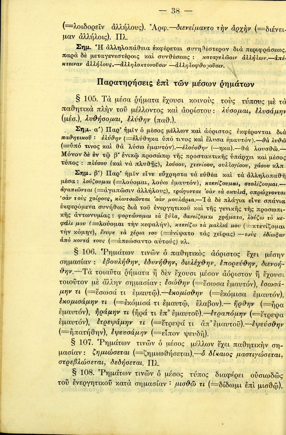 Σχολικό εγχειρίδιο Αρχαίων Ελληνικών για τα Ελληνικά Σχολεία, Παρθεναγωγεία και Γυμνάσια που περιέχει τους κανόνες γραμματικής και είναι χωρισμένο σε φθογγολογικό, τυπολογικό και ετυμολογικό μέρος.