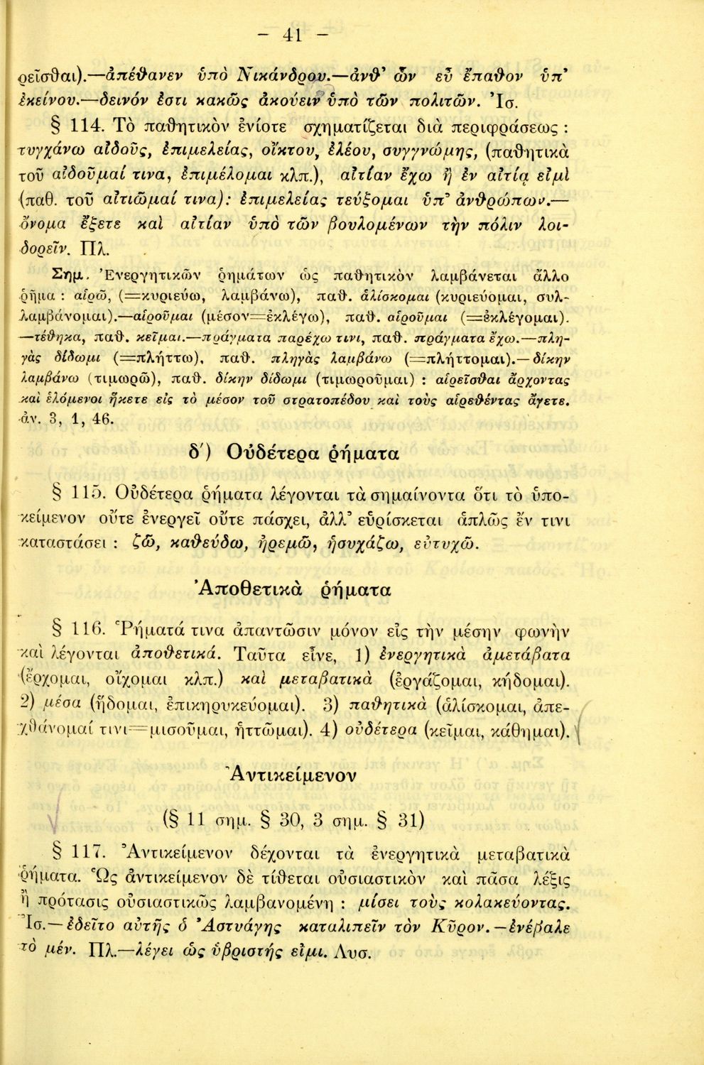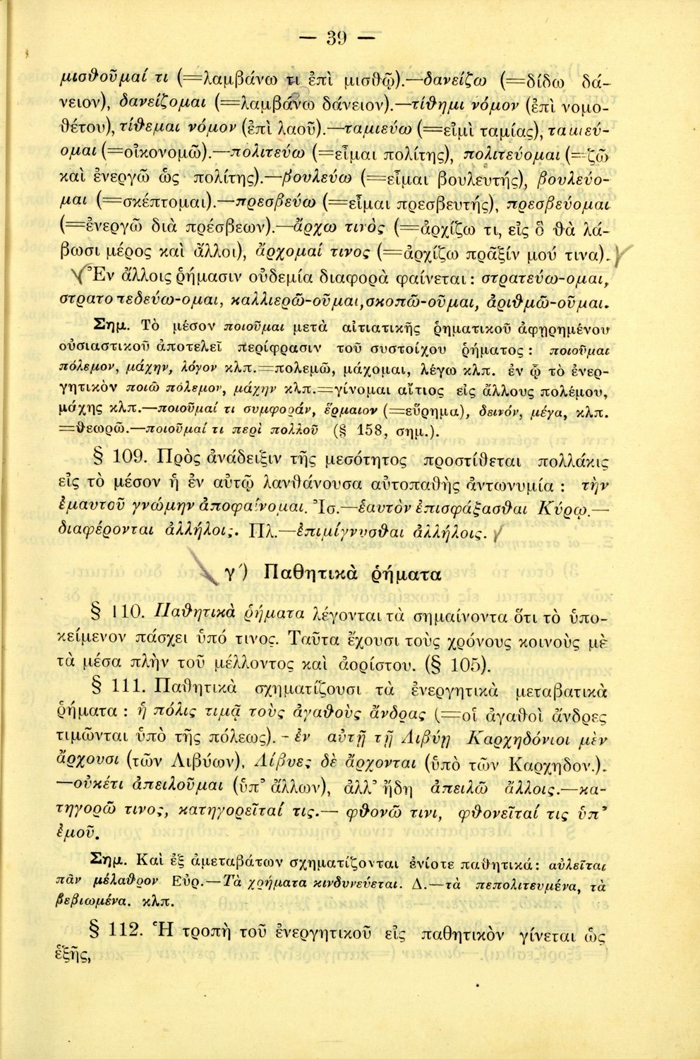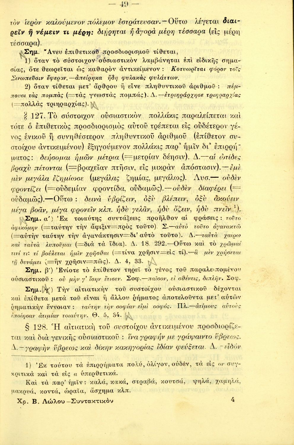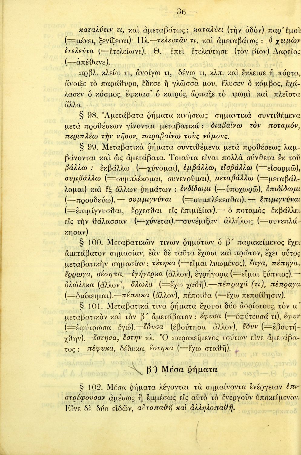 Σχολικό εγχειρίδιο Αρχαίων Ελληνικών για τα Ελληνικά Σχολεία, Παρθεναγωγεία και Γυμνάσια που περιέχει τους κανόνες γραμματικής και είναι χωρισμένο σε φθογγολογικό, τυπολογικό και ετυμολογικό μέρος.