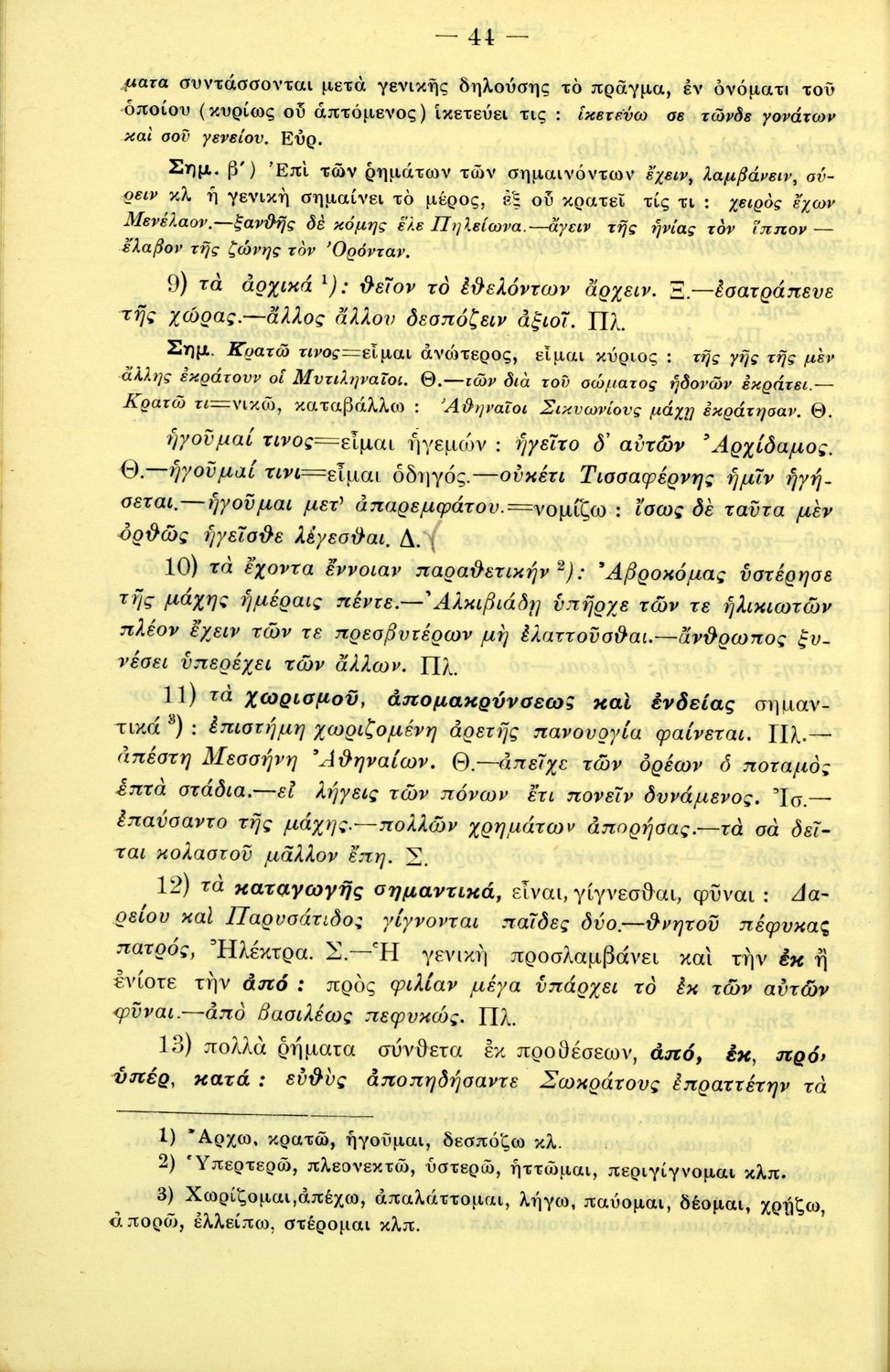 Μαθητικό βοήθημα Αρχαίων Ελληνικών για τα Ελληνικά Σχολεία, Παρθεναγωγεία και Γυμνάσια που περιλαμβάνει γραμματική της αρχαίας ελληνικής και κατάλογο ανωμάλων ρημάτων.