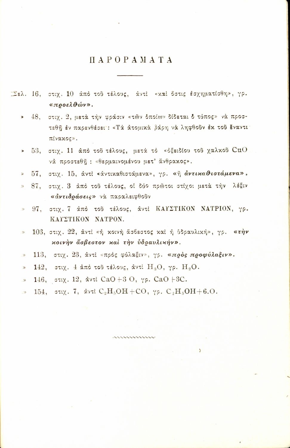 Βαθμίδα εκπαίδευσης: Δευτεροβάθμια Τάξη: Ε' Γυμνασίου / ΣΤ' Γυμνασίου Μάθημα: Χημεία Γλώσσα: Καθαρεύουσα Παρουσίαση περιεχομένου: Σχολικό εγχειρίδιο Χημείας Ε΄ Γυμνασίου / ΣΤ΄ Γυμνασίου που εστιάζει στα βασικά στοιχεία της ανόργανης και οργανικής χημείας. |