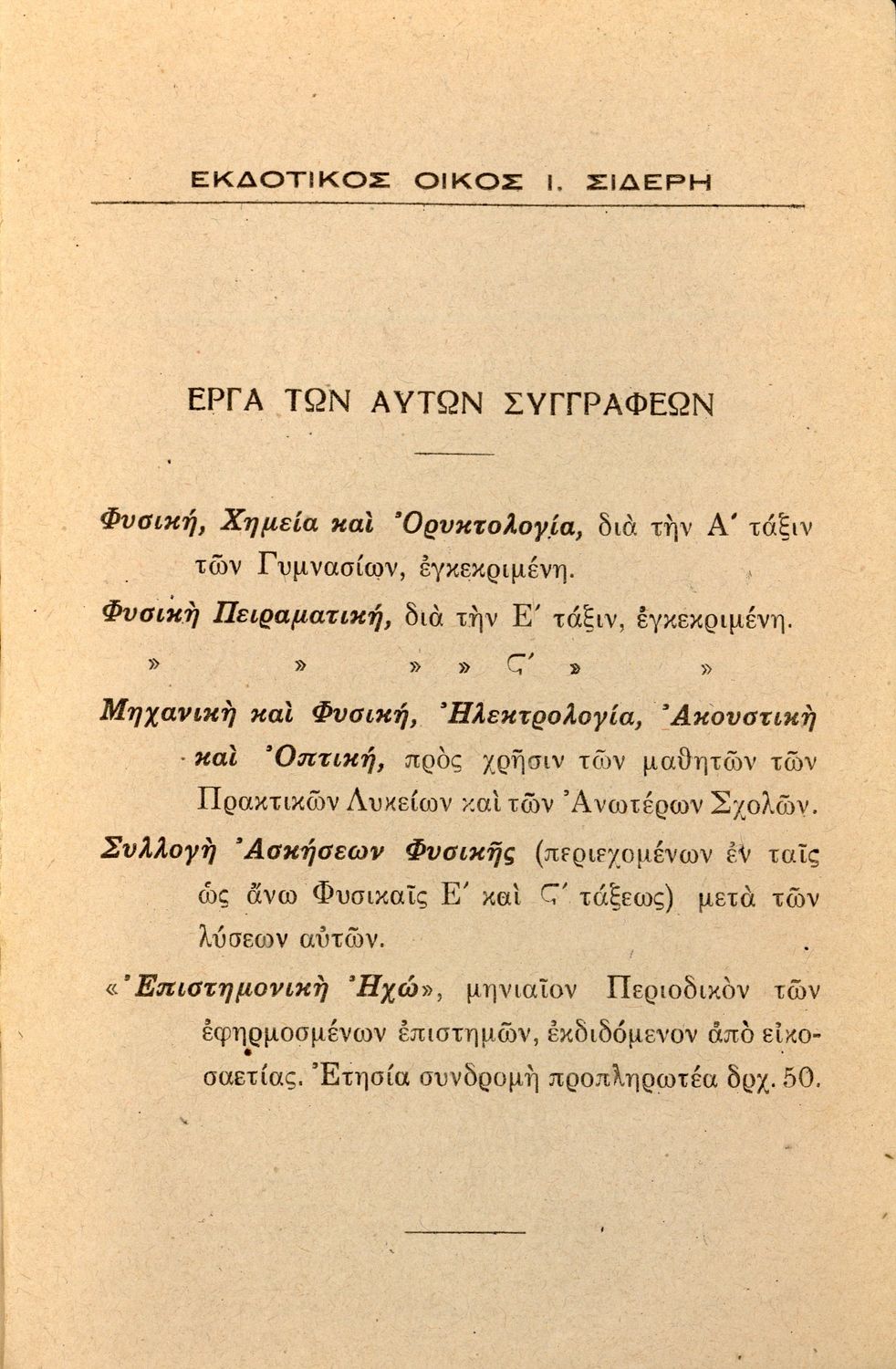 Τίτλος: Στοιχεία χημείας διά την Ε΄ και ΣΤ΄ τάξιν των Γυμνασίων και τας αντιστοίχους τάξεις των λοιπών της Μέσης Εκπαιδεύσεως