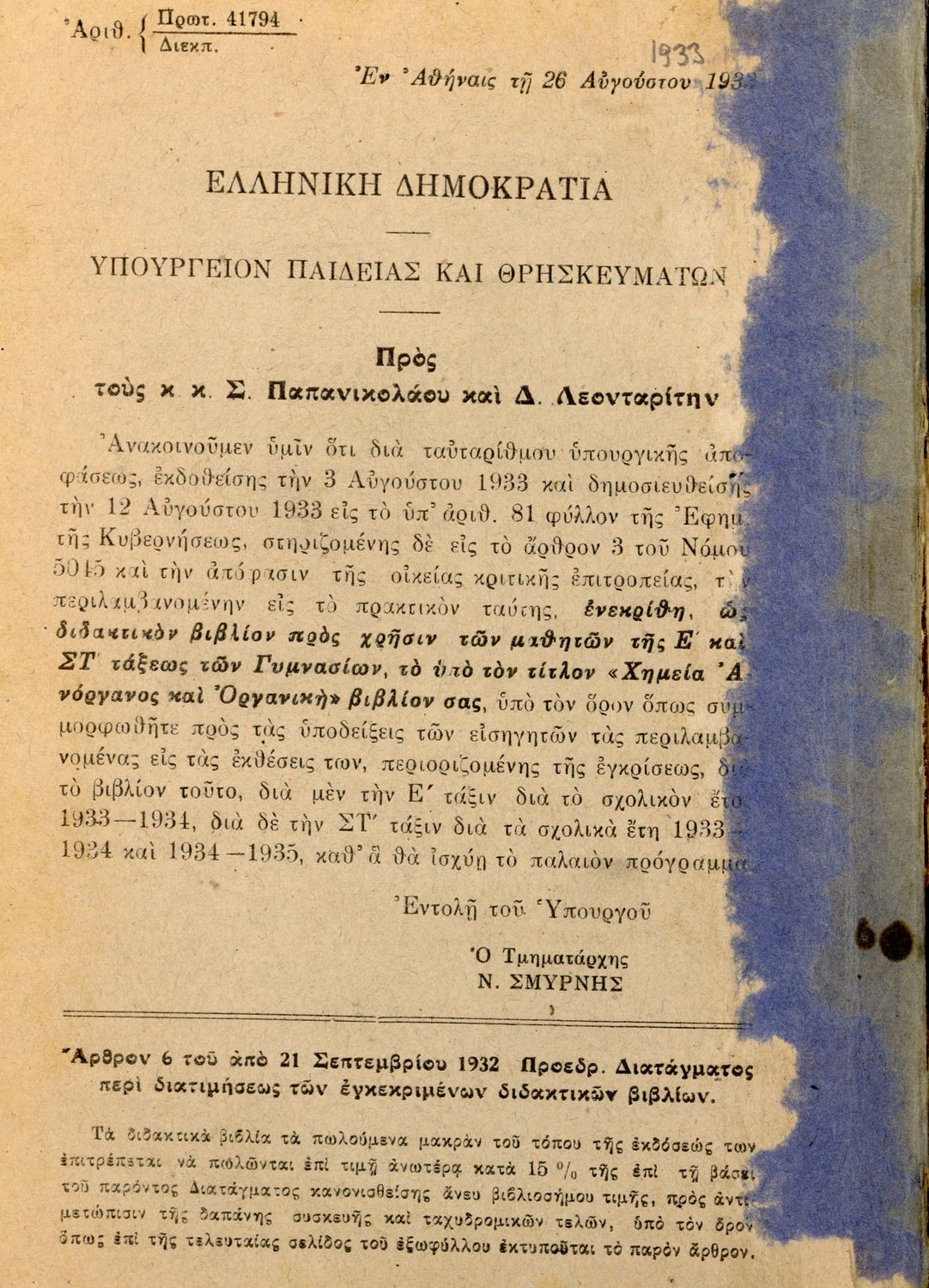 Υπουργική απόφαση / Σύμβαση: 41794/3-8-1933