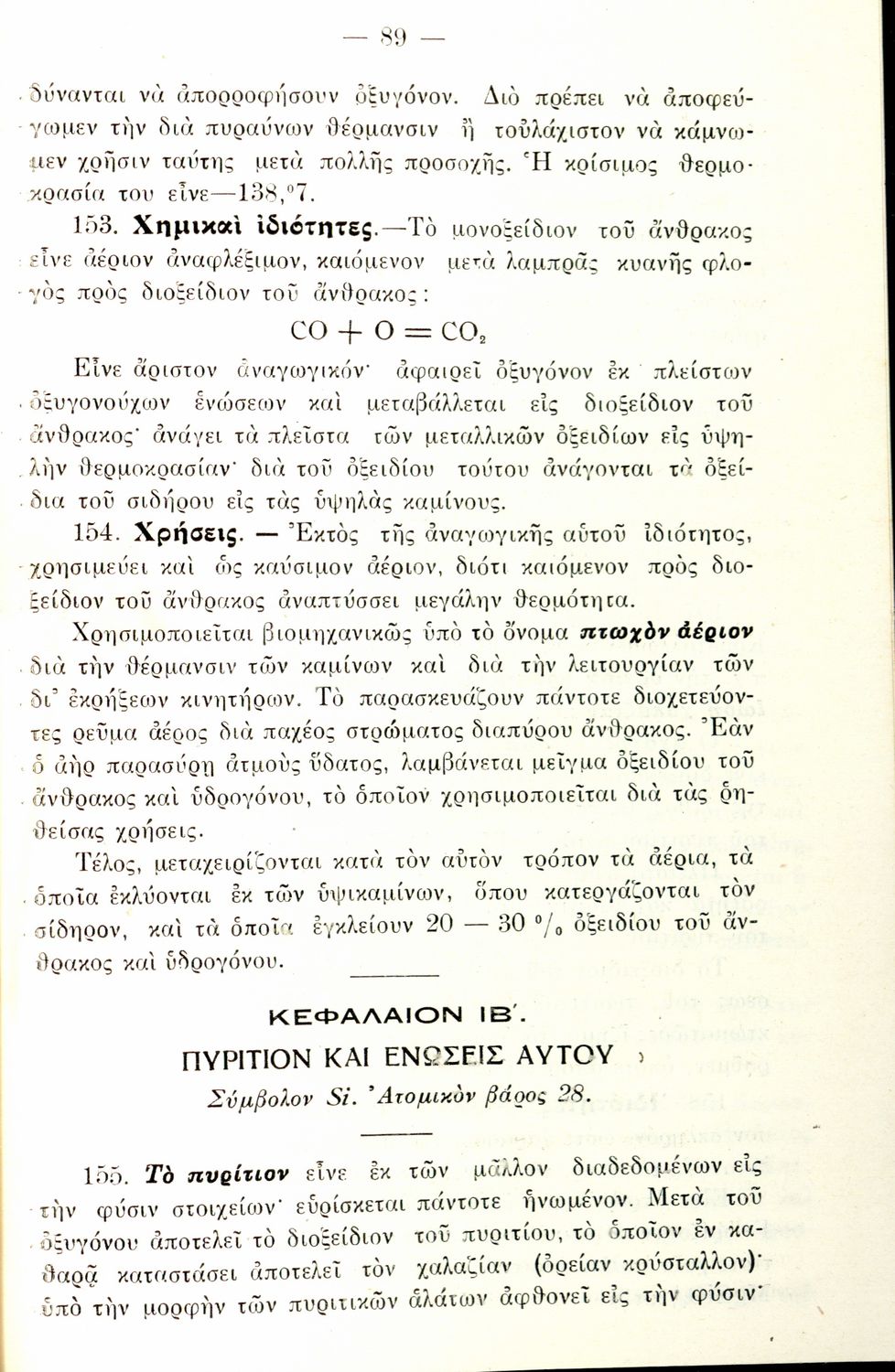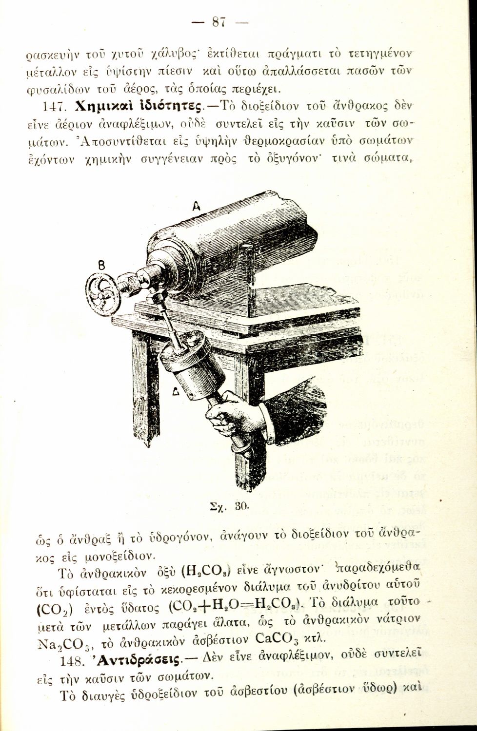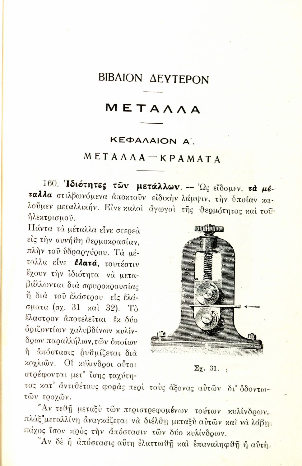 Βαθμίδα εκπαίδευσης: Δευτεροβάθμια Τάξη: Ε' Γυμνασίου / ΣΤ' Γυμνασίου Μάθημα: Χημεία Γλώσσα: Καθαρεύουσα Παρουσίαση περιεχομένου: Σχολικό εγχειρίδιο Χημείας Ε΄ Γυμνασίου / ΣΤ΄ Γυμνασίου που εστιάζει στα βασικά στοιχεία της ανόργανης και οργανικής χημείας. |