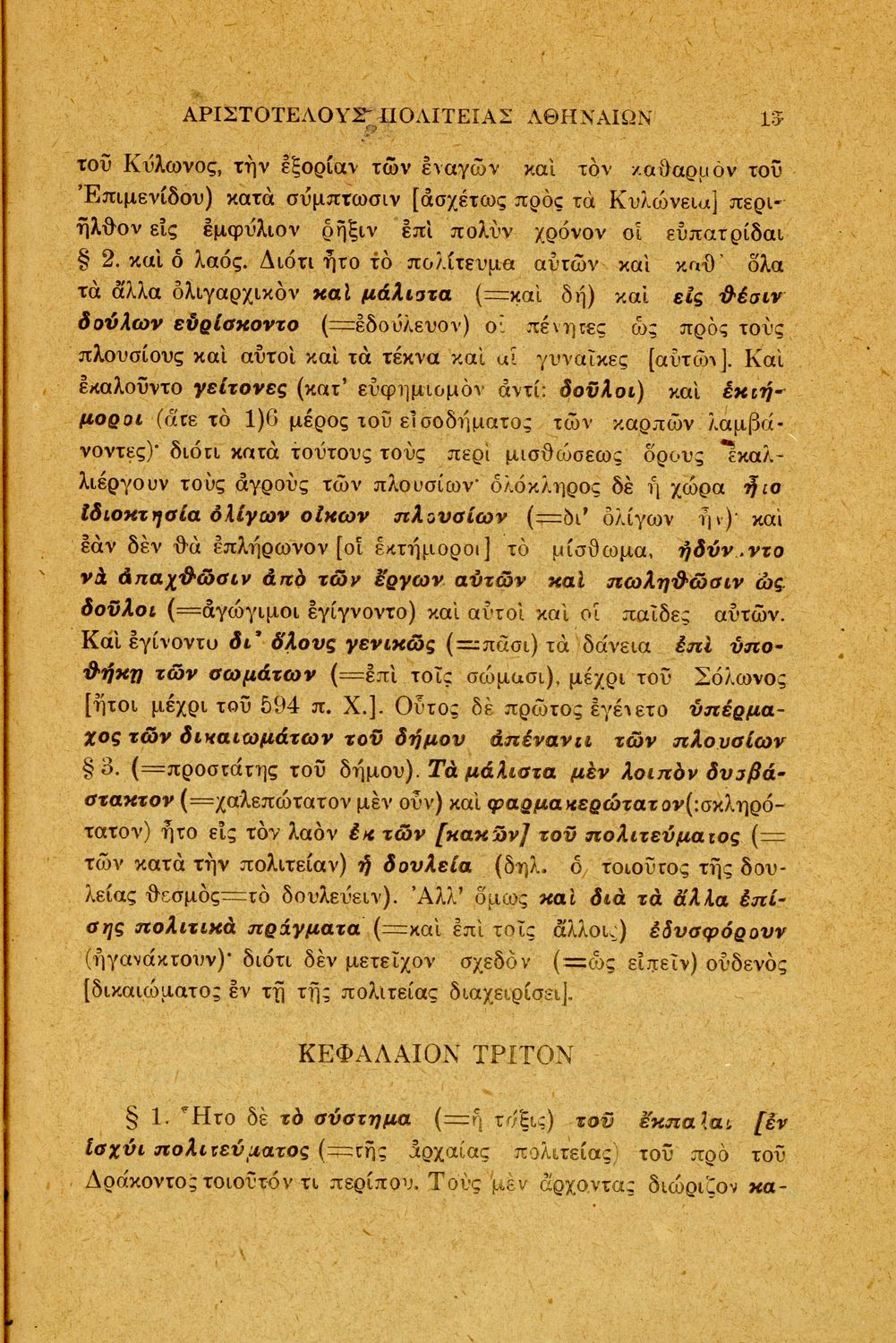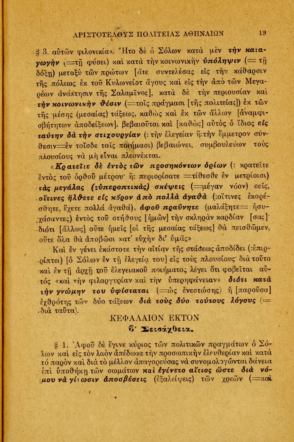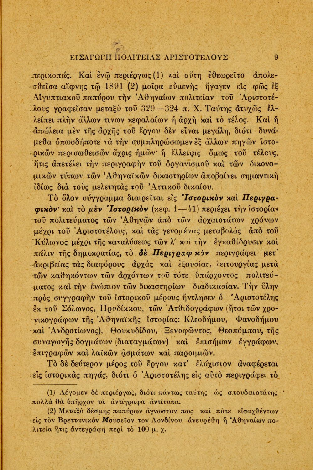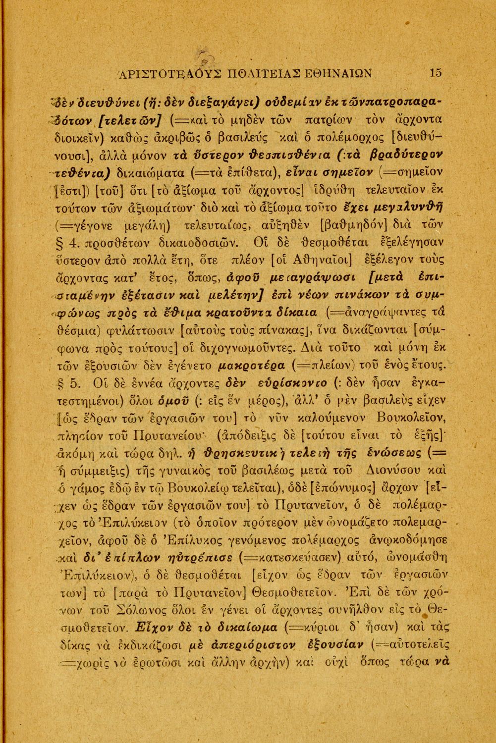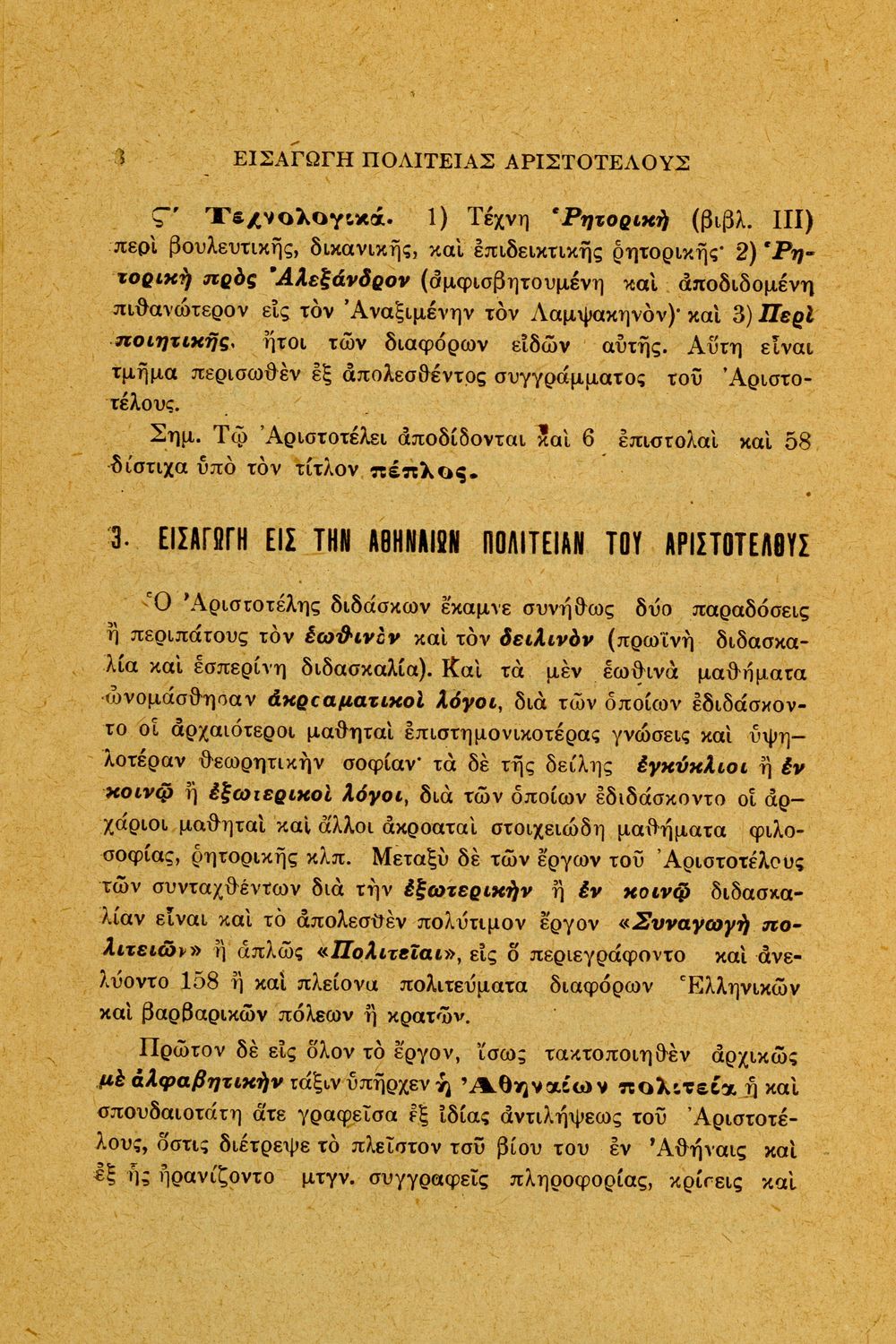 Σχολική μετάφρασις Αριστοτέλους Πολιτείας Αθηναίων προς χρήσιν των μαθητών της πρώτης τάξεως των Τετραταξίων Γυμνασίων και της αντιστοίχου τάξεως των λοιπών σχολείων της Μ. Εκπαιδεύσεως