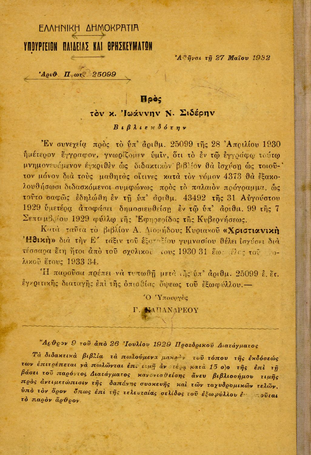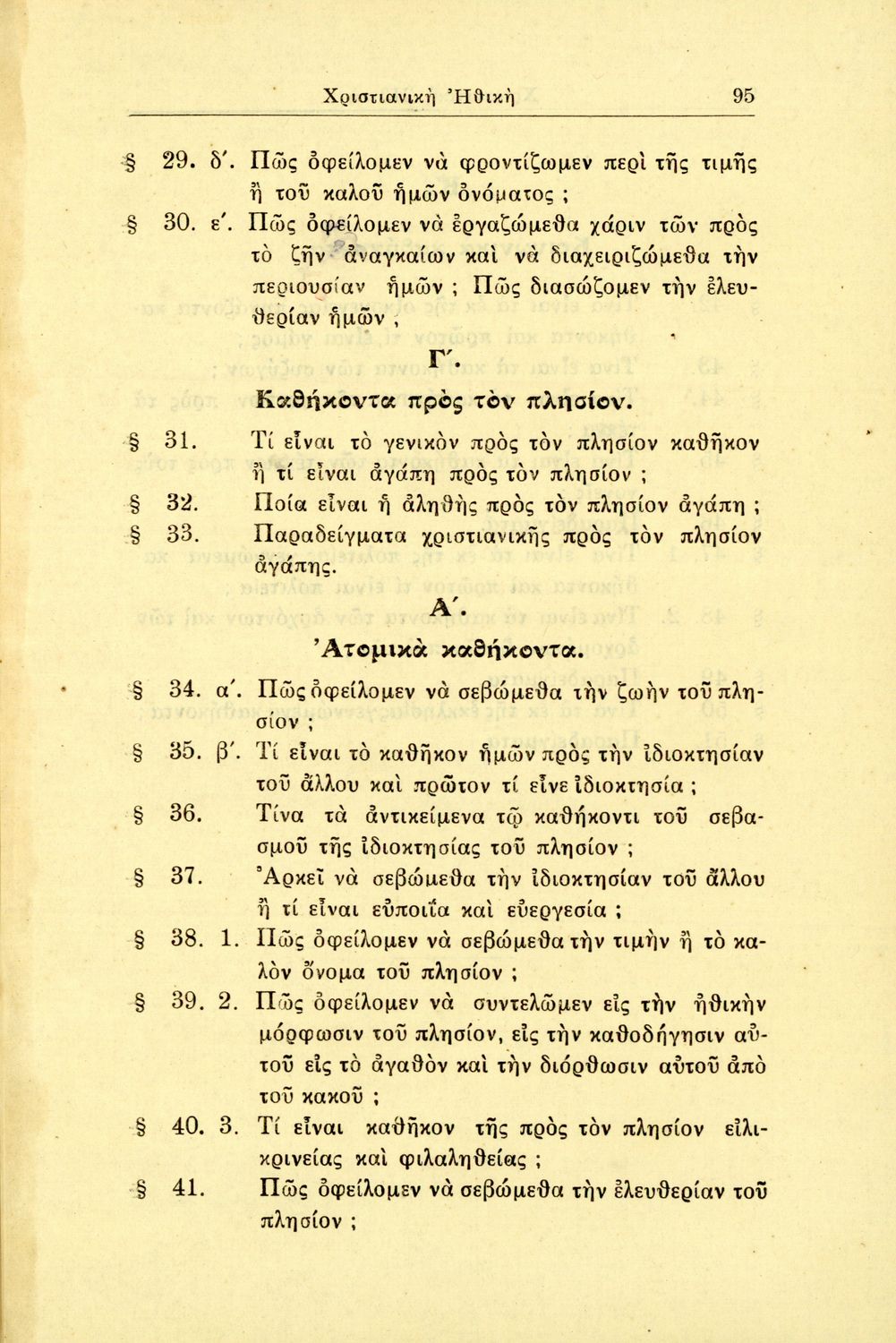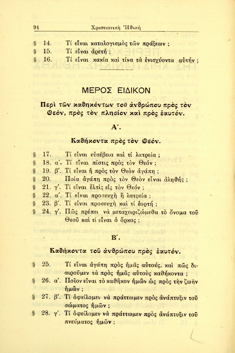 Σχολικό εγχειρίδιο Θρησκευτικών για τα Γυμνάσια και τα Διδασκαλεία που εστιάζει στη χριστιανική ηθική και αναλύει τα καθήκοντα του ανθρώπου προς τον Θεό, τους άλλους ανθρώπους και τον εαυτό του.