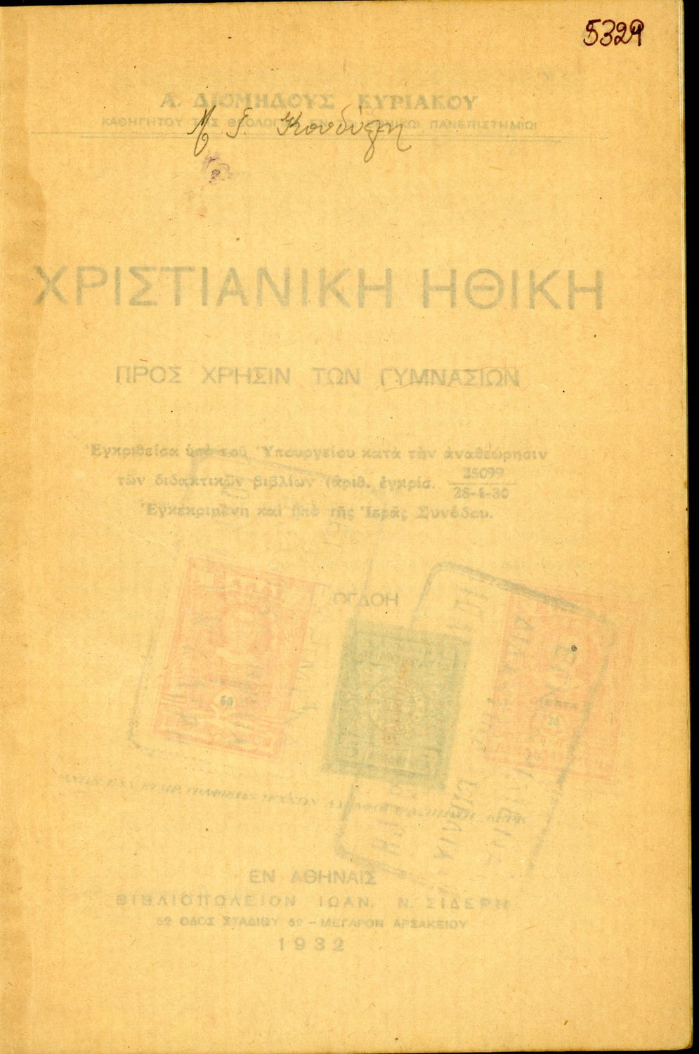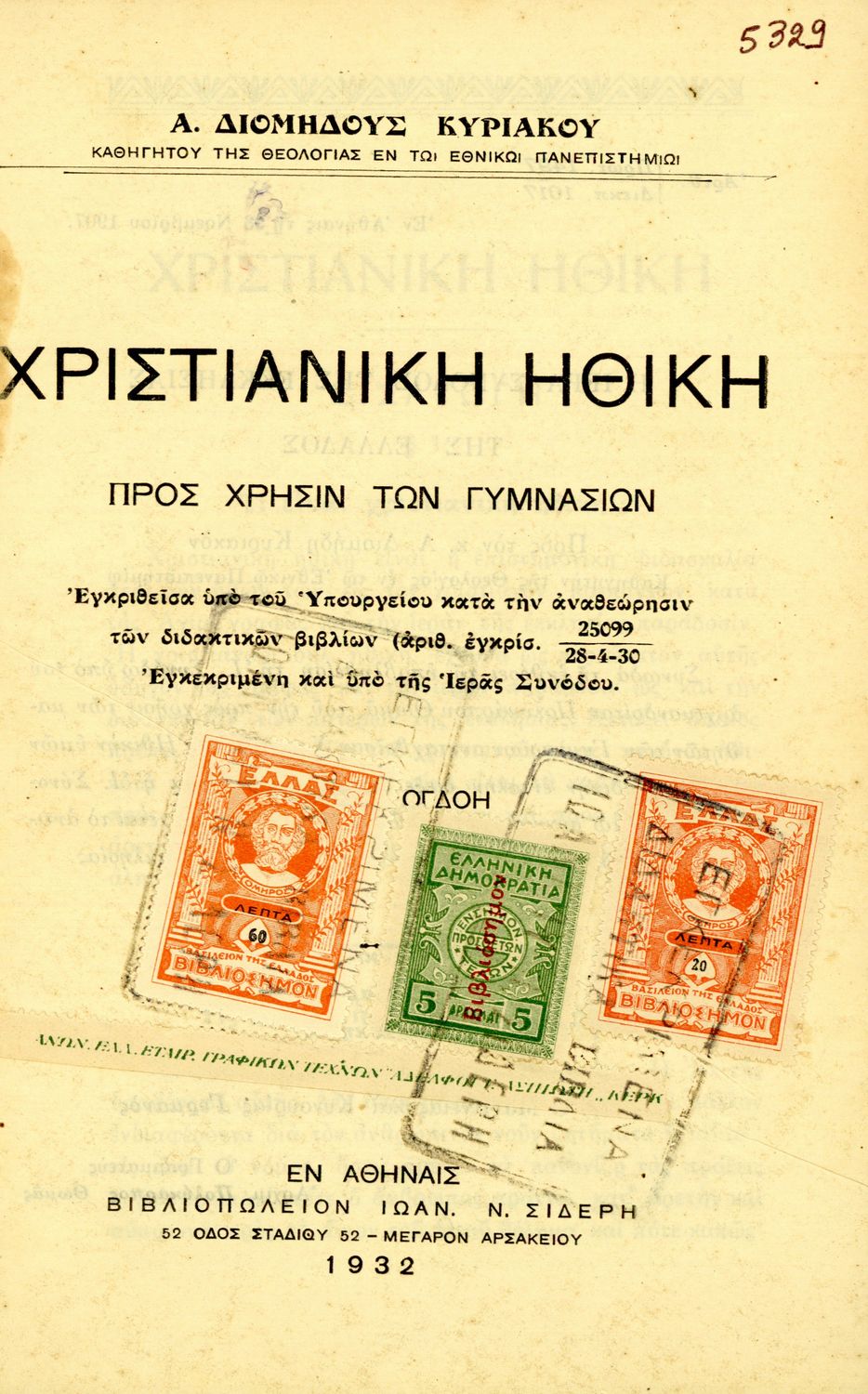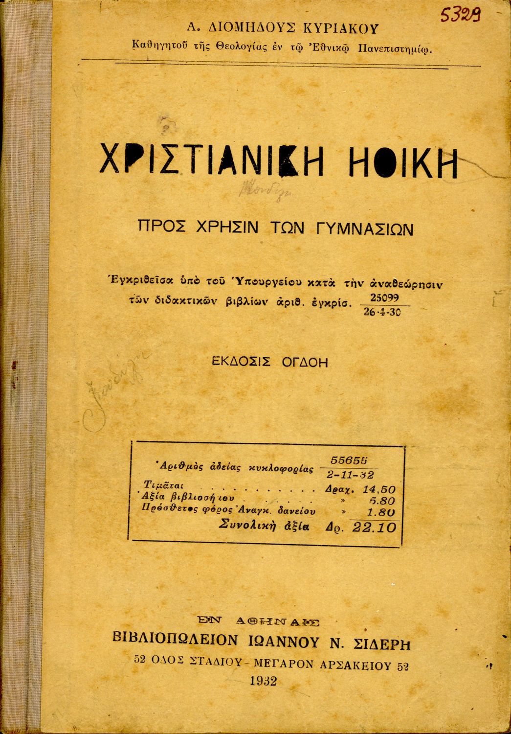Εκδότης: Ιωάννης Ν. Σιδέρης Έτος έκδοσης: 1932 Τόπος έκδοσης: Αθήνα Έκδοση: 8η Υπουργική απόφαση / Σύμβαση: 55655/2-11-1932 Έτος έγκρισης: 1932 |