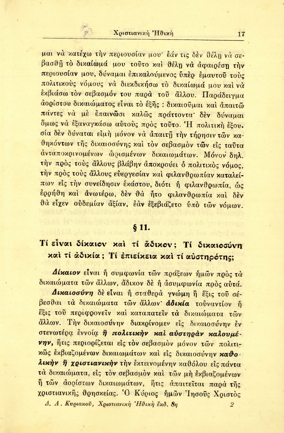 LDR 01233 2200217 4500 035 ## _a20-05329 040 ## _aΚΕΝΕΚ - Εταιρεία Σπουδών Νεοελληνικού Πολιτισμού και Παιδείας 041 ## _ael 100 ## _aΑ. Διομήδης Κυριακός 110 ## _a5329 245 0# _aΧριστιανική ηθική προς χρήσιν των Γυμνασίων 250 ## _a8η Έκδοση 260 ## _aΑθήνα _bΙωάννης Ν. Σιδέρης _c1932 300 ## _a100 _c19 520 ## _aΣχολικό εγχειρίδιο Θρησκευτικών για τα Γυμνάσια που εστιάζει στη χριστιανική ηθική και αναλύει τα καθήκοντα του ανθρώπου προς τον Θεό, τους άλλους ανθρώπους και τον εαυτό του. 521 ## _aΓυμνάσιο 522 ## _aΕλλάδα 546 ## _aΚαθαρεύουσα 563 ## _aΣκληρό Εξώφυλλο 583 ## _a55655/2-11-1932 _c1932 650 #4 _aΑτομικά και κοινωνικά καθήκοντα _aΙδιοκτησία _aΚαθήκοντα συζύγων _aΛατρεία _aΠίστη και ευσέβεια _aΠροσευχή