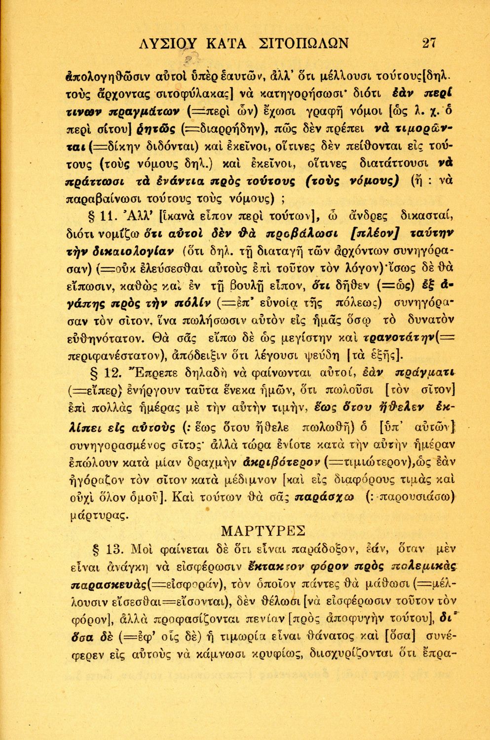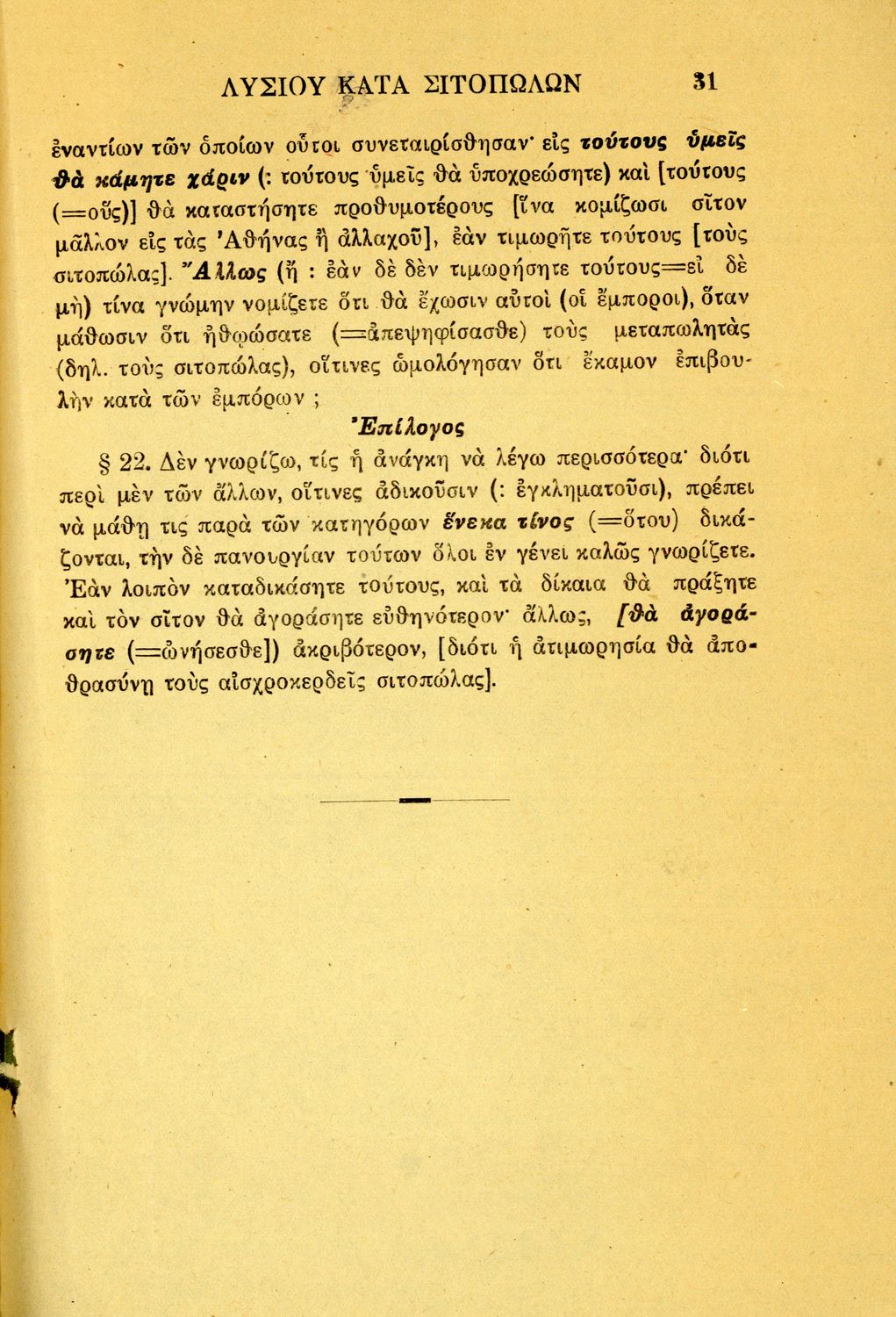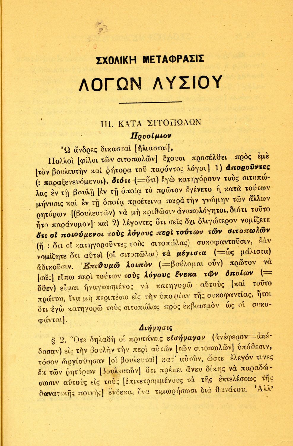 Σχολική μετάφρασις Λυσίου Λόγων προς χρήσιν των μαθητών της Α΄ τάξεως των Τετραταξίων Γυμνασίων και της αντιστοίχου τάξεως των λοιπών σχολείων της Μ. Εκπαιδεύσεως