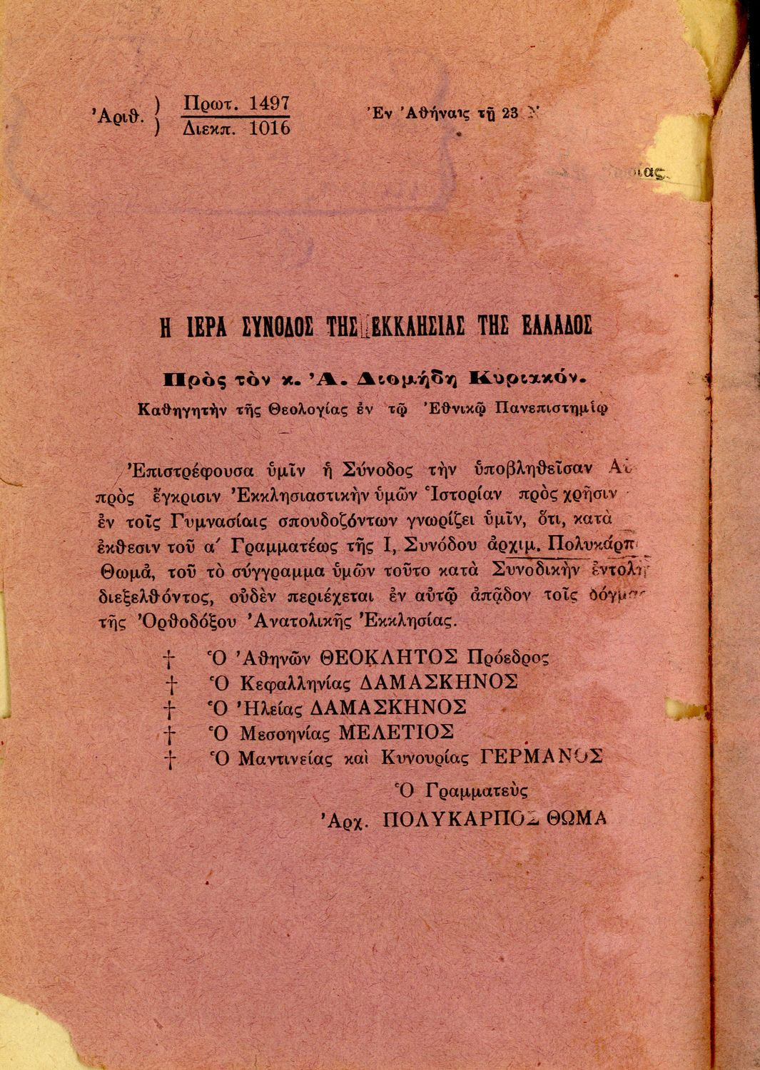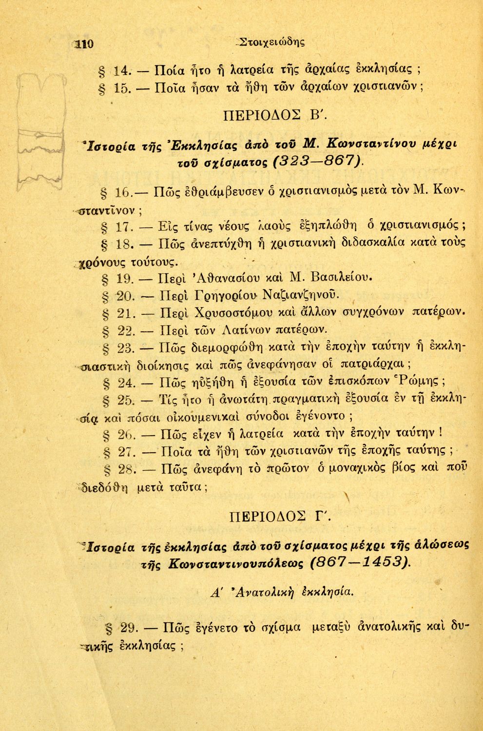 Σχολικό εγχειρίδιο Θρησκευτικών. Περιέχει την ιστορία της Εκκλησίας από την ίδρυσή της μέχρι την δημιουργία της Εκκλησίας της Ελλάδας.