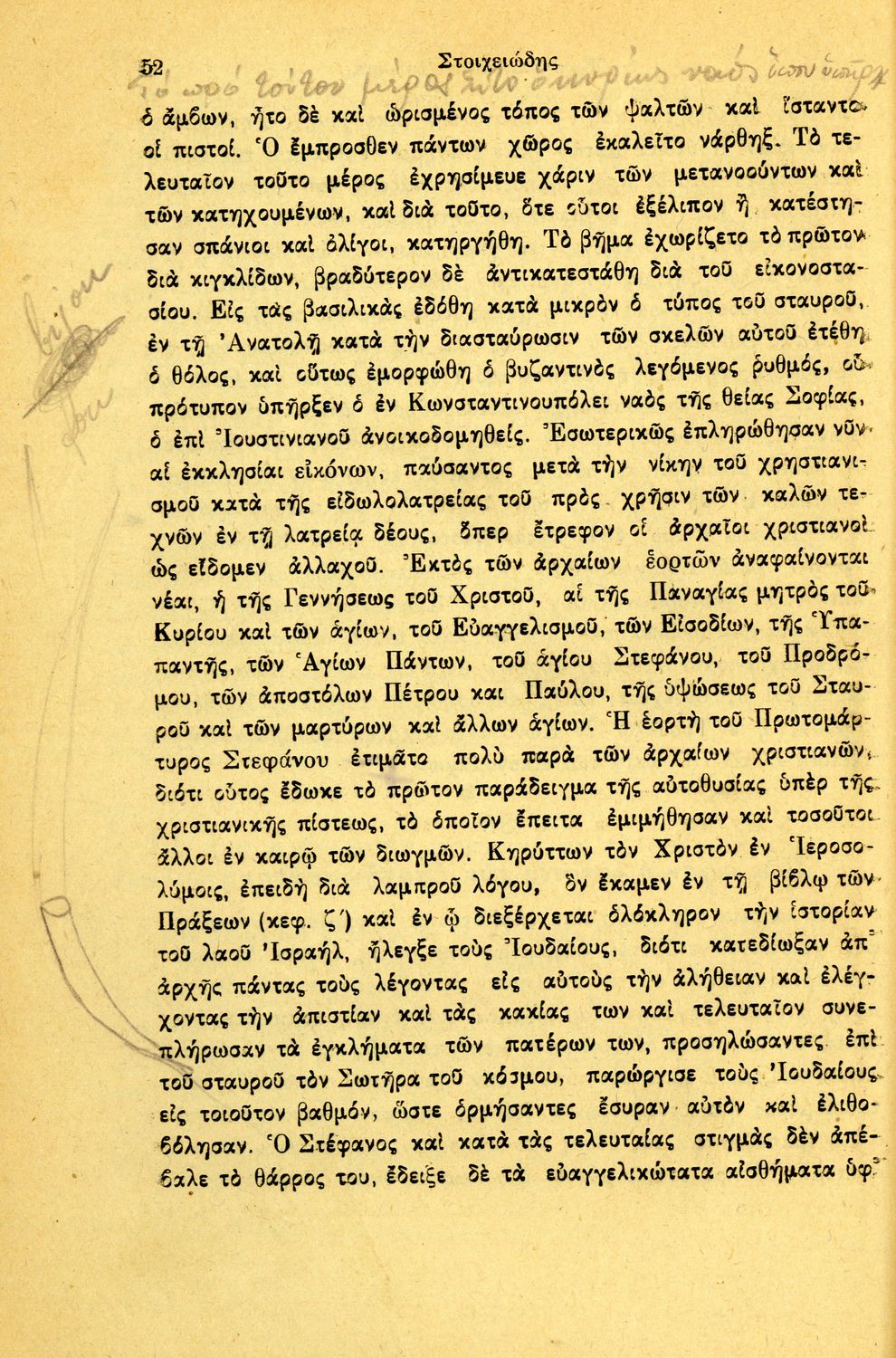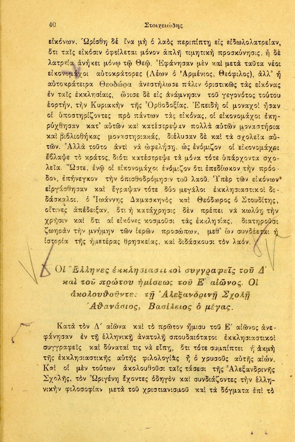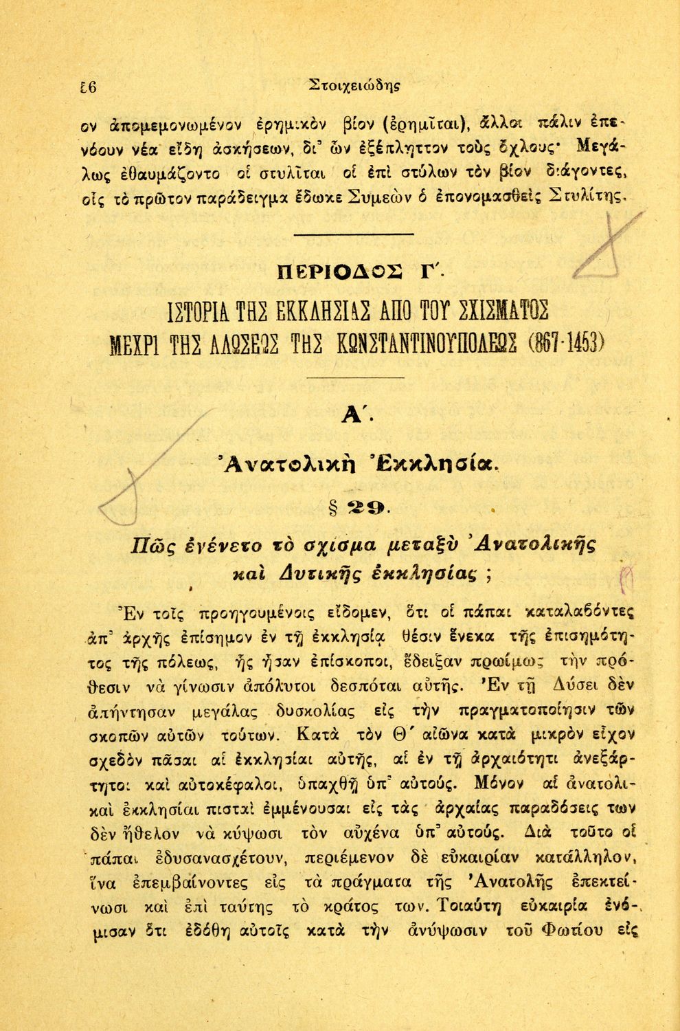 LDR 01286 2200217 4500 035 ## _a20-05337 040 ## _aΚΕΝΕΚ - Εταιρεία Σπουδών Νεοελληνικού Πολιτισμού και Παιδείας 041 ## _ael 100 ## _aΑναστάσιος Διομήδης Κυριακός 110 ## _a5337 245 0# _aΣτοιχειώδης εκκλησιαστική ιστορία προς χρήσιν των Γυμνασίων 250 ## _a7η Έκδοση 260 ## _aΑθήνα _bΙωάννης Ν. Σιδέρης _c1926 300 ## _a116 _c19 520 ## _aΣχολικό εγχειρίδιο Θρησκευτικών Γυμνασίου που πραγματεύεται την ιστορική εξέλιξη και πορεία της Ορθόδοξης Εκκλησίας από την ίδρυσή της μέχρι την άλωση της Κωνσταντινούπολης, και την σχέση της με τα άλλα χριστιανικά δόγματα. 521 ## _aΓυμνάσιο 522 ## _aΕλλάδα 546 ## _aΚαθαρεύουσα 563 ## _aΜαλακό Εξώφυλλο 583 ## _a1497/23-11-1926 _c1926 650 #4 _aΜ Κωνσταντίνος _aΣχίσμα εκκλησιών _aΧριστιανικά δόγματα