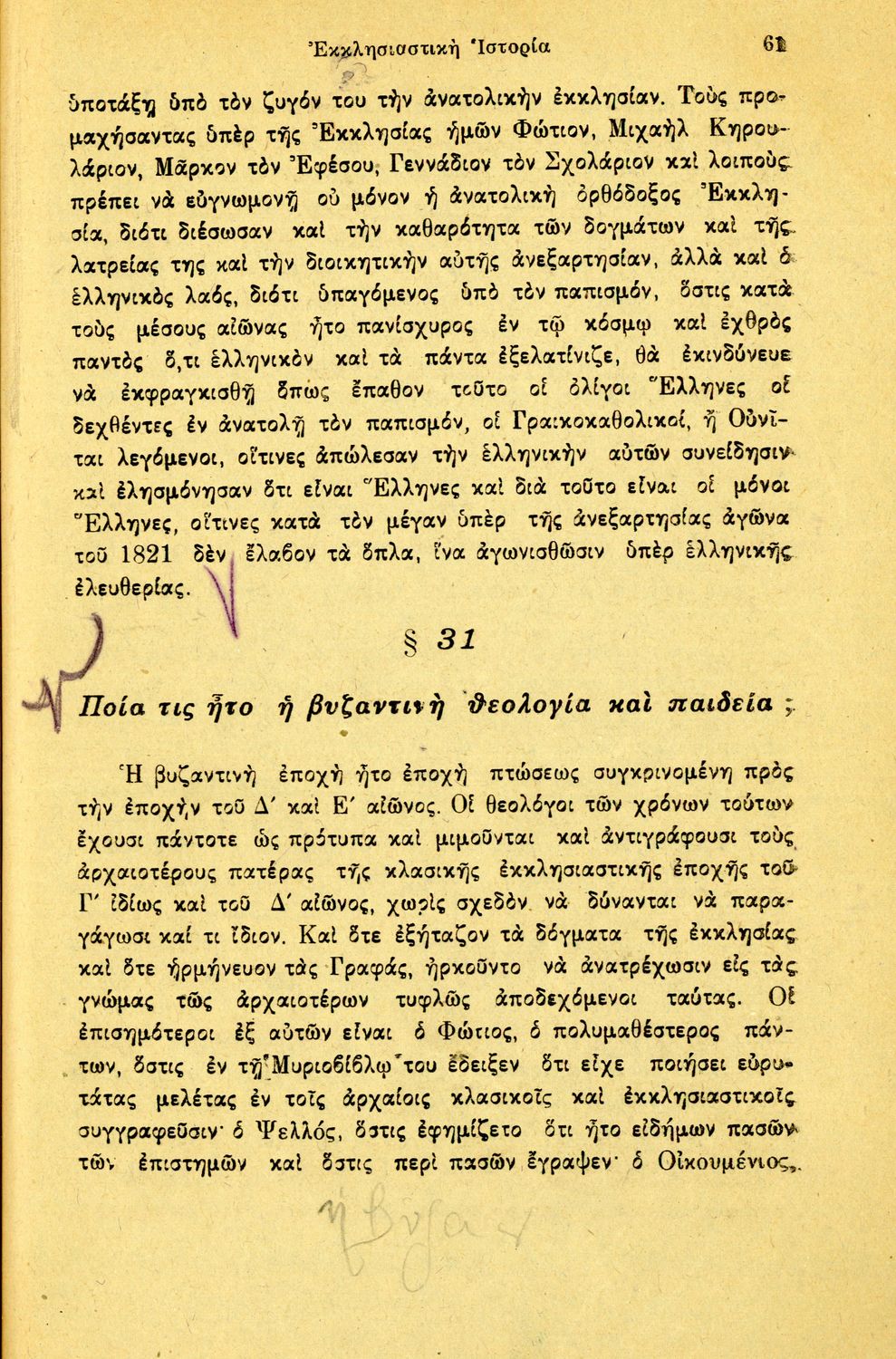 Βαθμίδα εκπαίδευσης: Δευτεροβάθμια Τάξη: Γυμνάσιο Μάθημα: Θρησκευτικά Γλώσσα: Καθαρεύουσα Παρουσίαση περιεχομένου: Σχολικό εγχειρίδιο Θρησκευτικών Γυμνασίου που πραγματεύεται την ιστορική εξέλιξη και πορεία της Ορθόδοξης Εκκλησίας από την ίδρυσή της μέχρι την άλωση της Κωνσταντινούπολης, και την σχέση της με τα άλλα χριστιανικά δόγματα. |