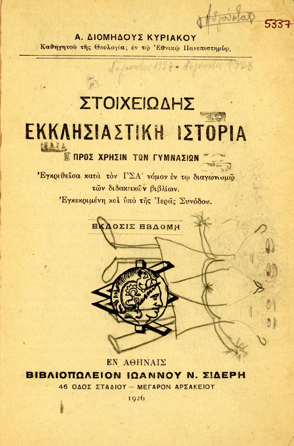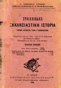 Σχολικό εγχειρίδιο Θρησκευτικών. Περιέχει την ιστορία της Εκκλησίας από την ίδρυσή της μέχρι την δημιουργία της Εκκλησίας της Ελλάδας.