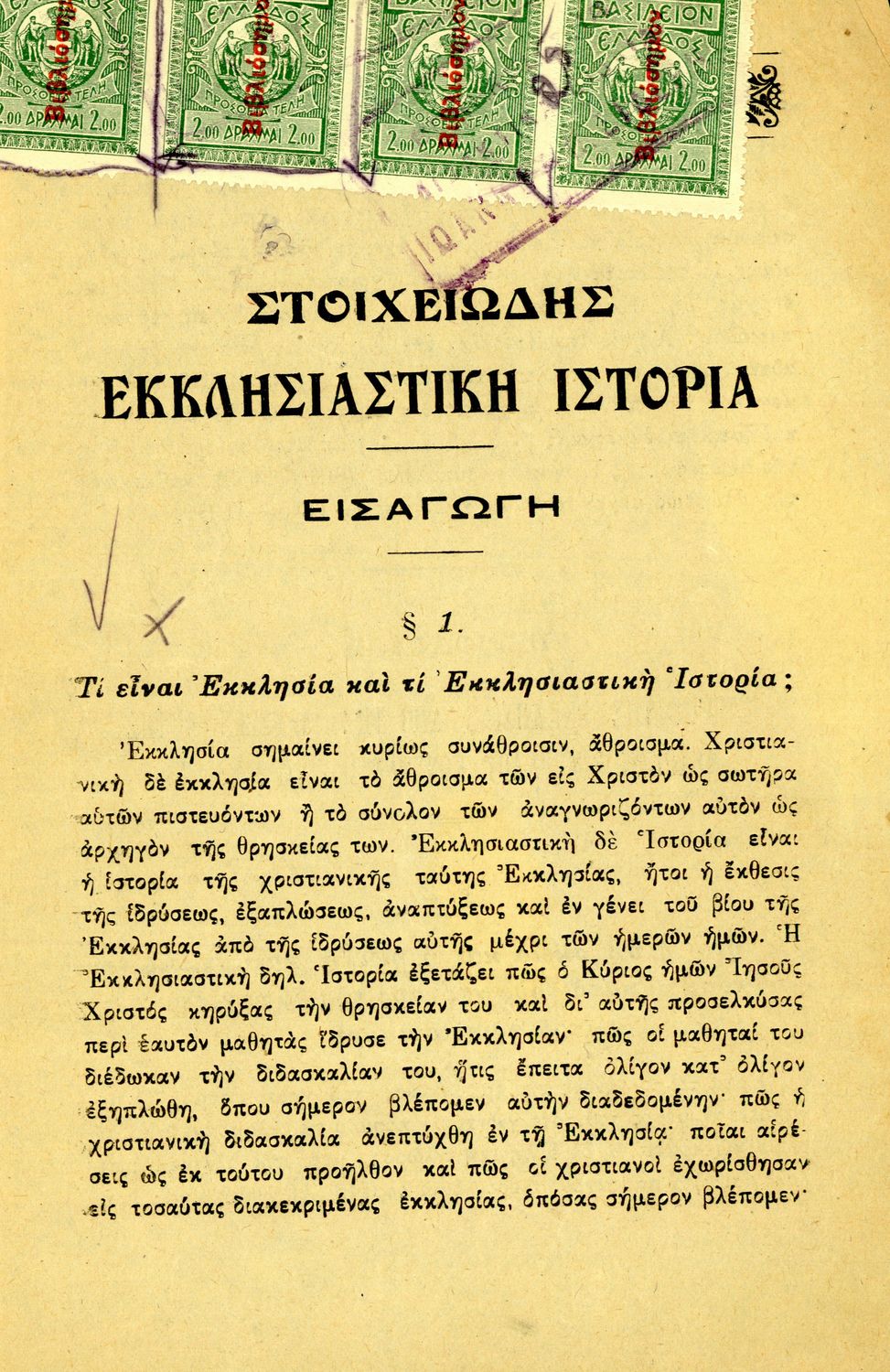 Τίτλος: Στοιχειώδης εκκλησιαστική ιστορία προς χρήσιν των Γυμνασίων