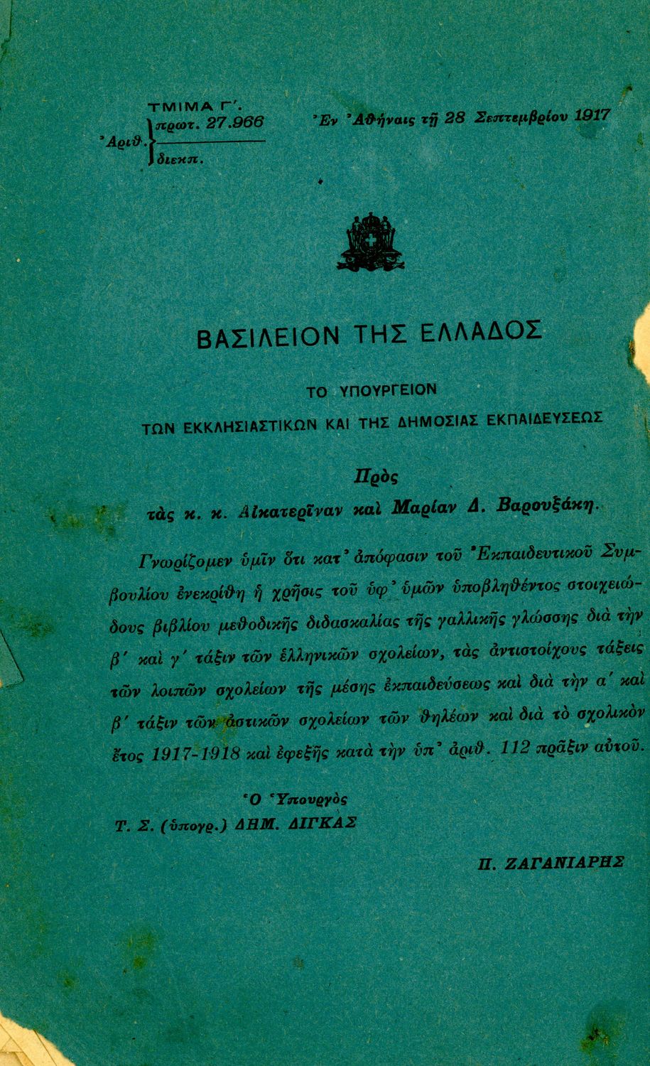 Υπουργική απόφαση / Σύμβαση: 27966/28-9-1917