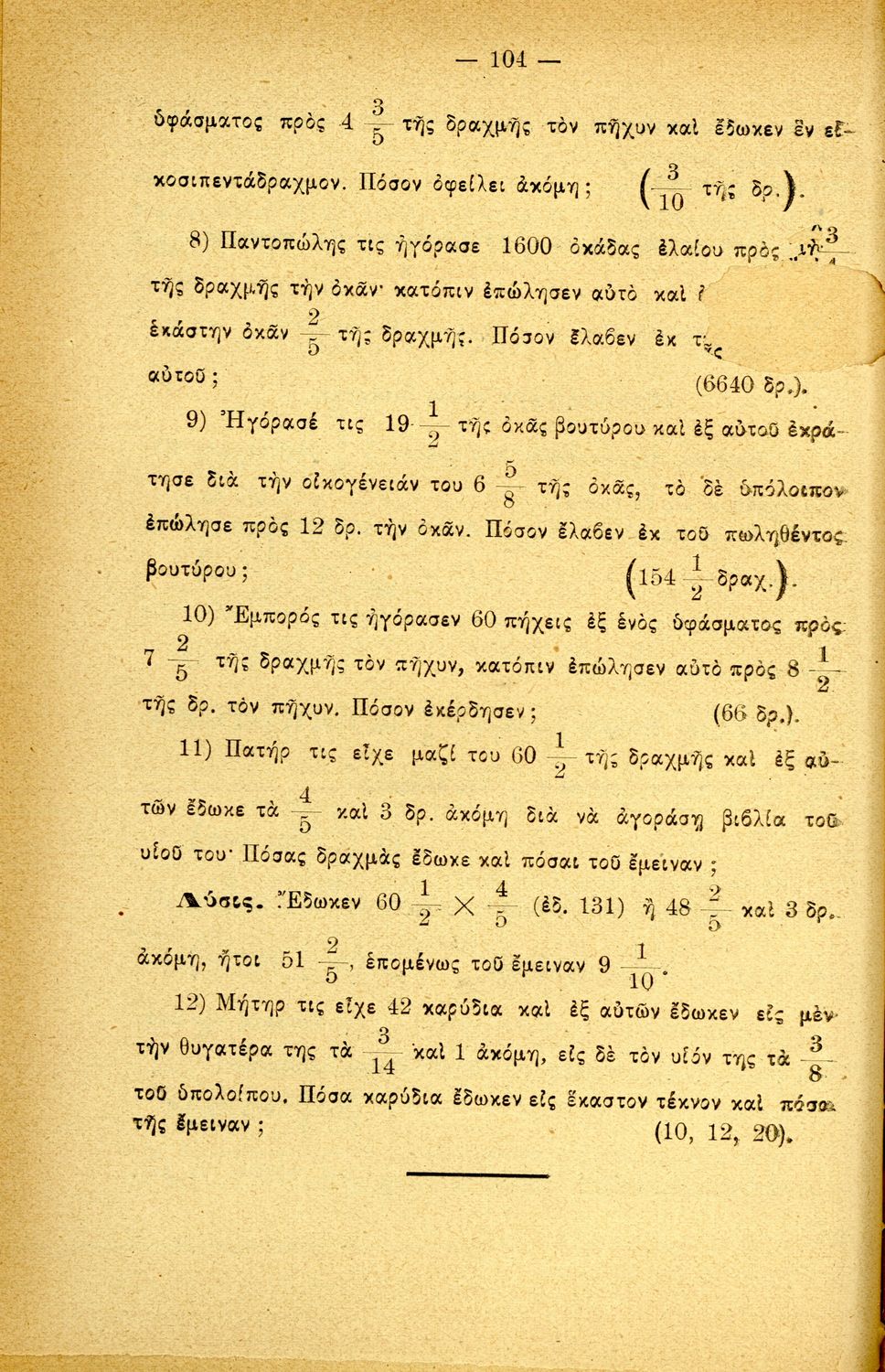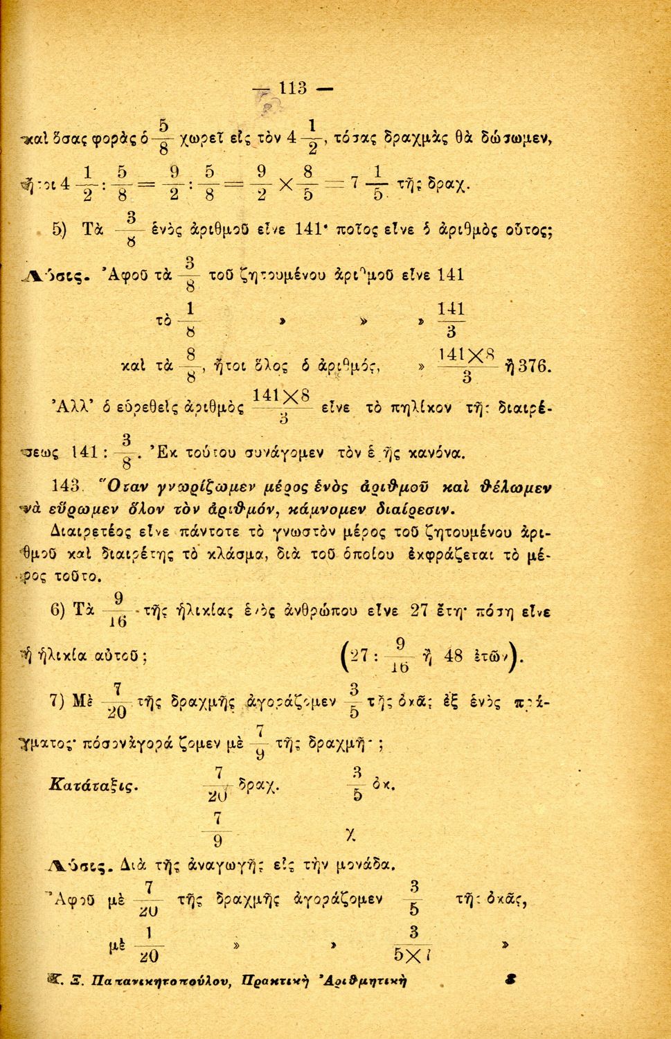520 ## _aΣχολικό εγχειρίδιο Αριθμητικής για τα Ελληνικά και Αστικά Σχολεία και τα Παρθεναγωγεία που εστιάζει στις αριθμητικές πράξεις, τα κλάσματα, τους δεκαδικούς και συμμιγείς αριθμούς, και τις δυνάμεις. Περιέχει και στοιχεία λογιστικής.