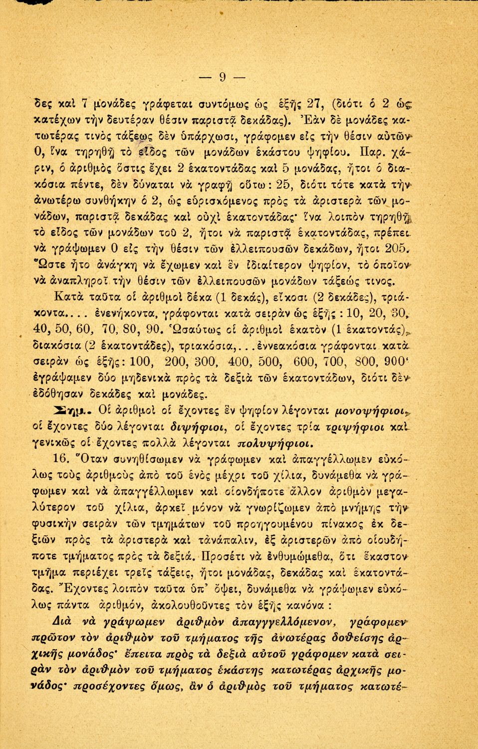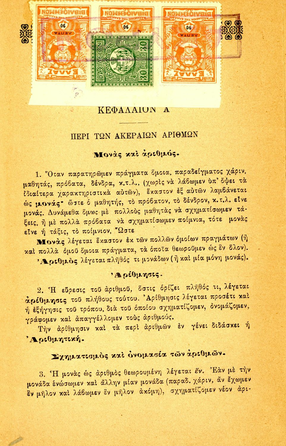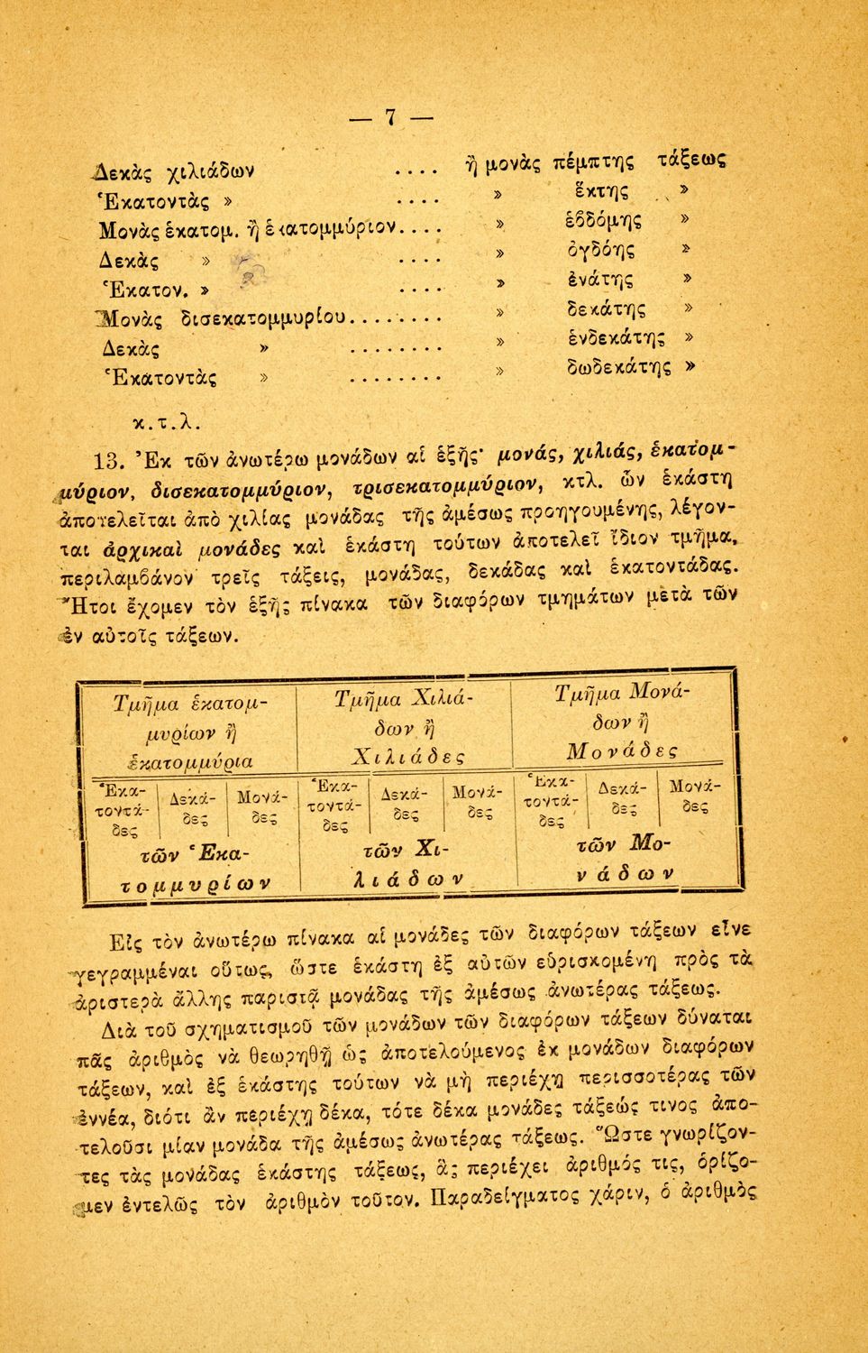Σχολικό εγχειρίδιο Αριθμητικής για τα Ελληνικά και Αστικά Σχολεία και τα Παρθεναγωγεία που εστιάζει στις αριθμητικές πράξεις, τα κλάσματα, τους δεκαδικούς και συμμιγείς αριθμούς, και τις δυνάμεις. Περιέχει και