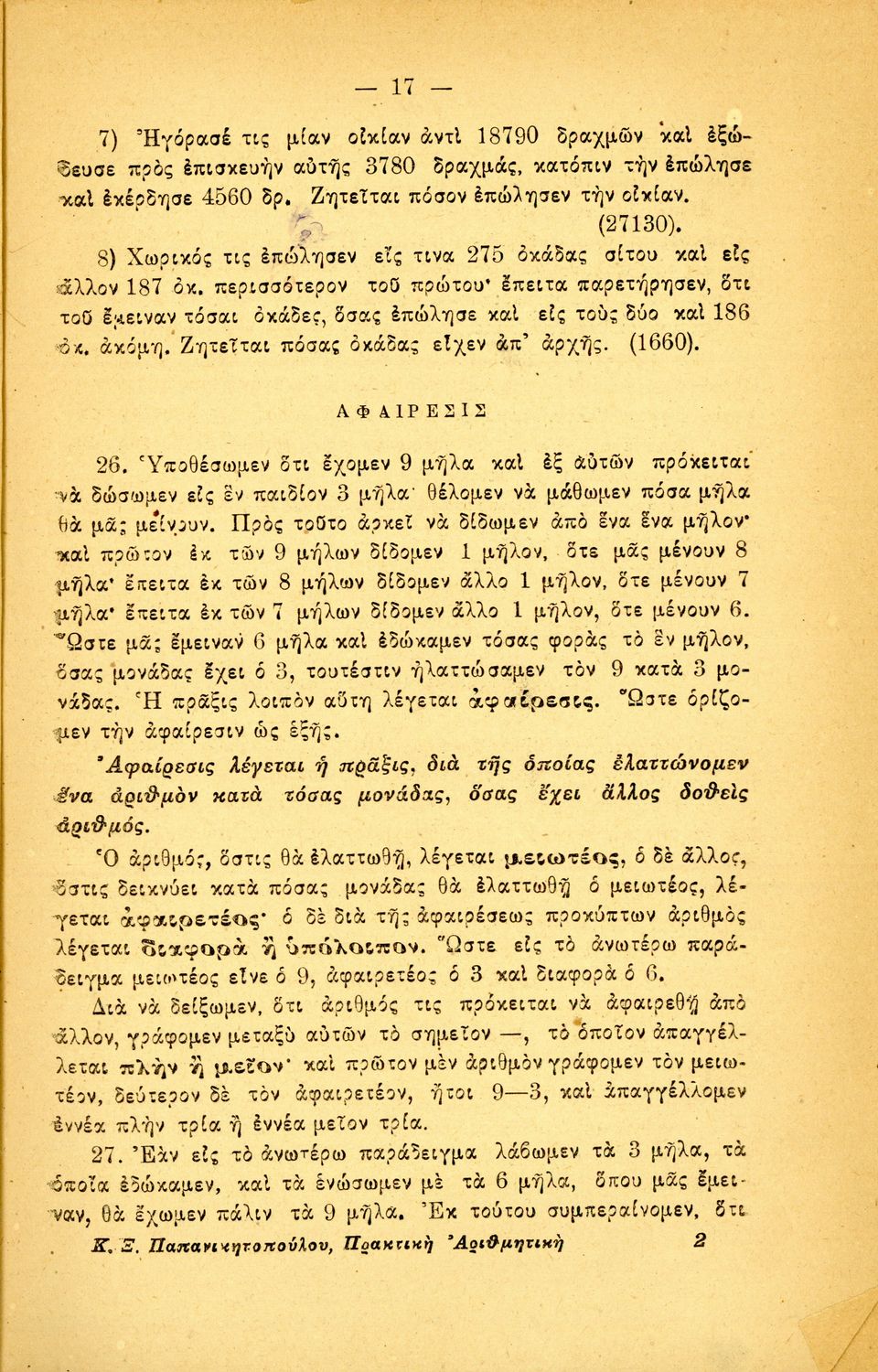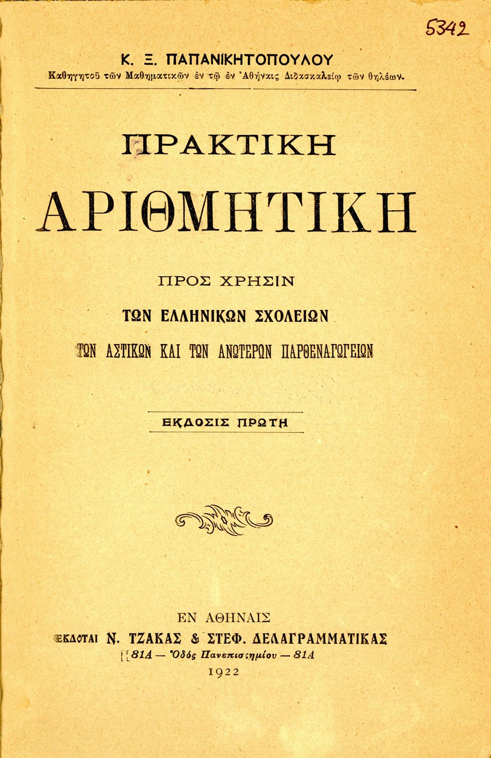 Πρακτική αριθμητική προς χρήσιν των Ελληνικών Σχολείων, των Αστικών και των Ανωτέρων Παρθεναγωγείων