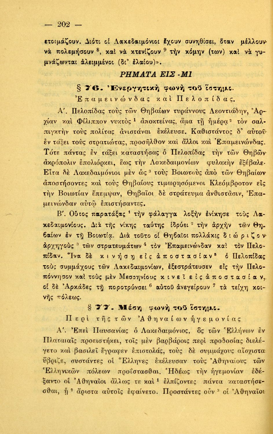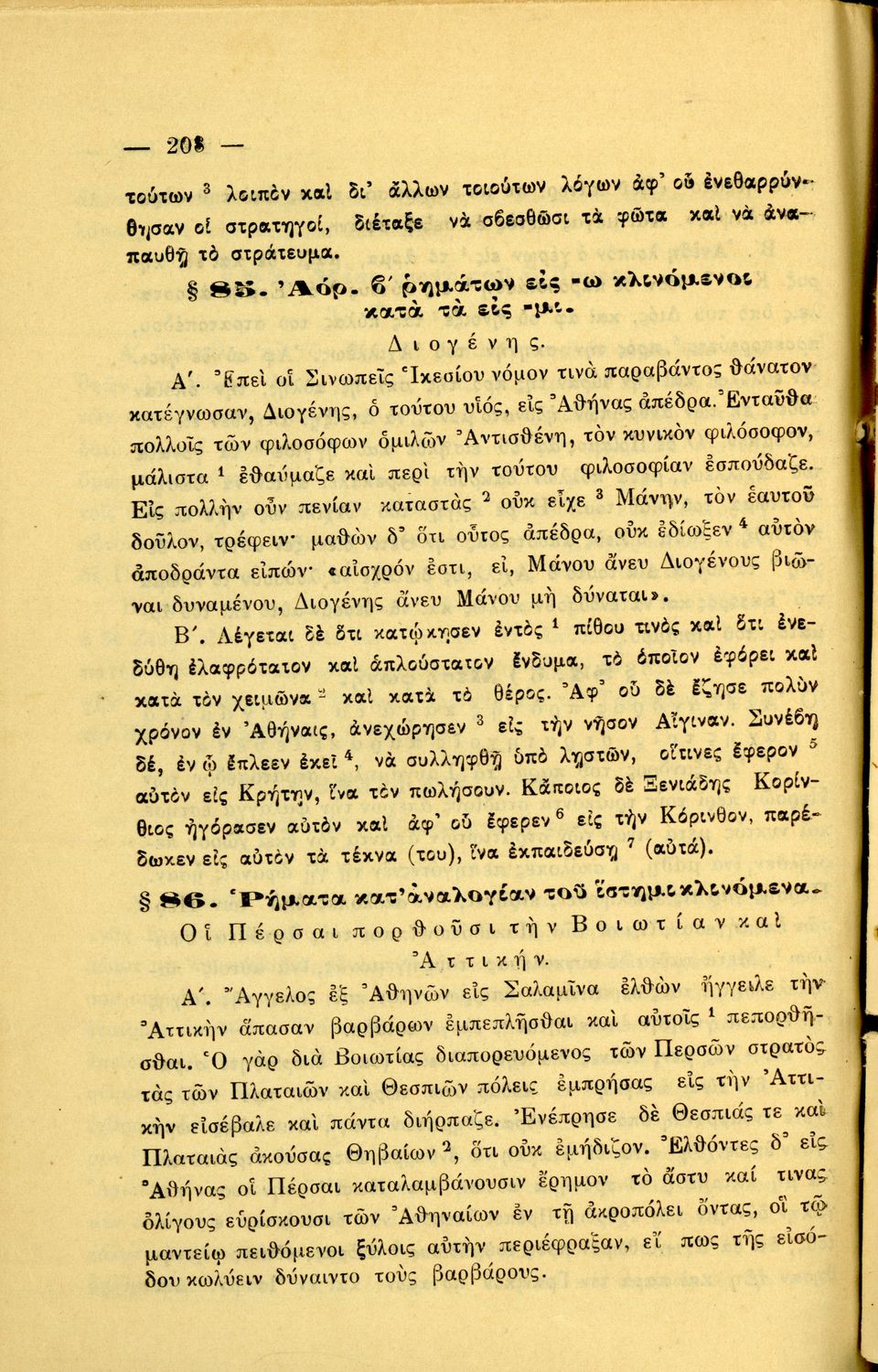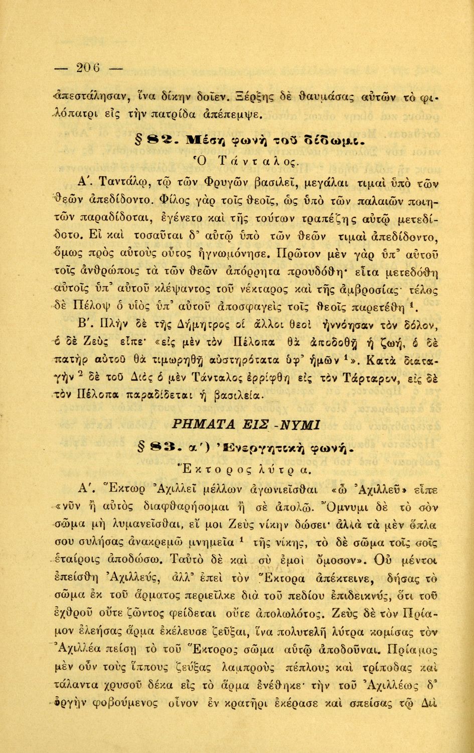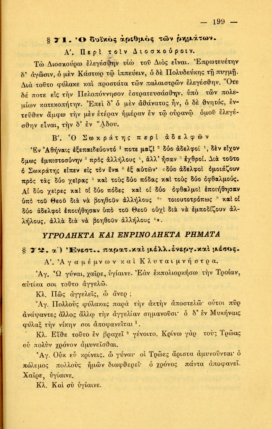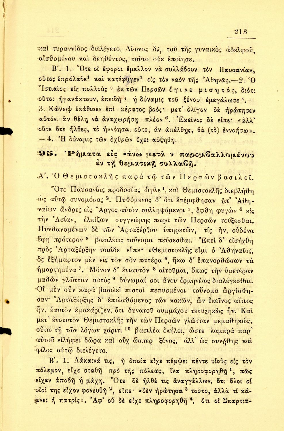 Σχολικό εγχειρίδιο Αρχαίων Ελληνικών για τις Α΄, Β΄ και Γ' Ελληνικού Σχολείου που περιλαμβάνει τη γραμματική της αρχαίας ελληνικής, πίνακα ανωμάλων ρημάτων και αρχικών χρόνων και ασκήσεις.