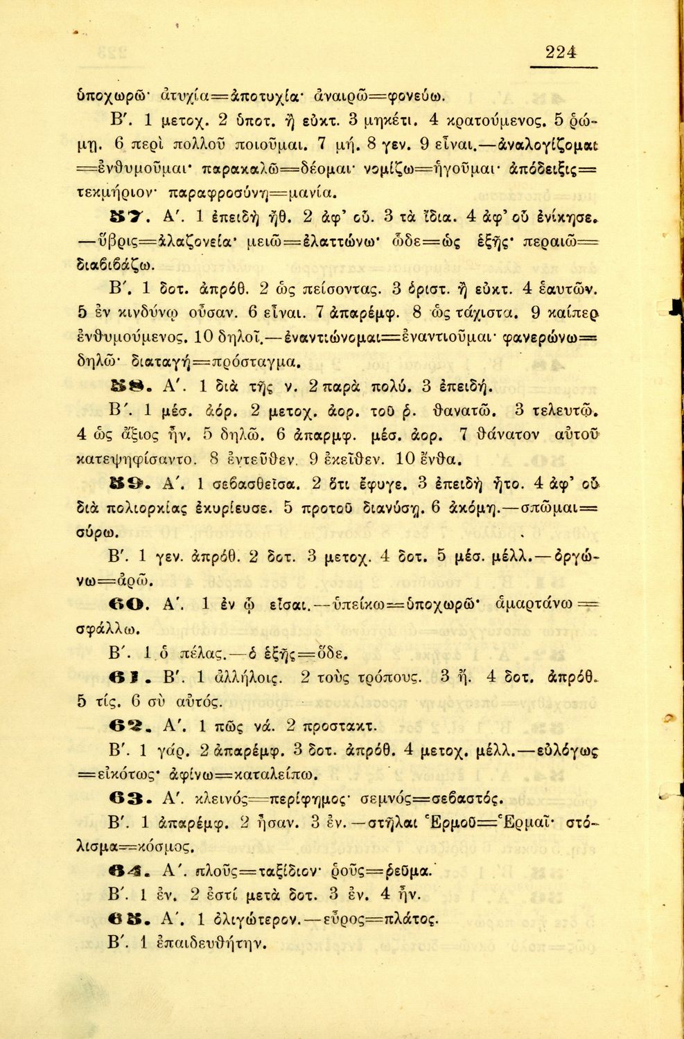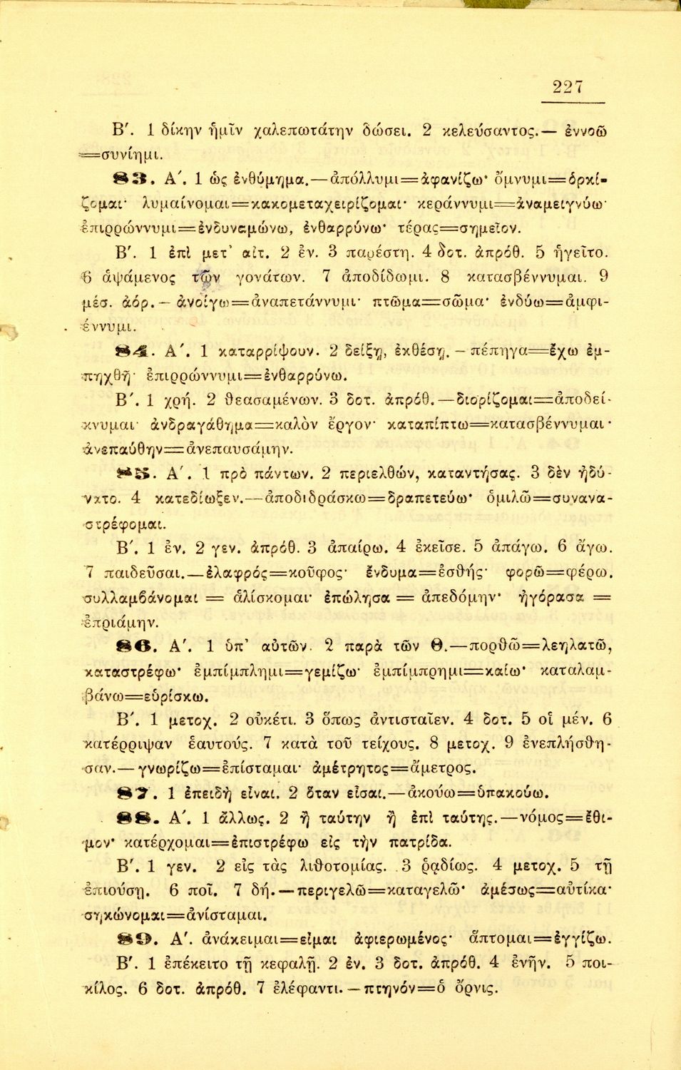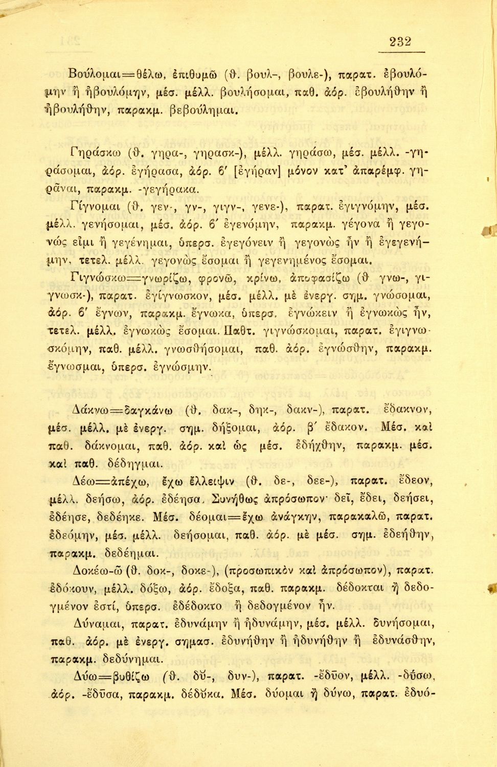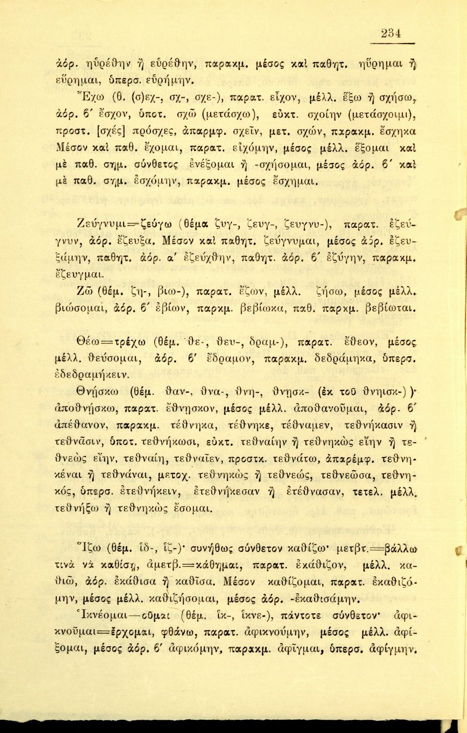 Σχολικό εγχειρίδιο Αρχαίων Ελληνικών για τις Α΄, Β΄ και Γ' Ελληνικού Σχολείου που περιλαμβάνει τη γραμματική της αρχαίας ελληνικής, πίνακα ανωμάλων ρημάτων και αρχικών χρόνων και ασκήσεις.