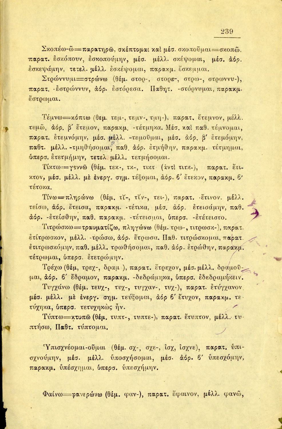 Μαθητικό βοήθημα Αρχαίων Ελληνικών για τις Α΄, Β΄, Γ' Ελληνικού Σχολείου και Παρθεναγωγείου για το μάθημα των Αρχαίων που περιλαμβάνει λεξικό ανωμάλων ρημάτων και γραμματικές σημειώσεις