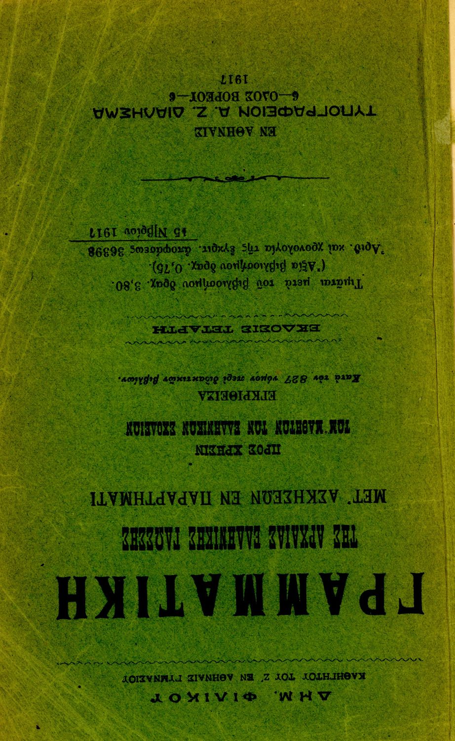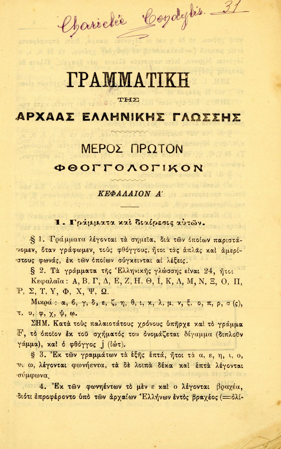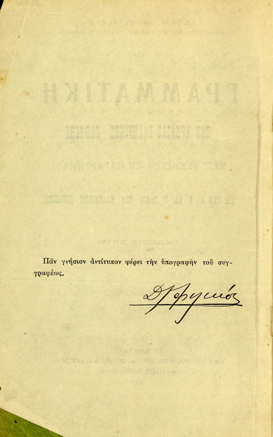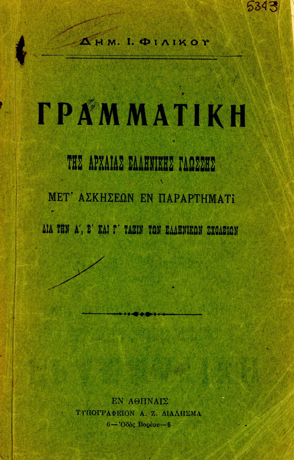 Τίτλος: Γραμματική της αρχαίας ελληνικής γλώσσης μετ' ασκήσεων διά την Α΄, Β΄, Γ΄ του Ελληνικού Σχολείου