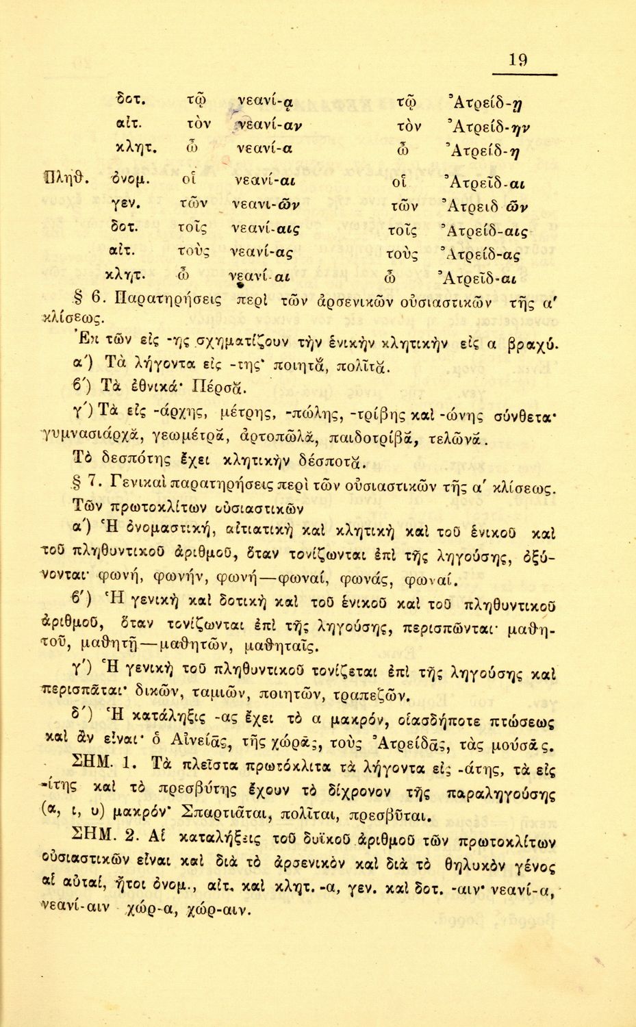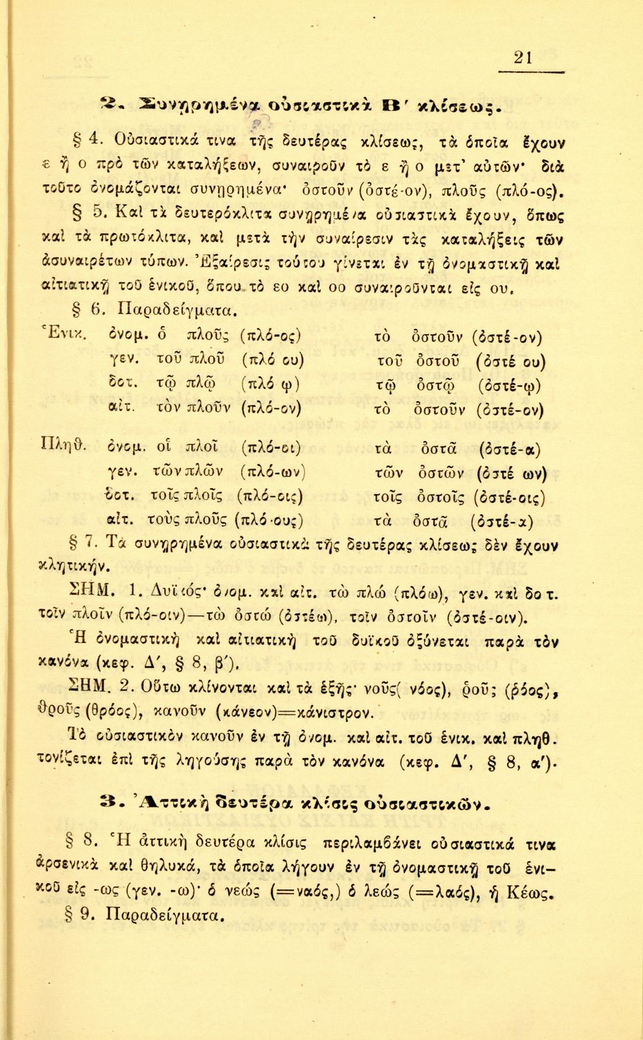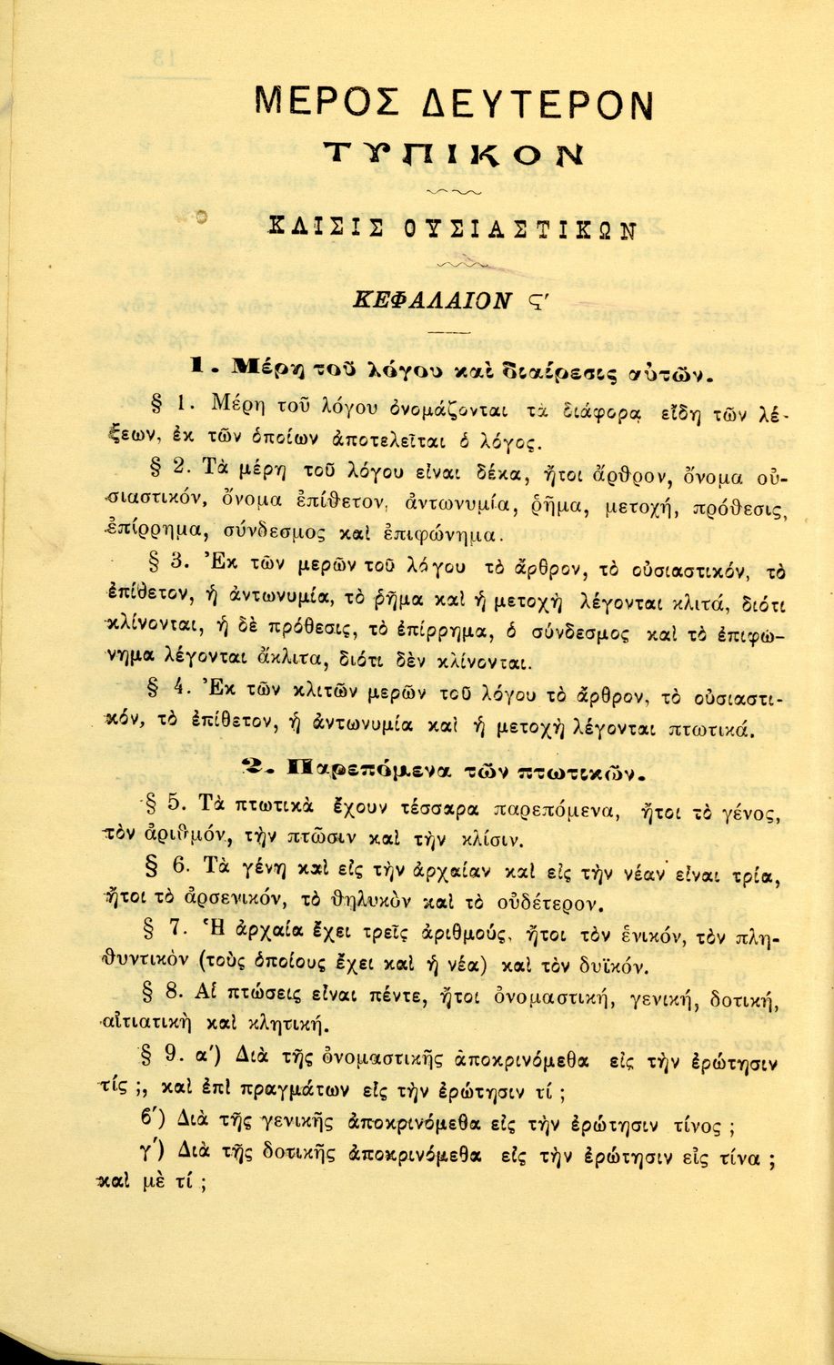 Γραμματική Αρχαίων Ελληνικών της Α΄, Β΄, Γ΄ και Δ΄ Γυμνασίου το οποίο εστιάζει στα μέρη του λόγου και στην σύνταξή τους και είναι χωρισμένο σε φθογγολογικό και τυπολογικό μέρος.