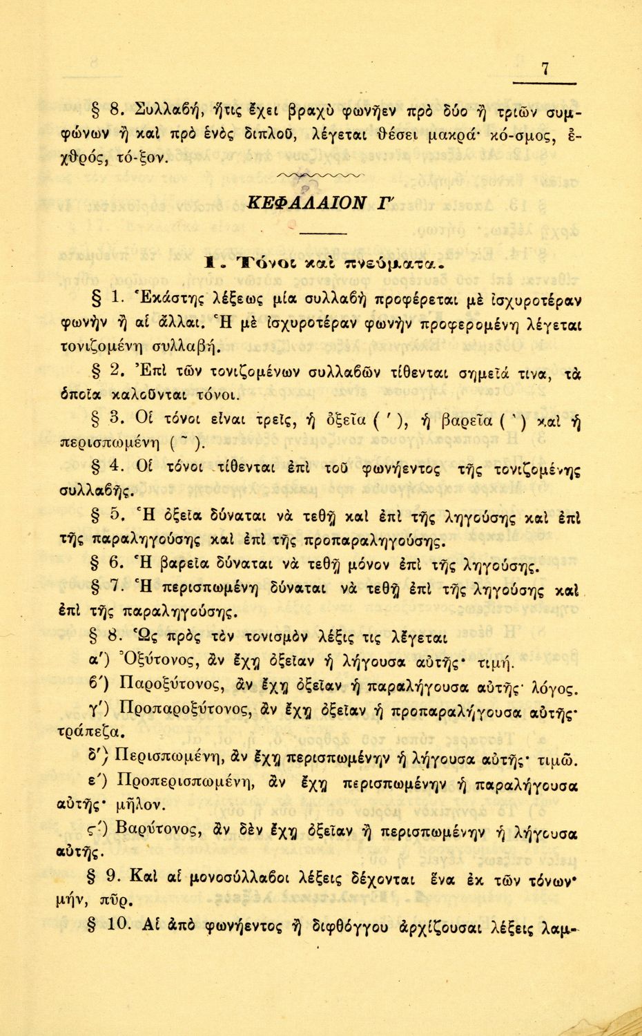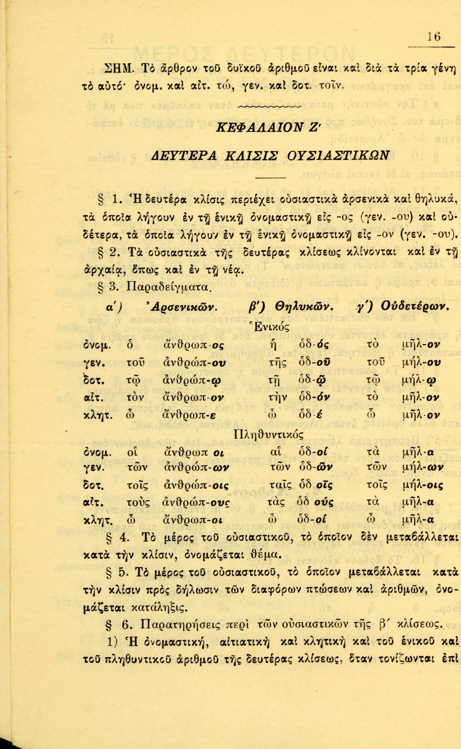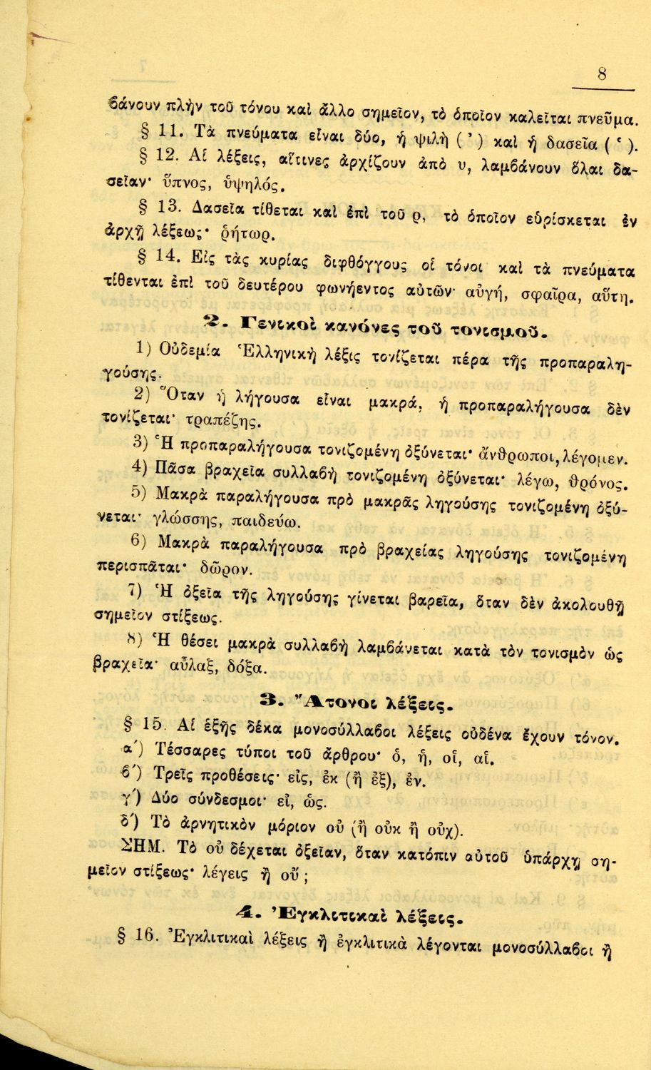 Γραμματική Αρχαίων Ελληνικών της Α΄, Β΄, Γ΄ και Δ΄ Γυμνασίου το οποίο εστιάζει στα μέρη του λόγου και στην σύνταξή τους και είναι χωρισμένο σε φθογγολογικό και τυπολογικό μέρος.